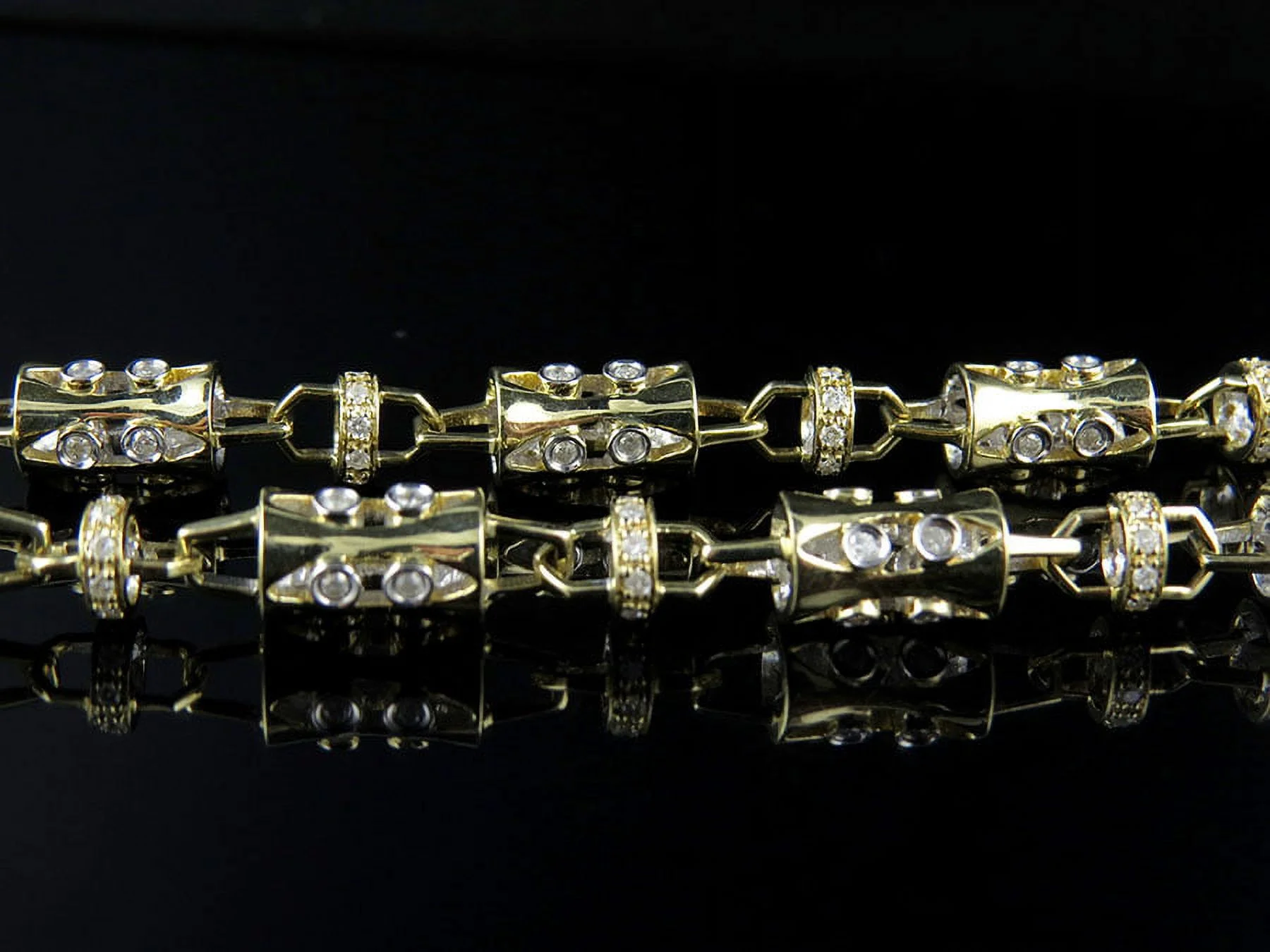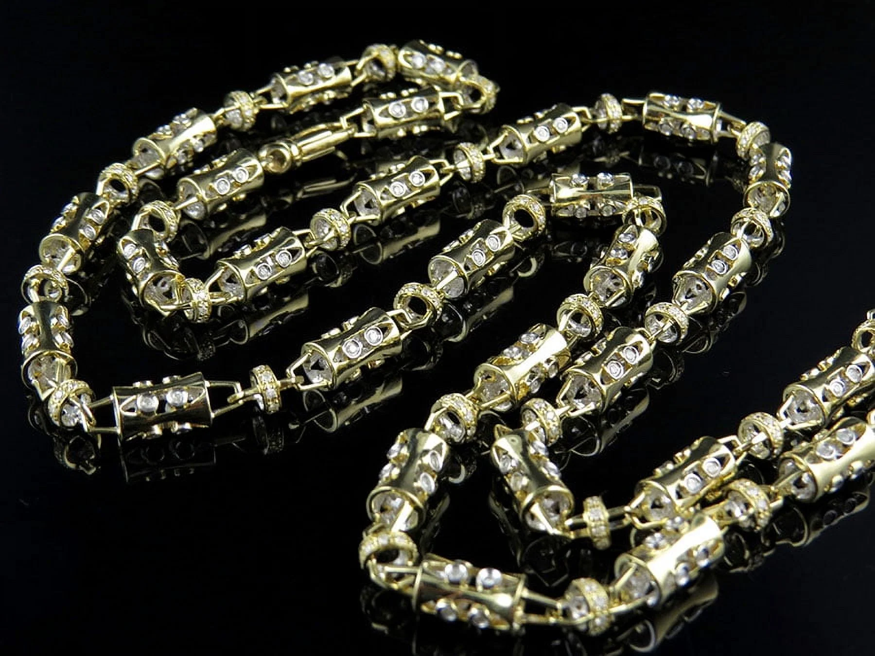 Mens 14k Yellow Gold Bullett Link 6.5 MM Real Diamond Chain Necklace 7 ct 30"