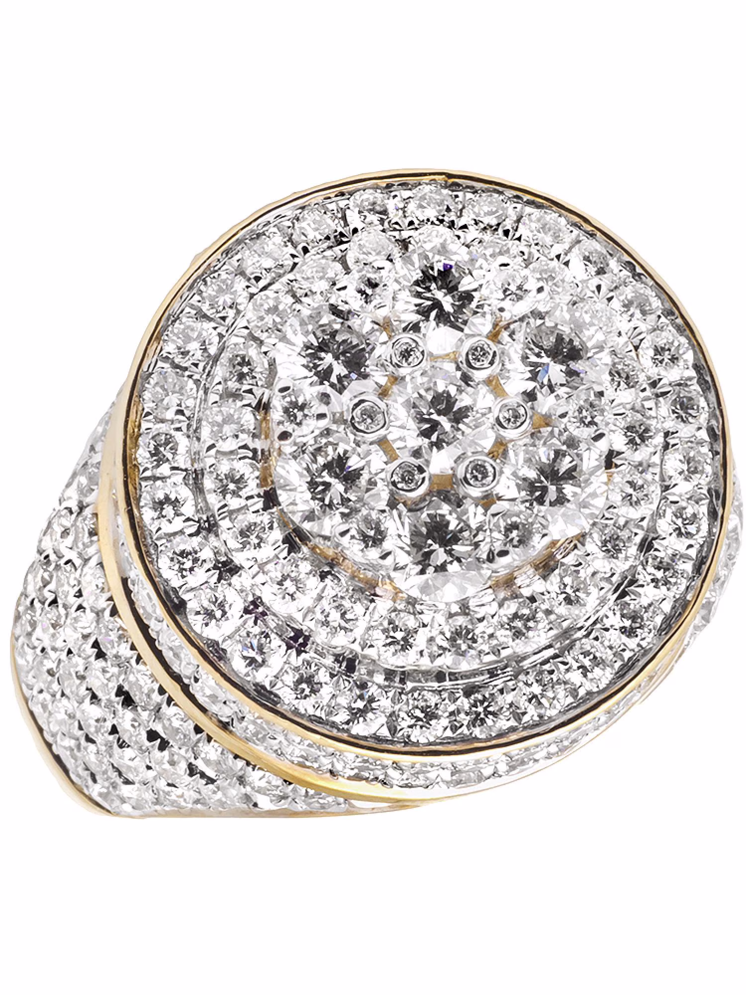 Men's Yellow Gold 10K 3D Round Cluster Real VS Diamond Pinky Ring 4.65 ct