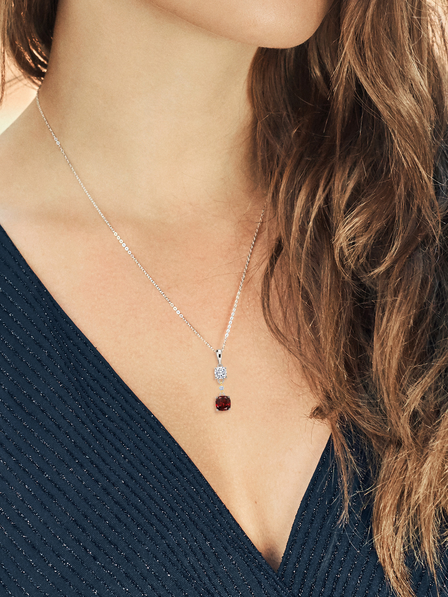 Gem Stone King 1.24 Ct Cushion Red Garnet 925 Silver and 10K Yellow Gold Pendant with Chain