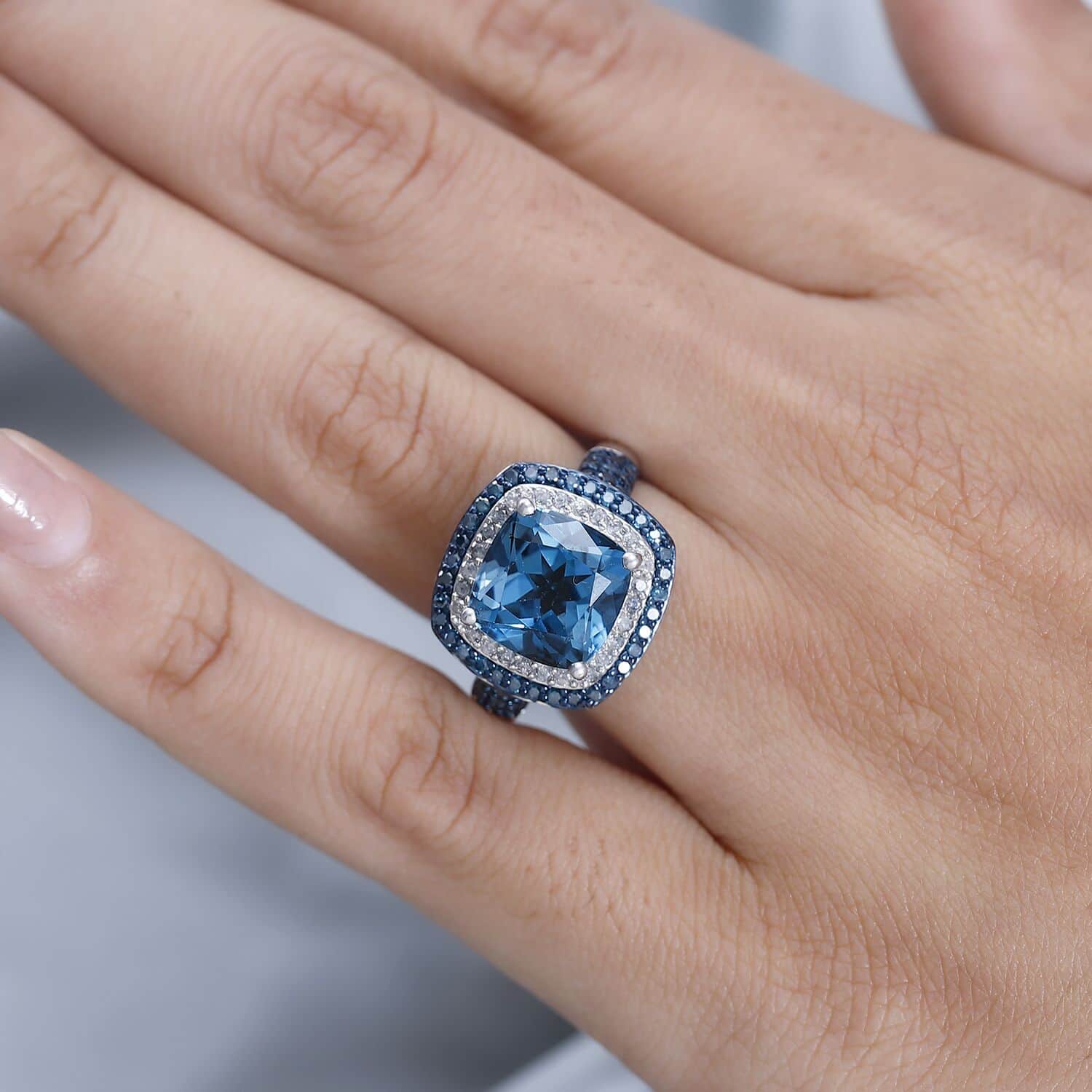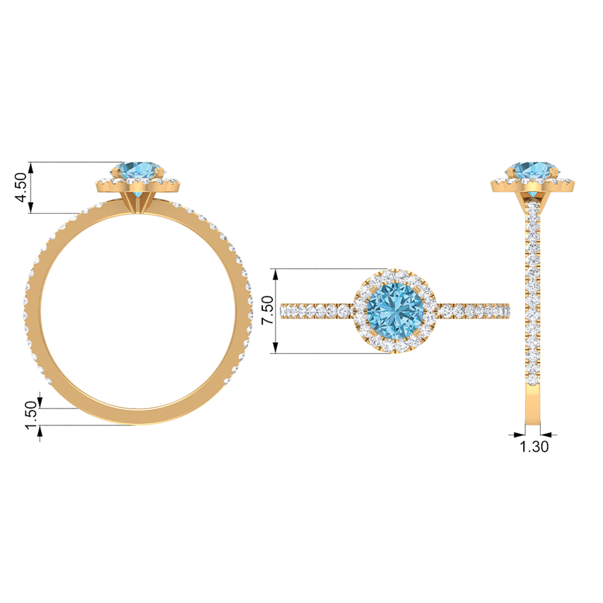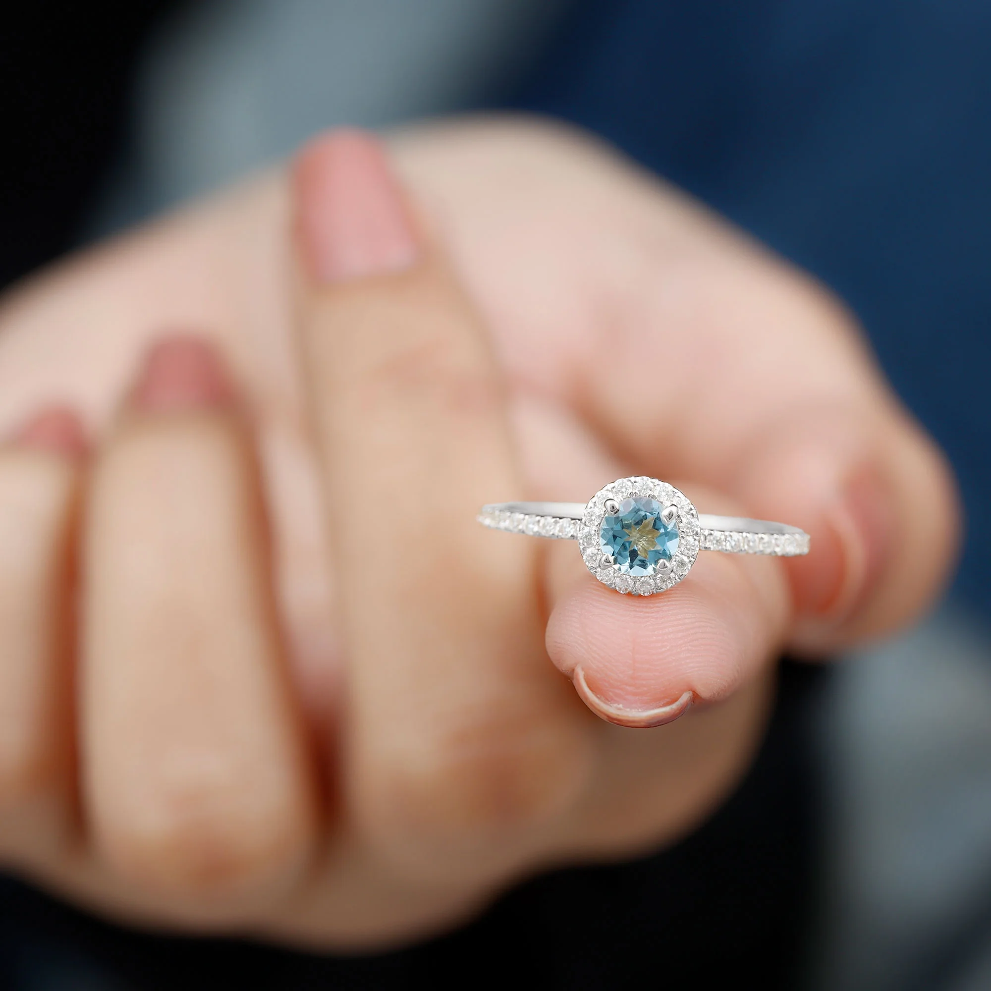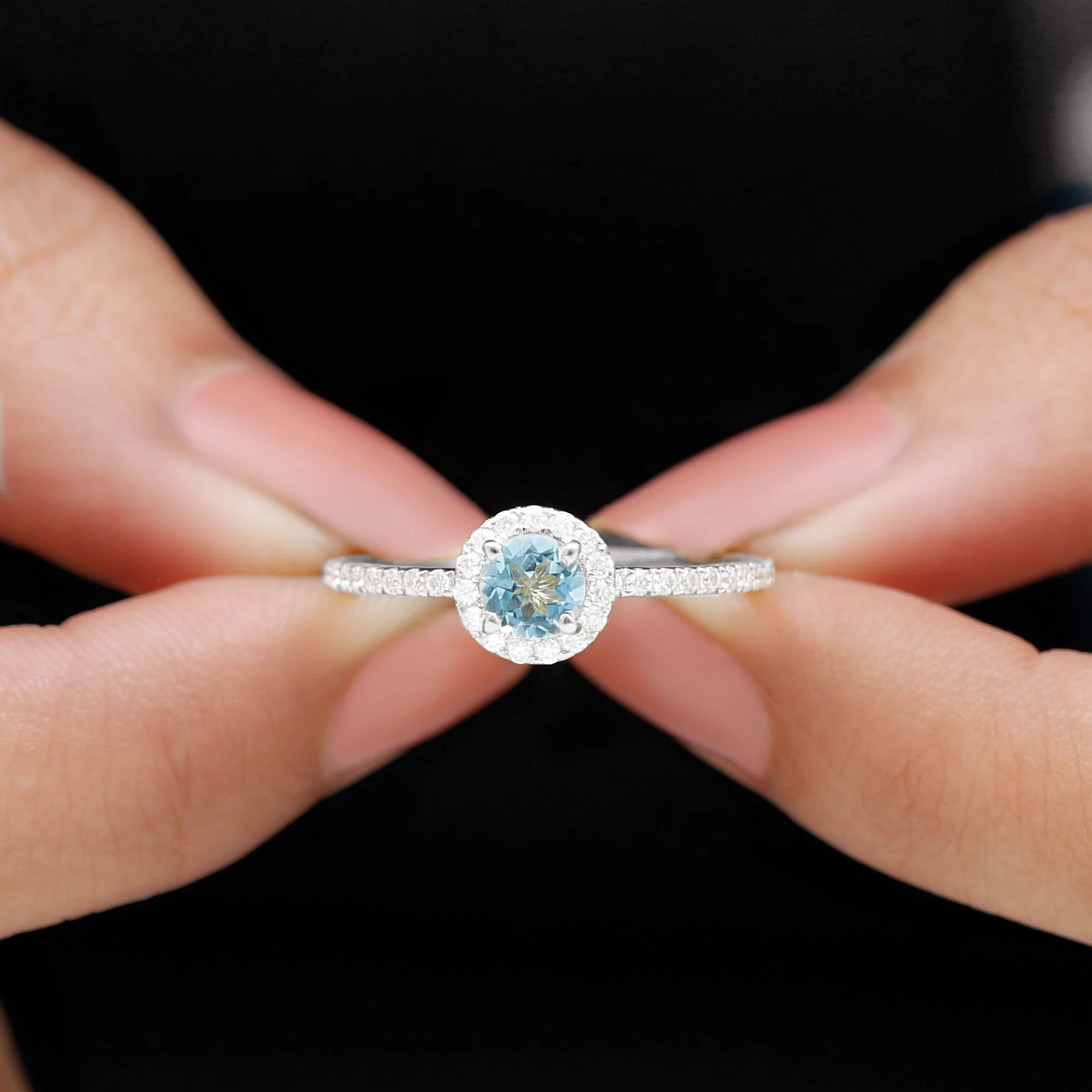 1.25 CT Aquamarine Ring with Diamond Halo for Women (5 mm) - AAA Grade, 10K White Gold, US 6.00