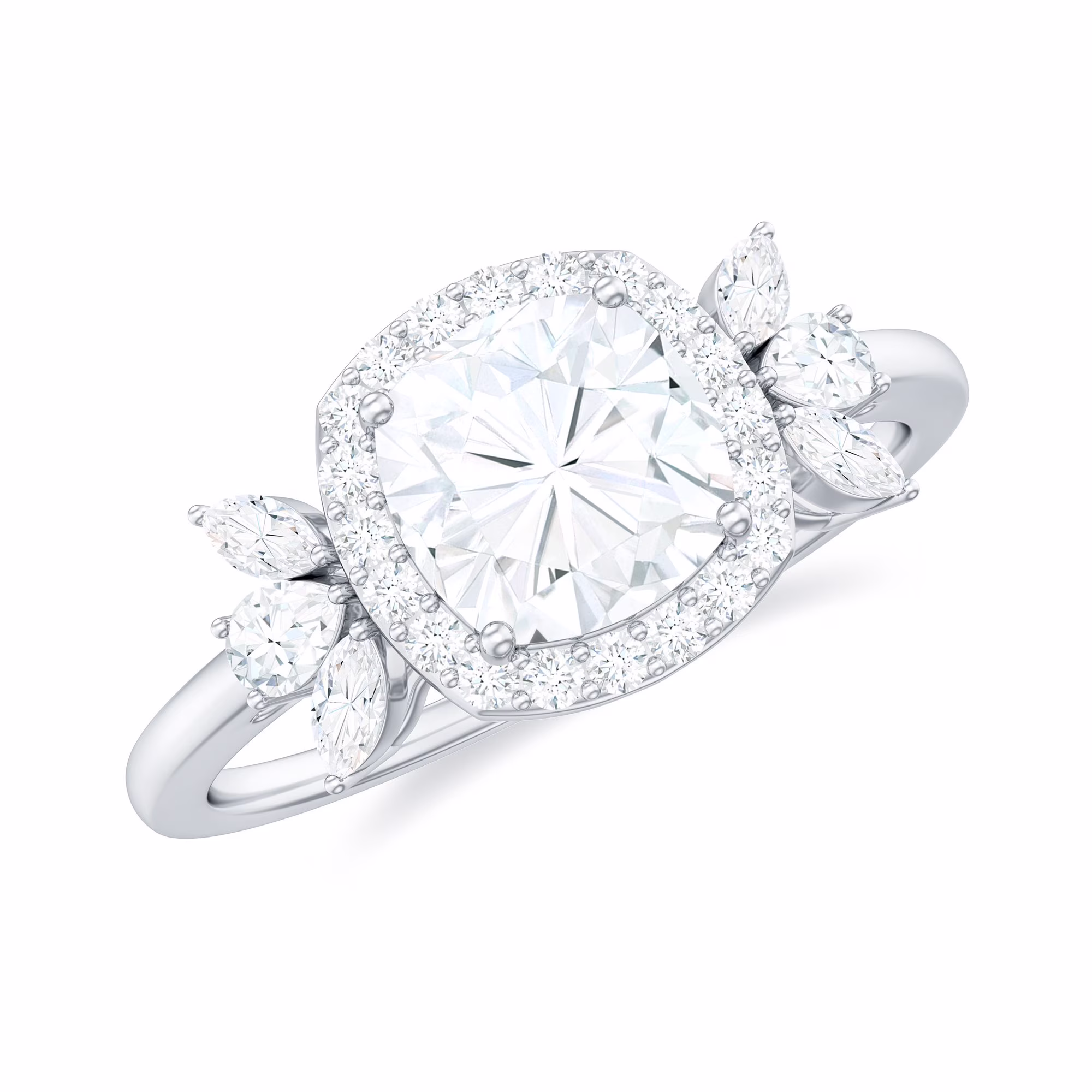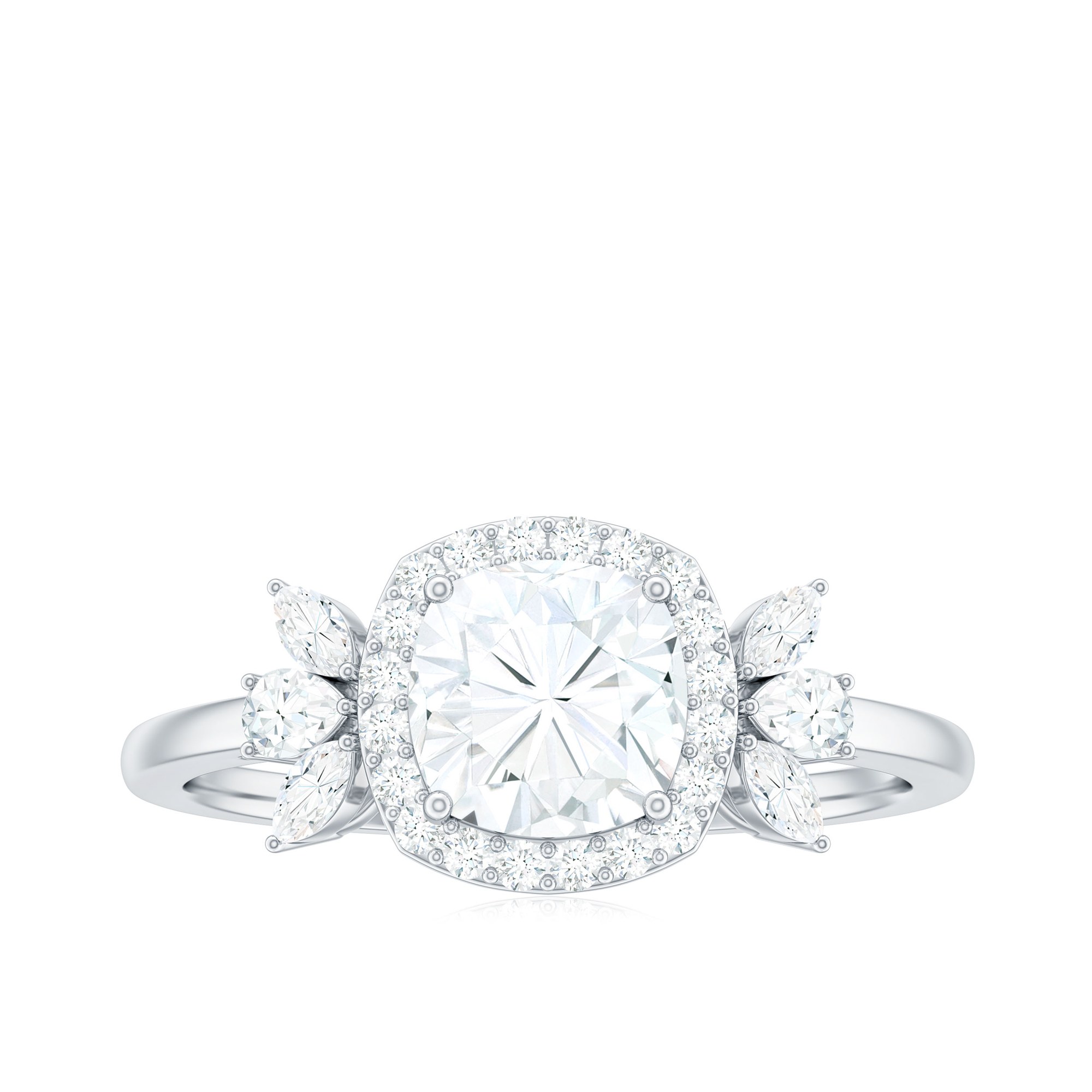Cushion Cut Moissanite Designer Engagement Ring with Halo for Women - D-VS1 Grade, 14K White Gold, US 8.50