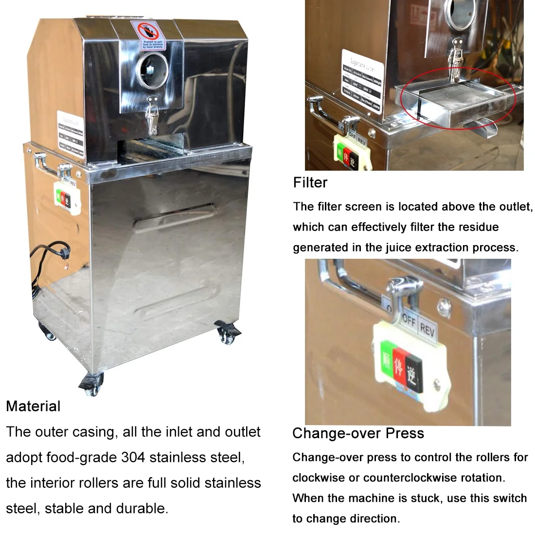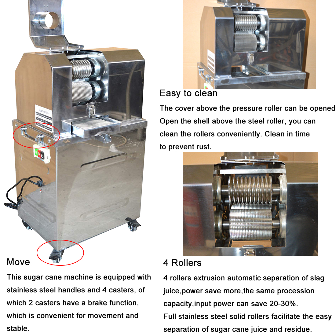 PreAsion Vertical Electric Sugarcane Juicer Juice Press Machine 4 Rollers Stainless Steel Silver