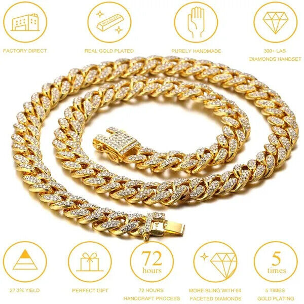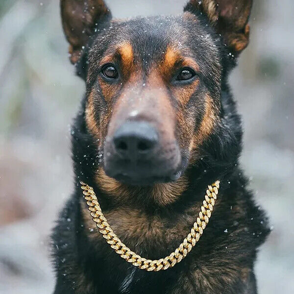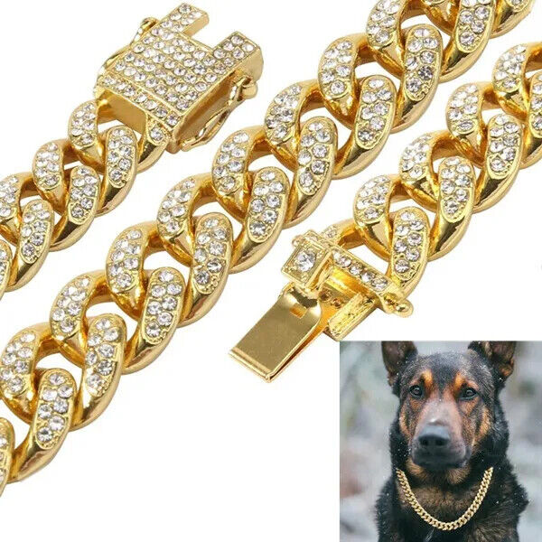 Pet Dog Cat Gold Plated Simulated Diamond 16" ~ 24" Iced Cuban Chain Necklace