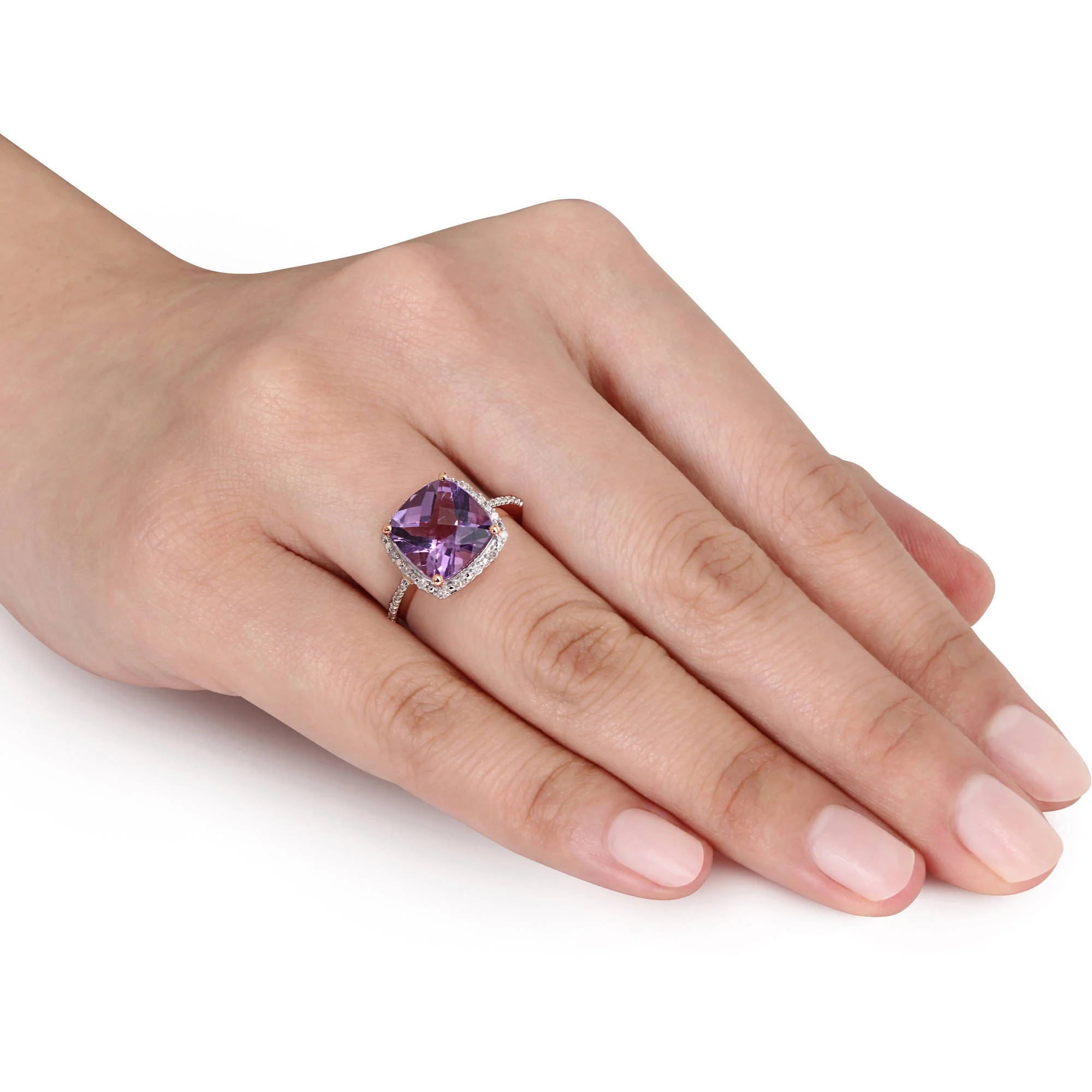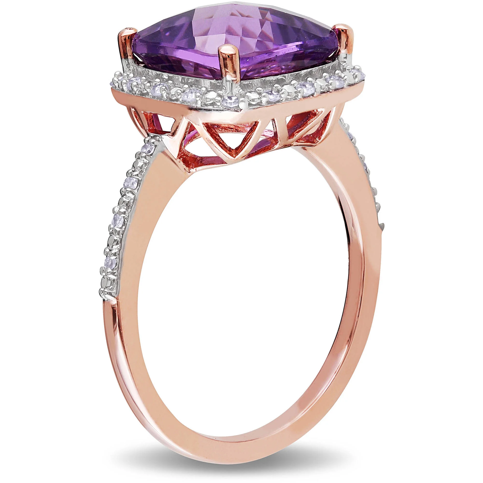 Everly Women's 3-1/2 CT T.G.W. Cushion-Cut Amethyst 1/10 CT T.W. Diamond 10kt Rose Gold Halo Ring