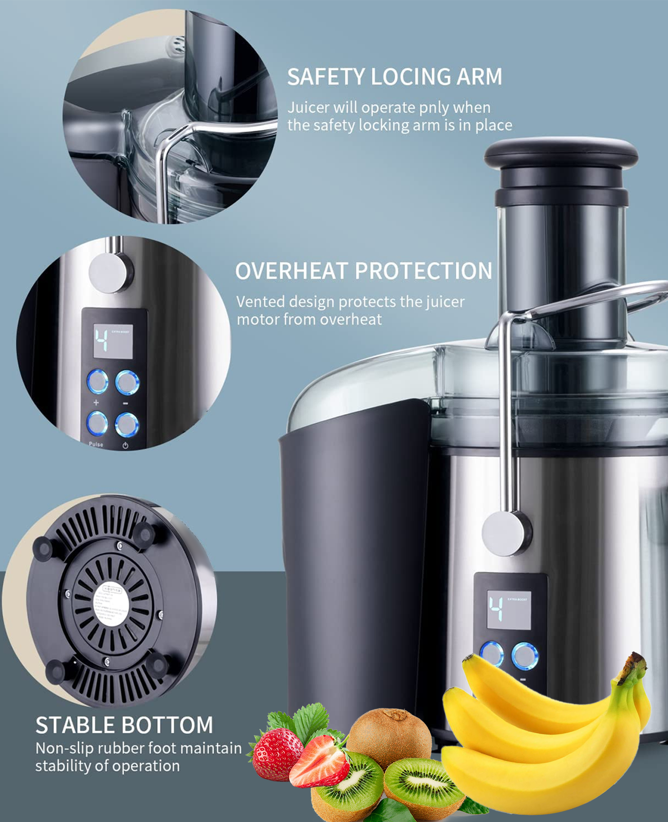 Centrifugal Juicer Machines for Vegetable Fruit - with 3" Feed Chute Anti-drip Tainless-steel Filter