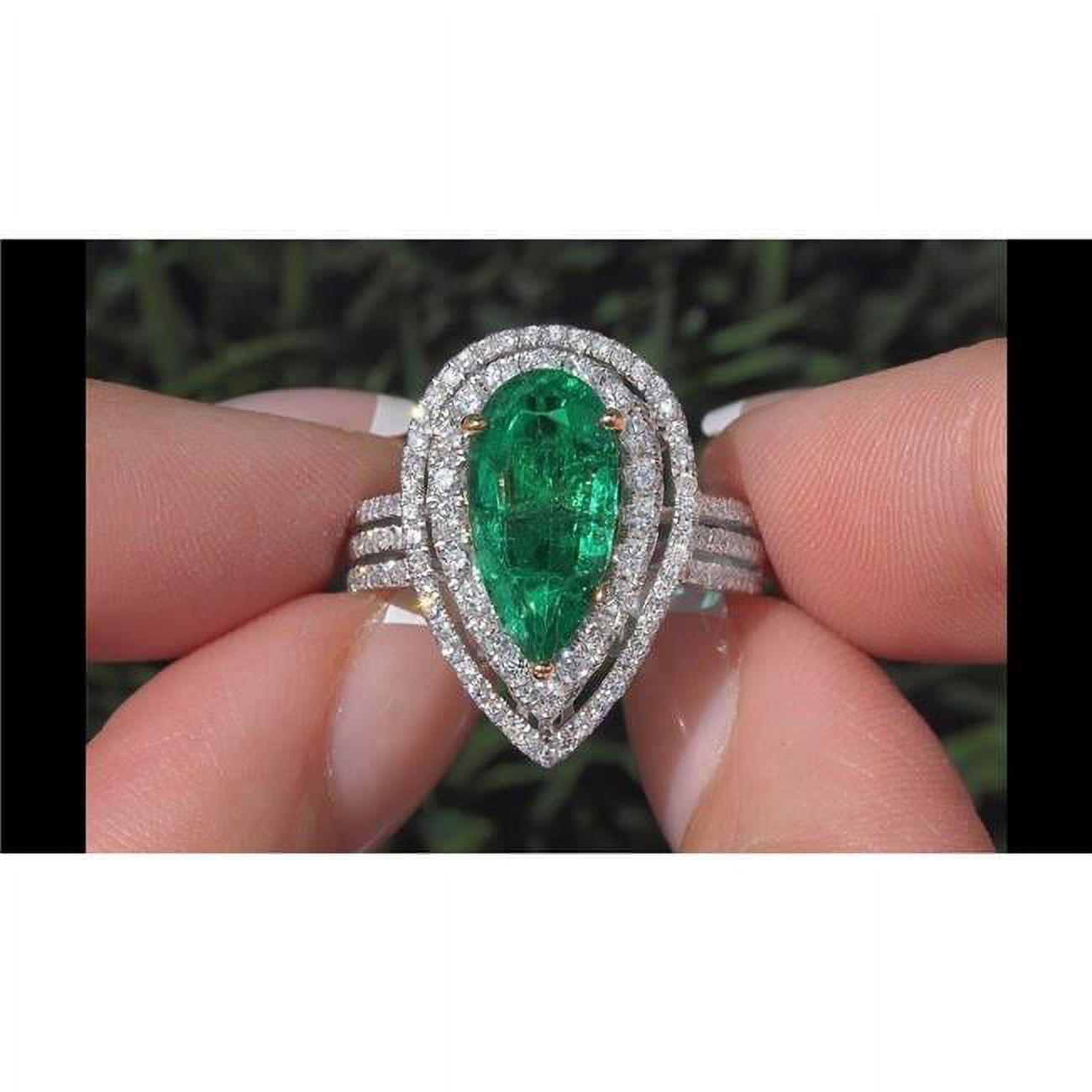 5 CT Beautiful Pear Green Emerald Diamond Ring, 14K White Gold - Size 6.5