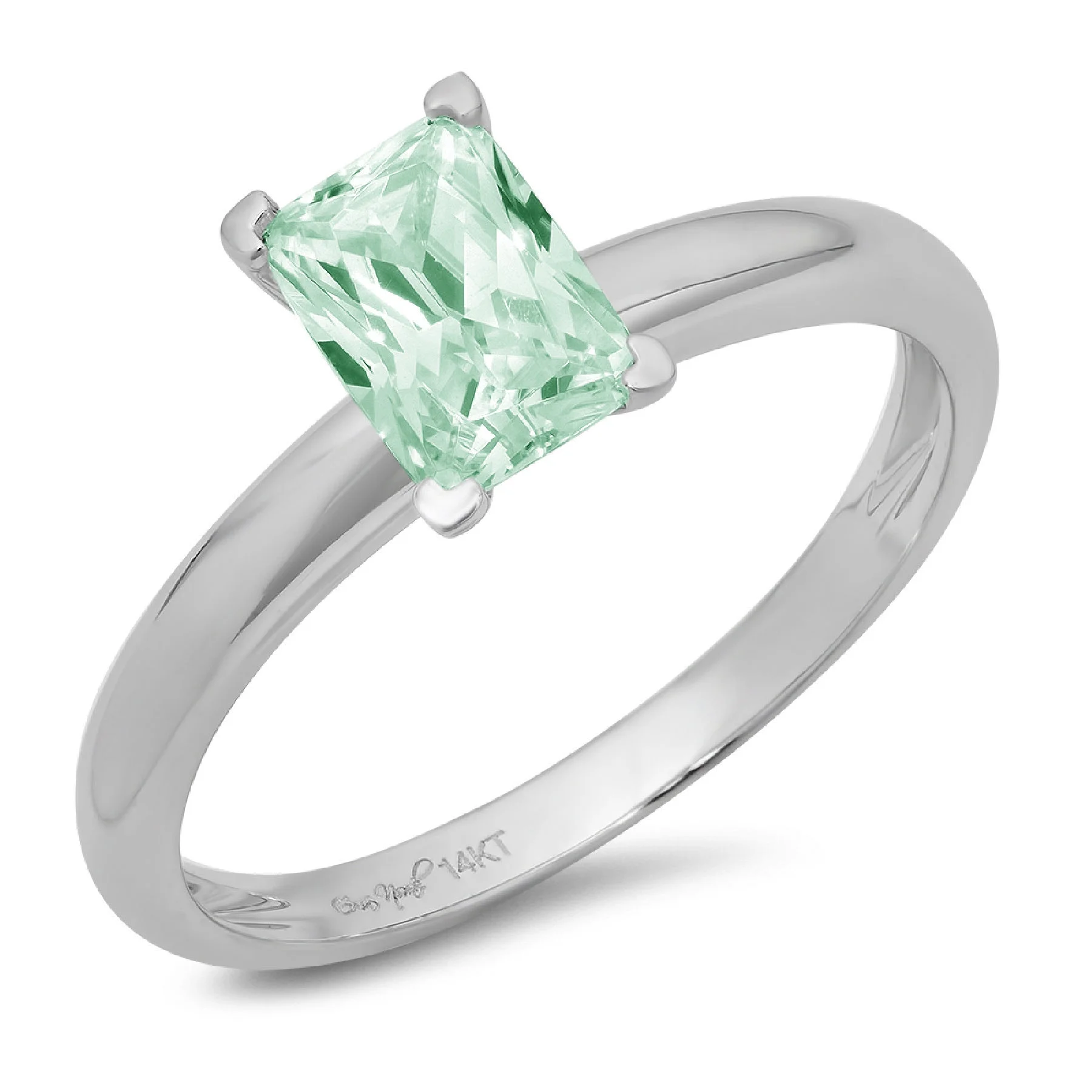 1ct emerald cut blue moissanite 18k white gold anniversary engagement ring size 3.75