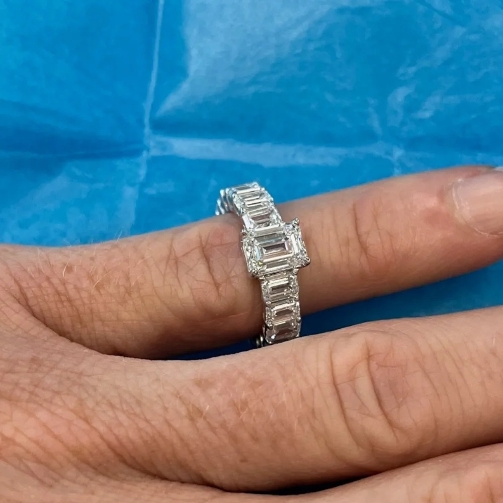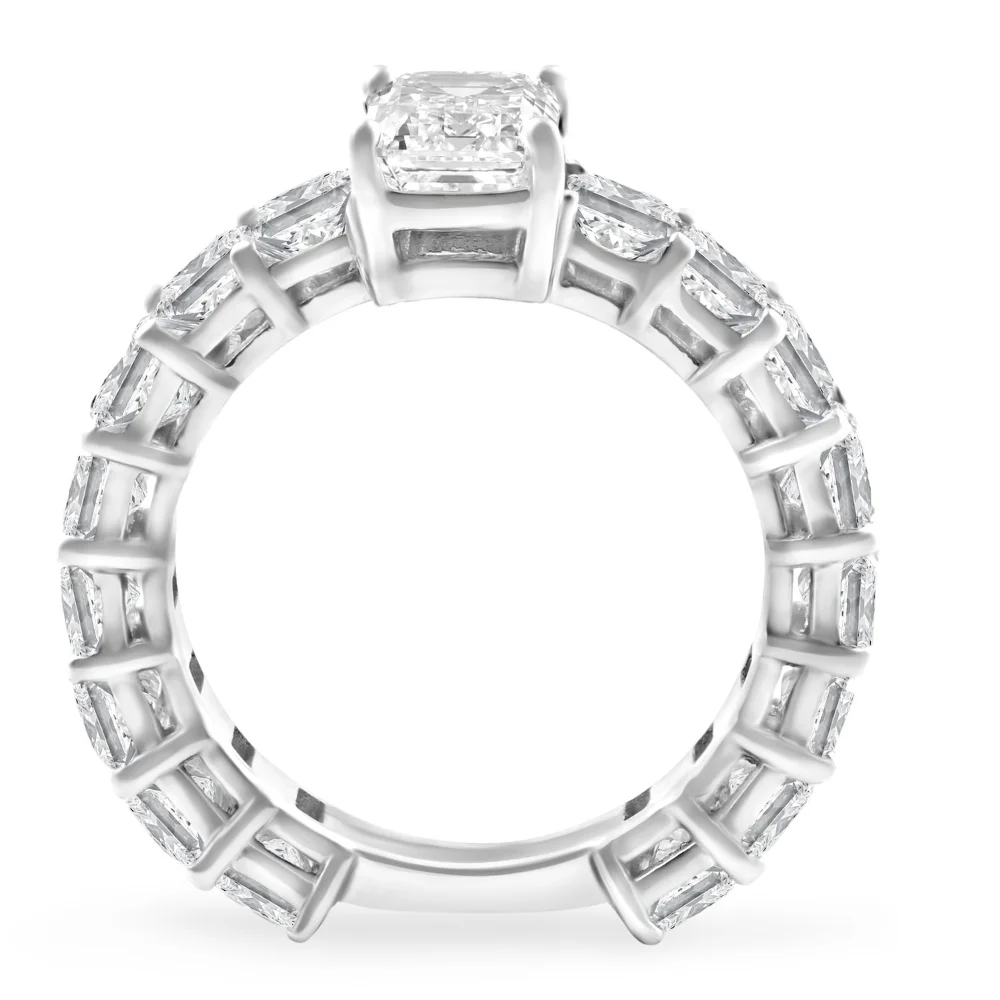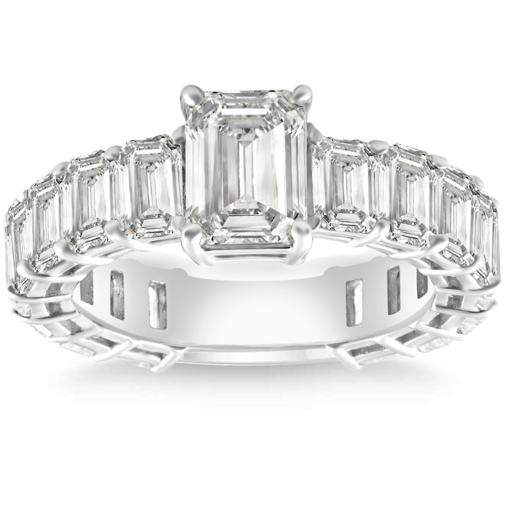 Pompeii3 VS 7 1/2Ct Emerald Cut Diamond Engagement Ring 3/4 Eternity 14k Gold Lab Grown