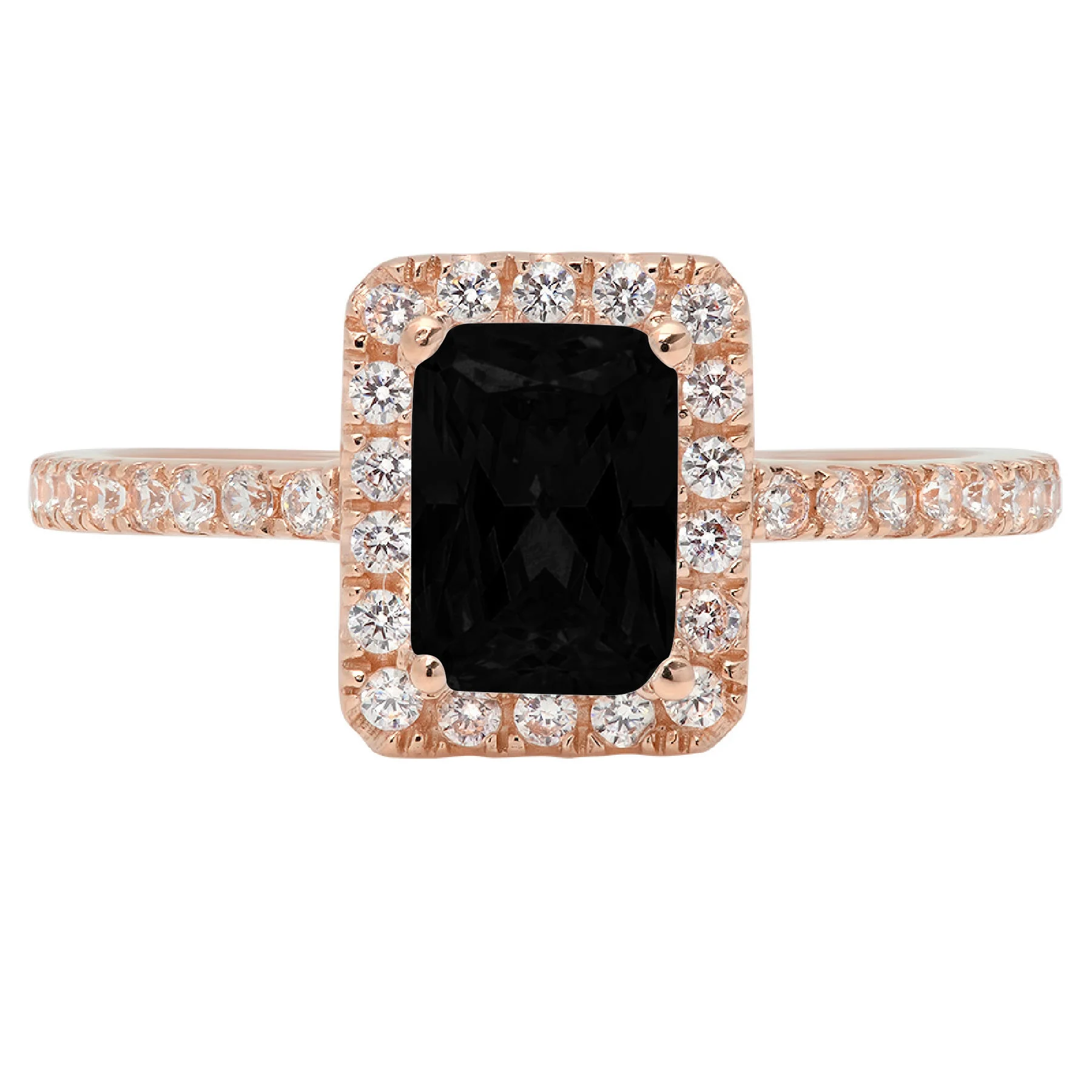 1.86ct emerald cut black natural onyx 18k rose gold anniversary engagement halo ring size 8.5