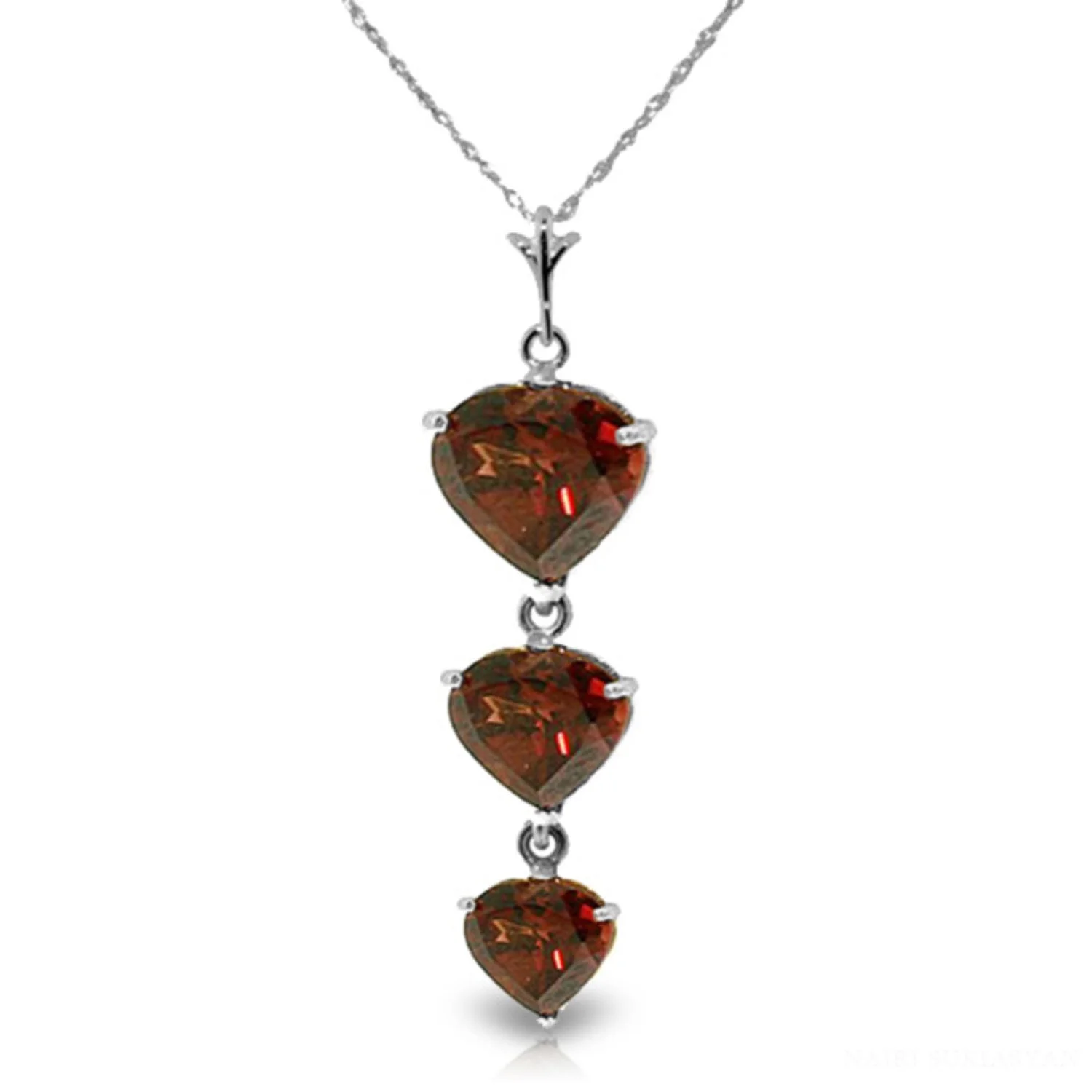Galaxy Gold 14k 22" Solid White Gold Necklace with Natural Heart-shaped Garnets