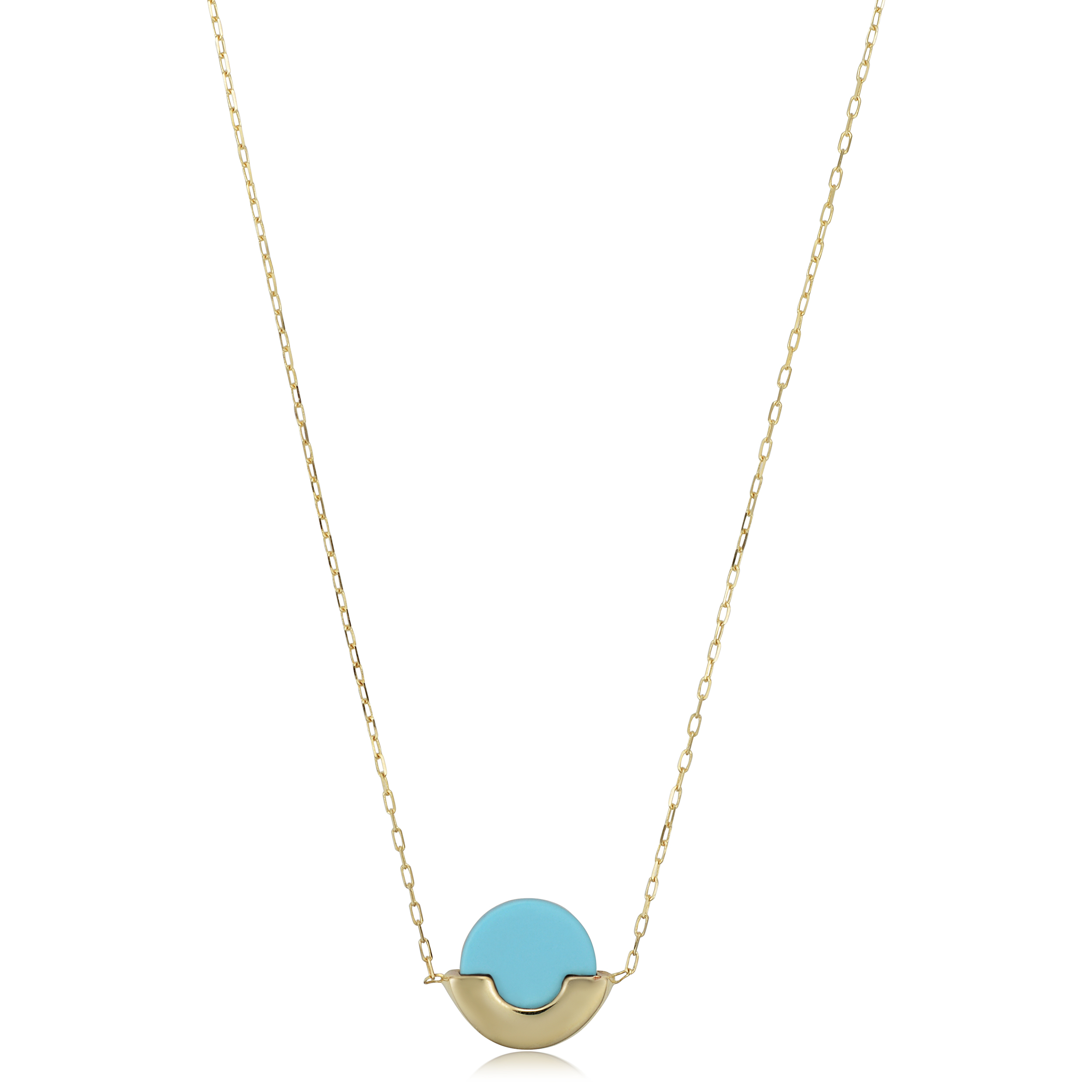 14k Yellow Gold Turquoise Adjustable Length Necklace (adjusts to 16" or 17")