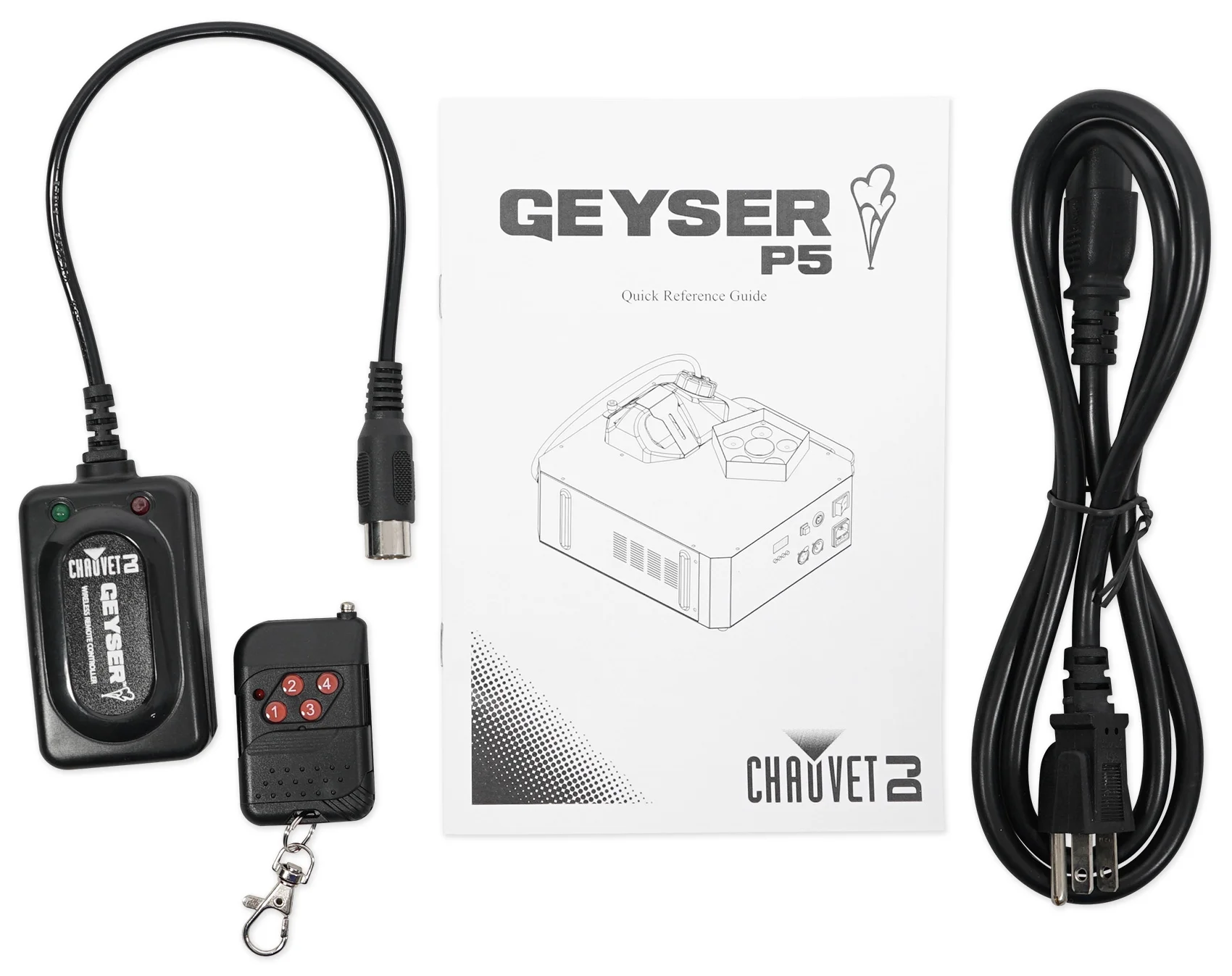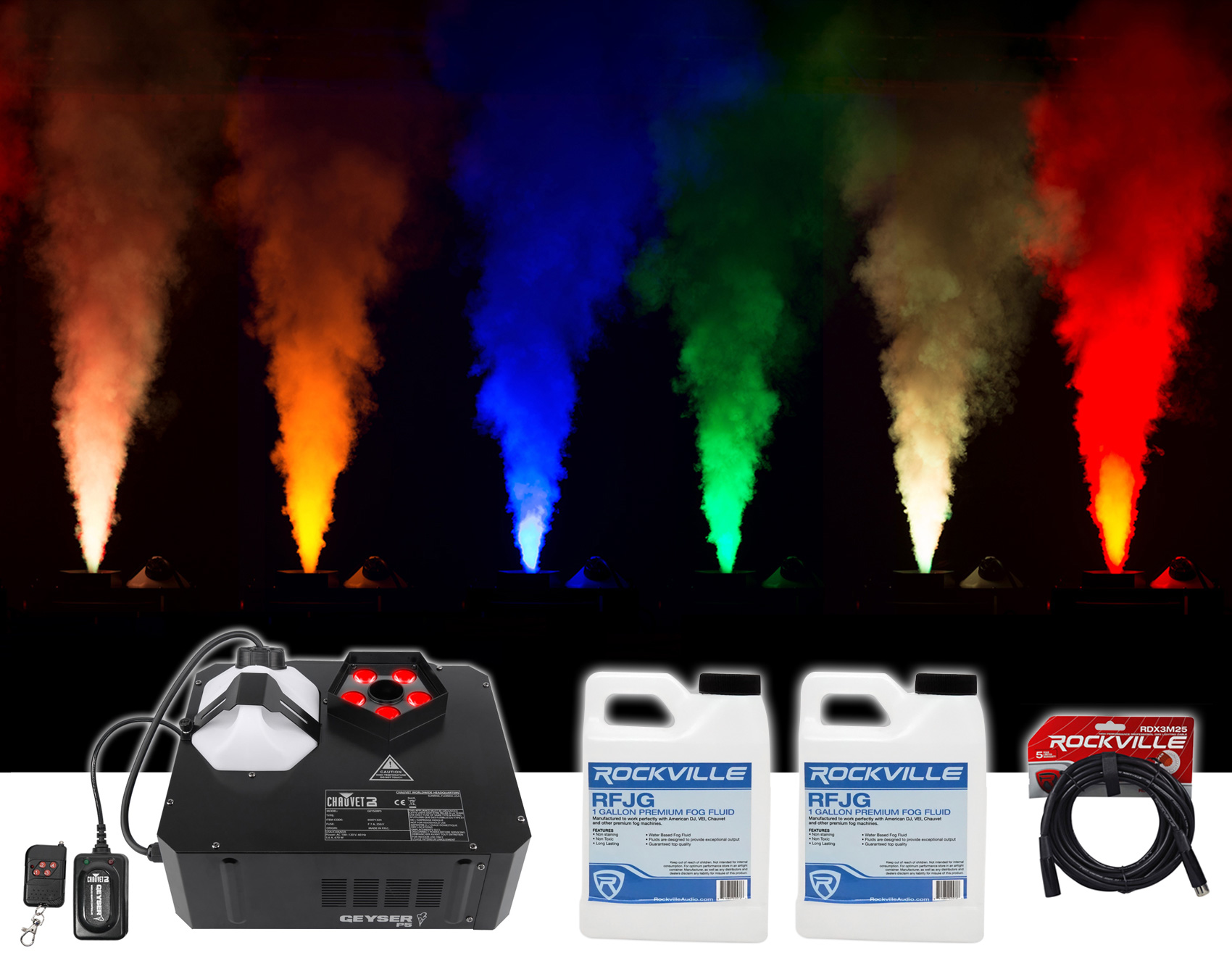 Chauvet DJ GEYSER P5 Fog Machine Fogger w/Effects+Remote+2) Gal. Fluid+DMX Cable