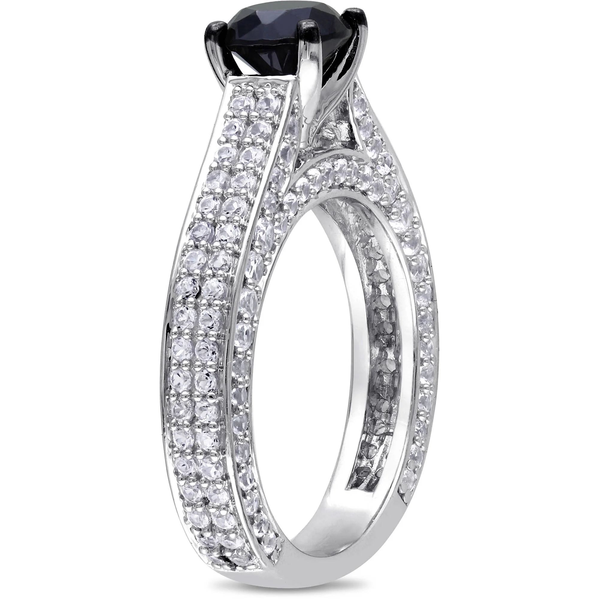 3 Carat T.G.W. Black Spinel and Created White Sapphire Sterling Silver Double-Row Engagement Ring