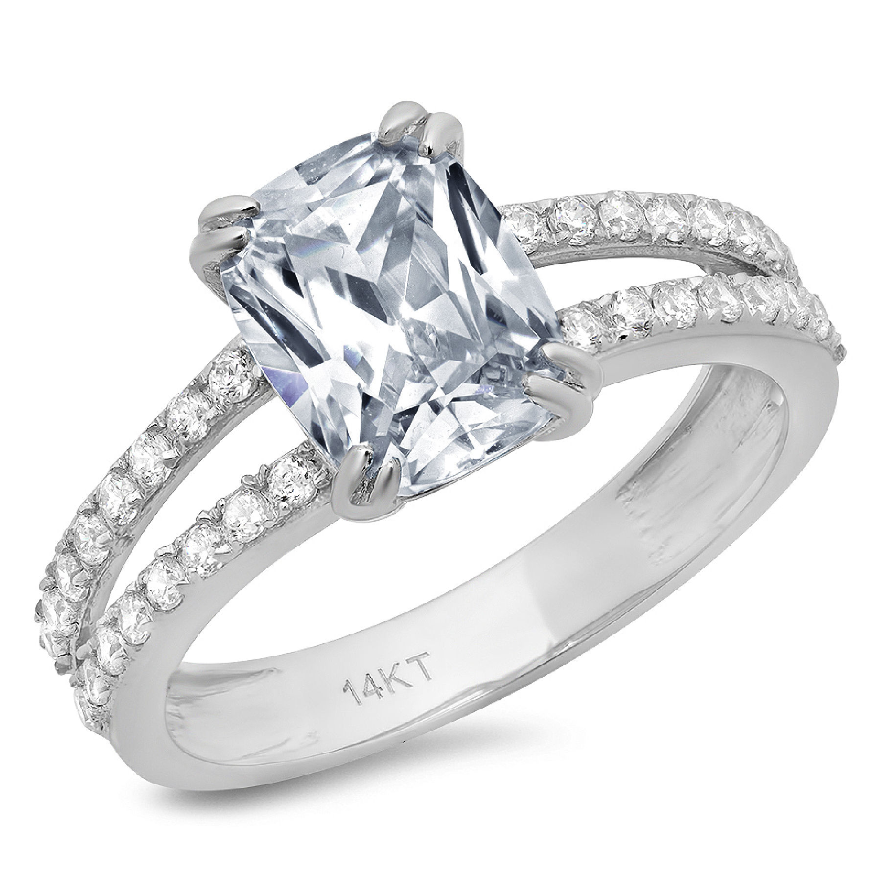 3.96 ct Brilliant Cushion Cut Clear Simulated Diamond 18K White Gold Solitaire with Accents Ring SZ 8.75
