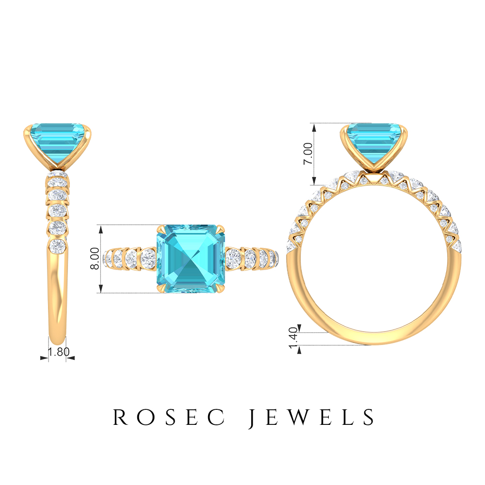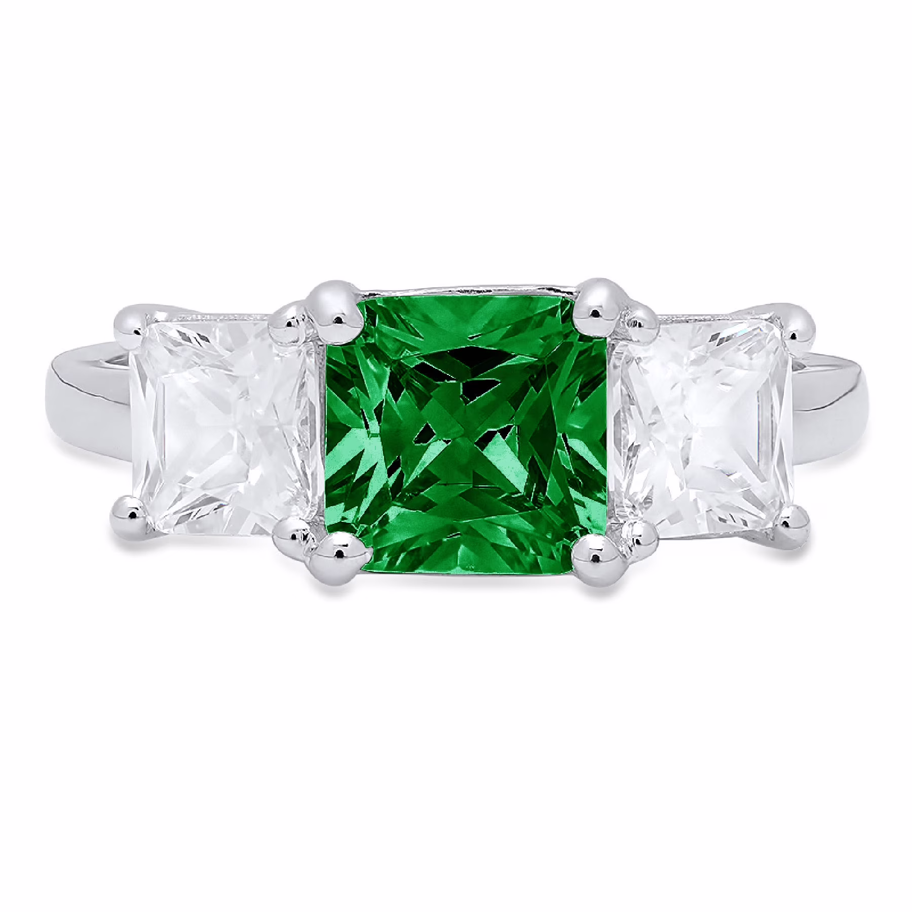 4.0 ct Brilliant Square Emerald Cut Clear Simulated Diamond 18K White Gold Three-Stone Ring SZ 7.75