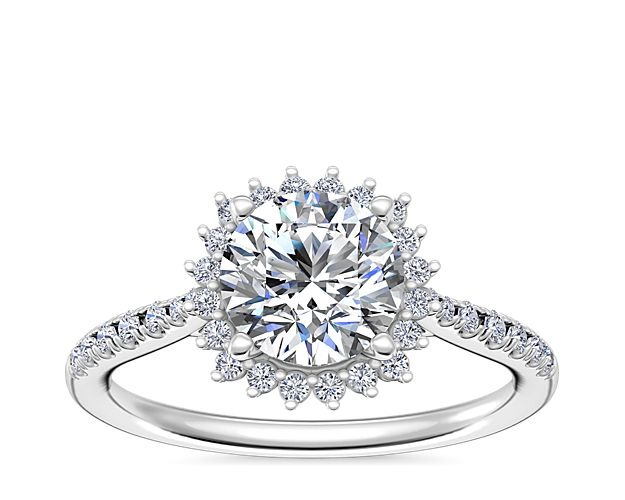 0.95 Ct Brilliant Round Cut Natural Diamond Radiant Halo Engagement Ring for her Solid 14K White Gold Size 5.5