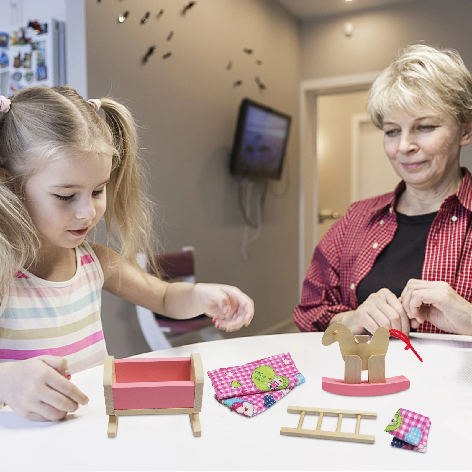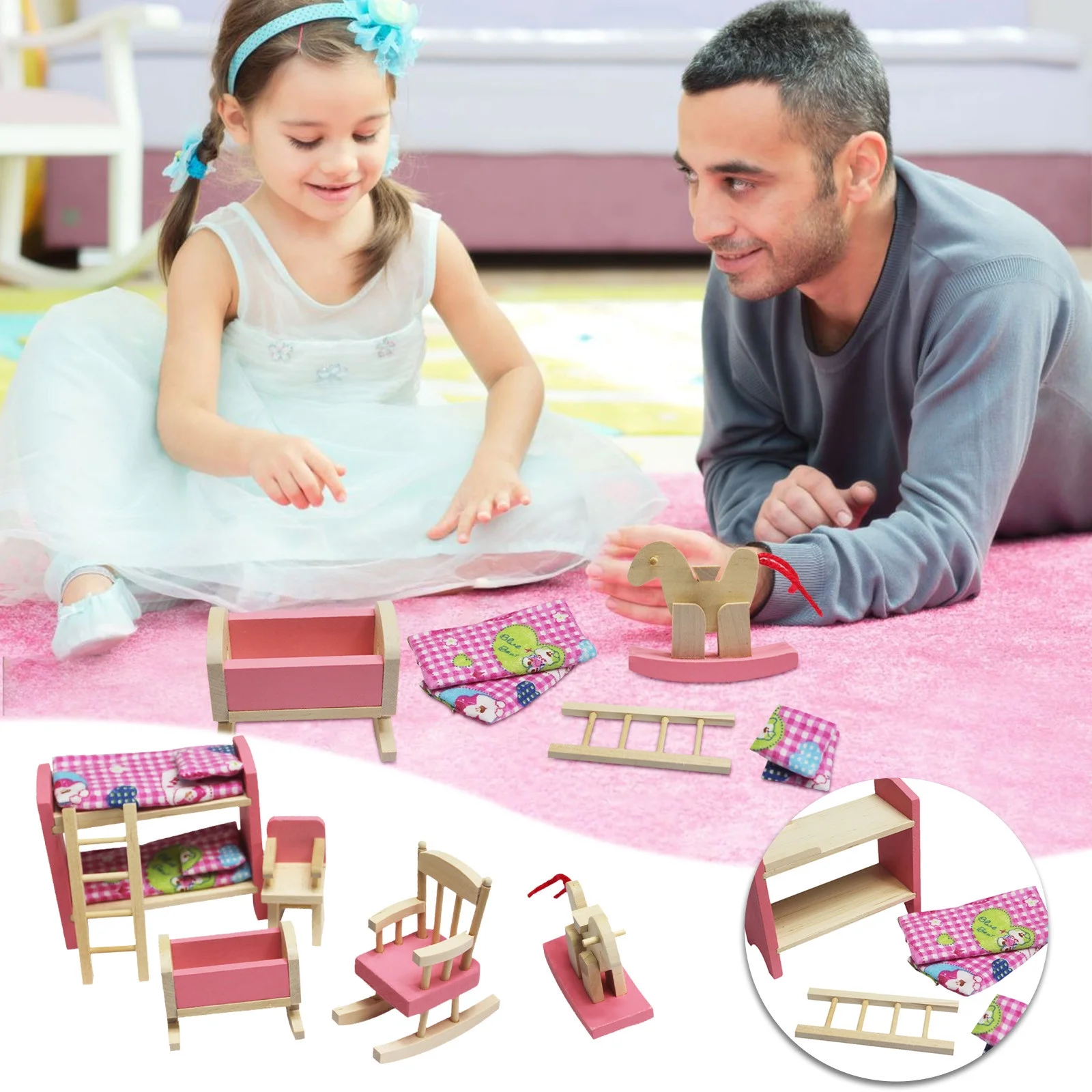 Tarmeek Family Mini Simulation Children's Small Furniture Doll House Toy Bed Kitchen Sofa Model Set Christmas Gifts for Kids 3-12Y