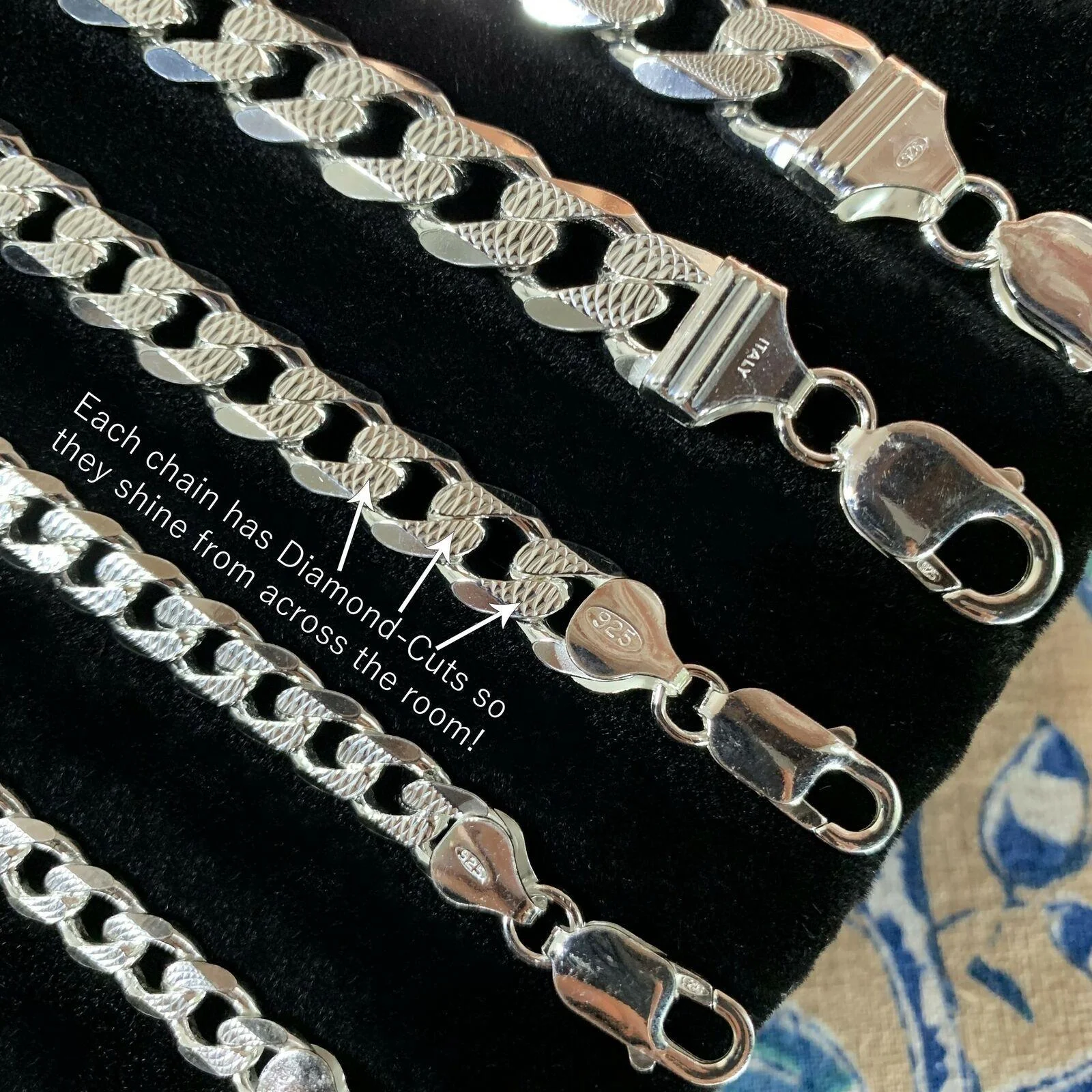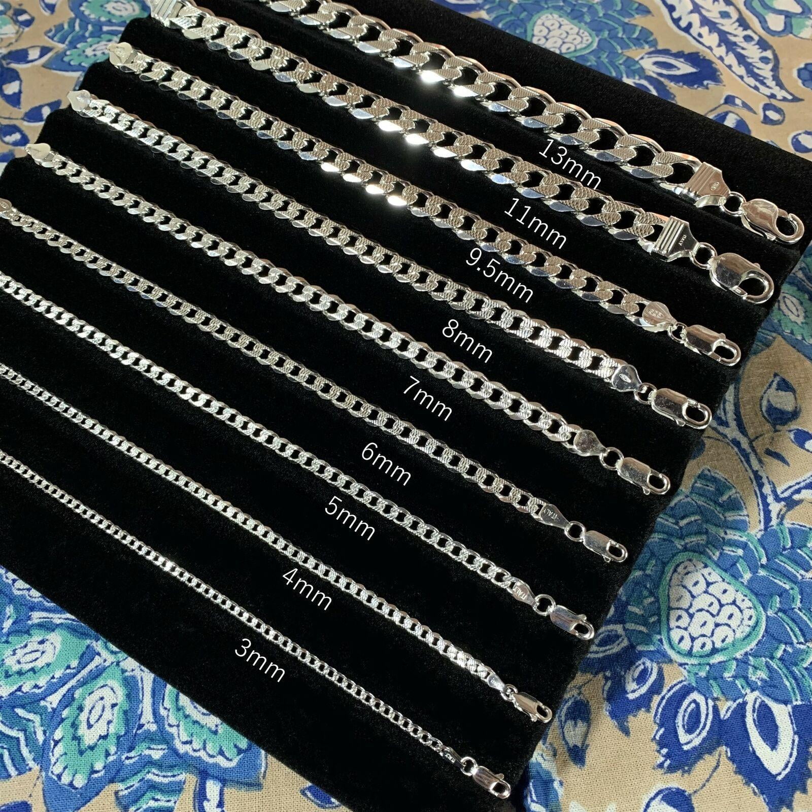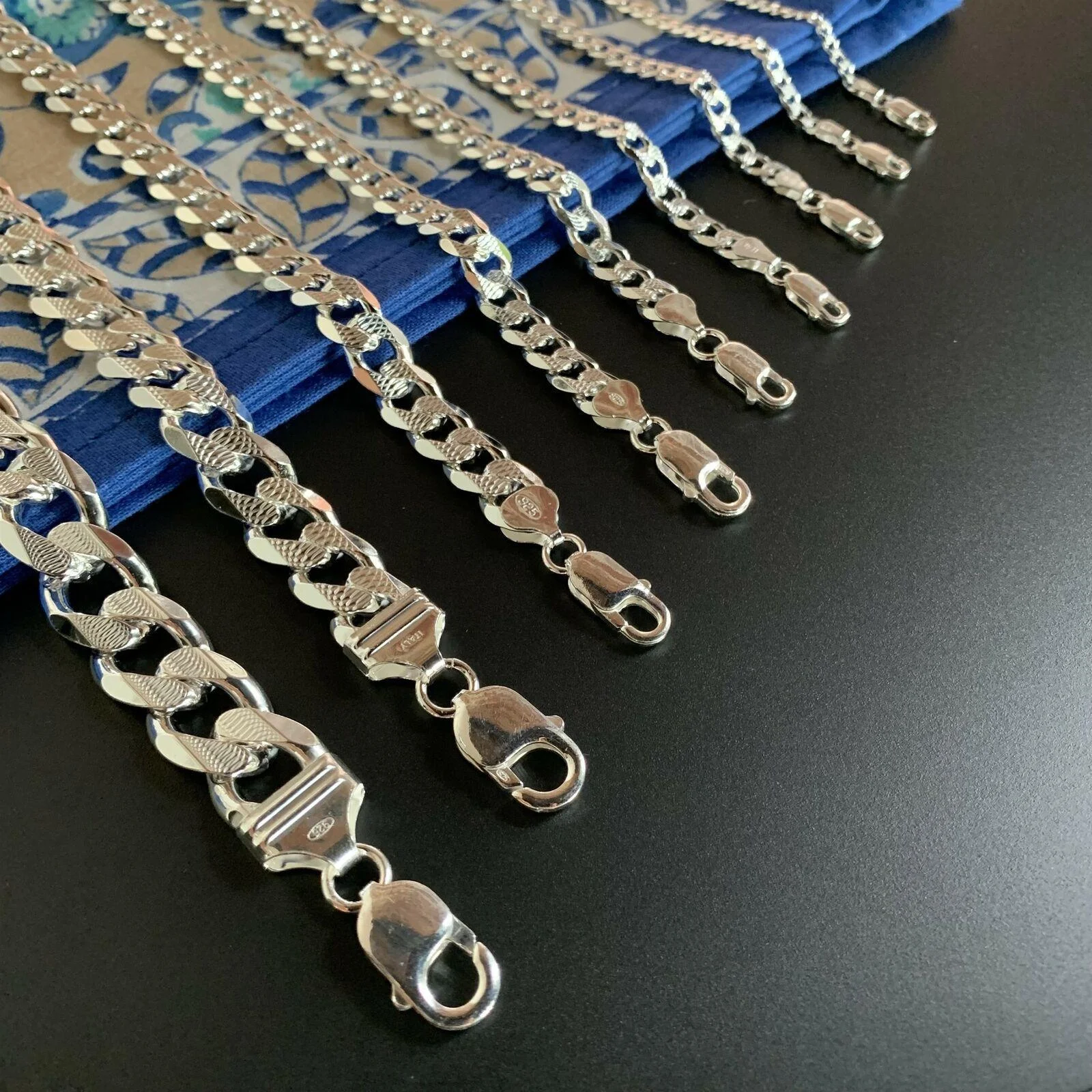 Necklaces for Men Women Kids Real Solid 925 Sterling Silver Chain Plata Diamond Cut Cuban Curb Miami