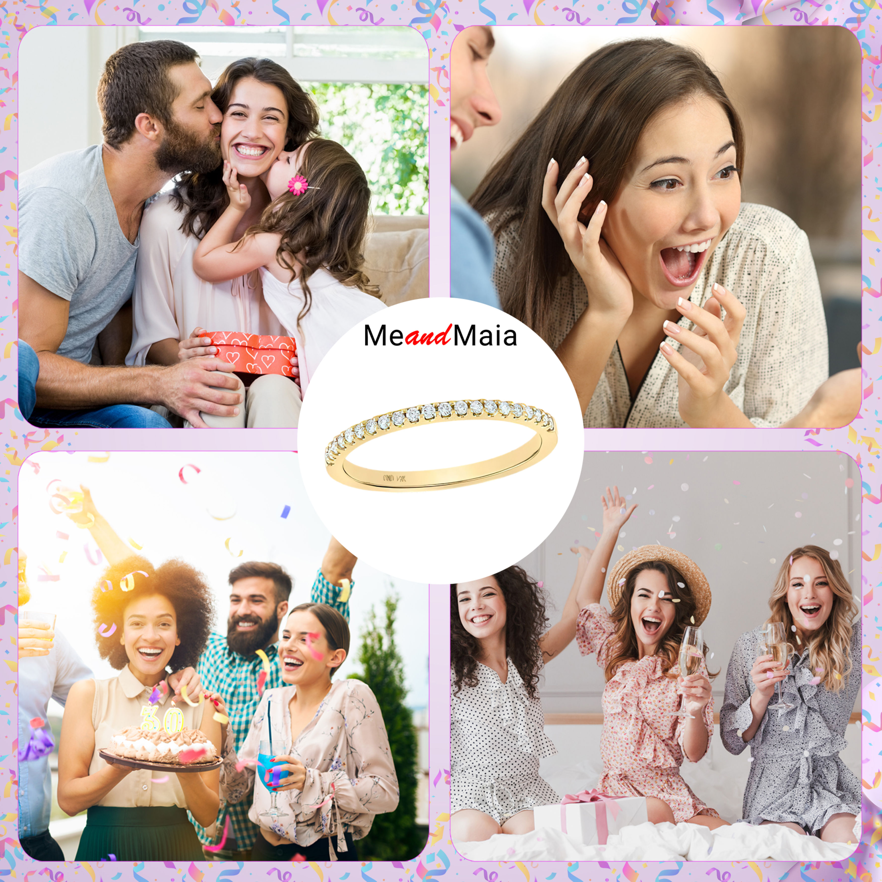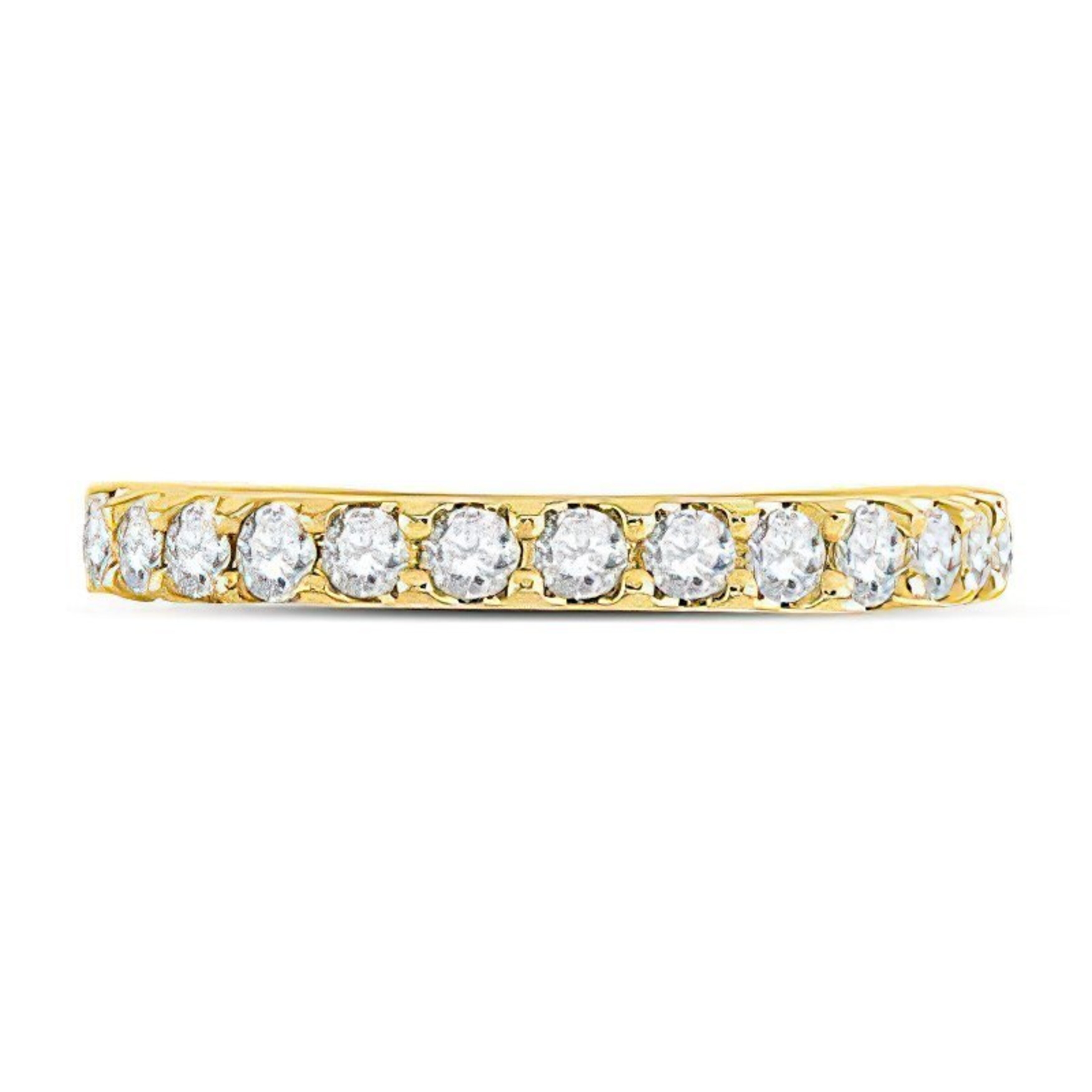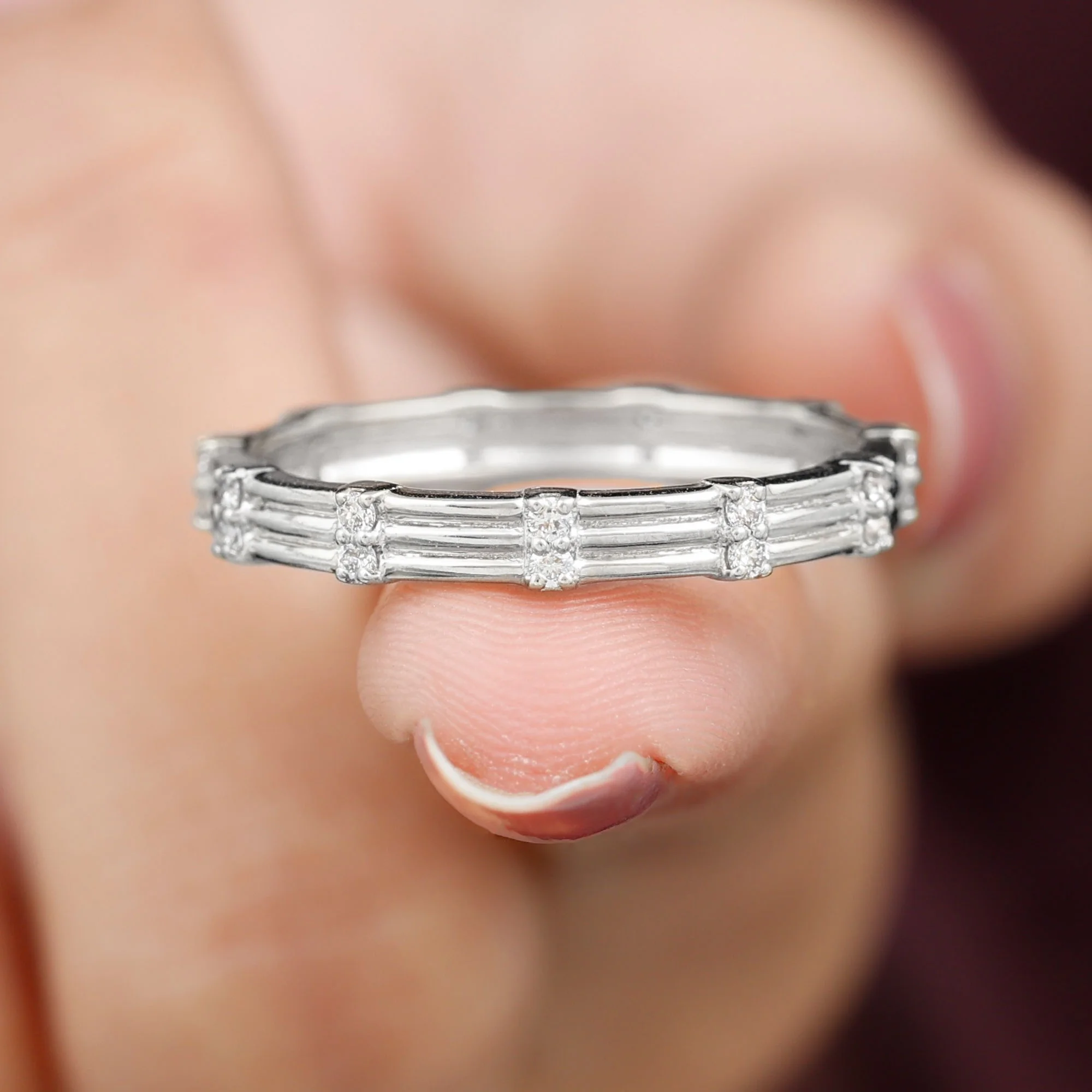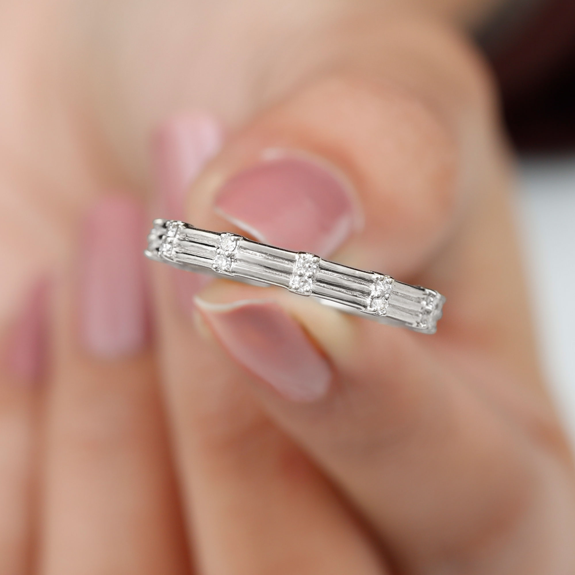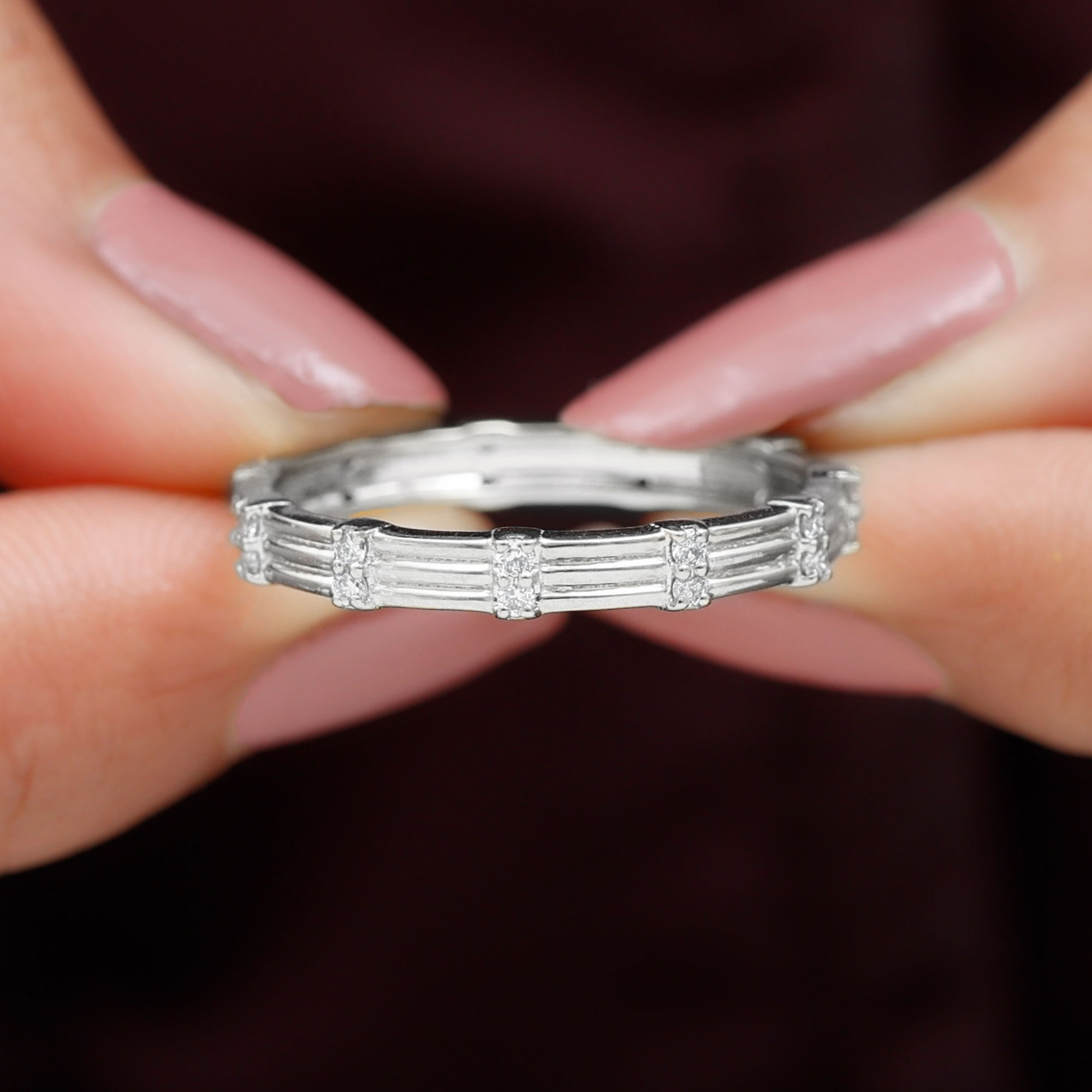 Simple Diamond Stackable Gold Band Ring in Pave Setting, 925 Sterling Silver, US 4.00