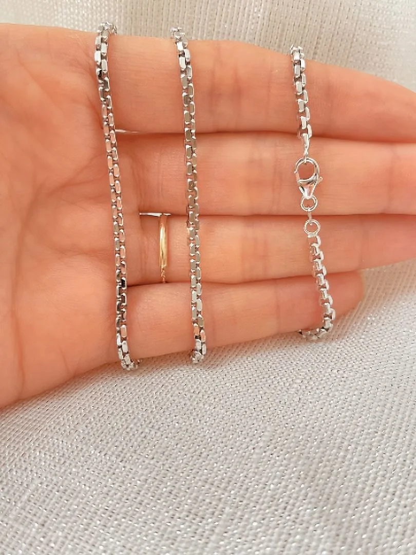 Jewelheart 14K White Real Gold Square Box Chain 2.95mm High Polished Link Pendant Necklace For Men Women 16"