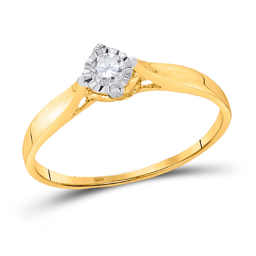 Women's Solid 10kt Yellow Gold Round Diamond Solitaire Promise Ring 1/12 Cttw Ring Size 6.5