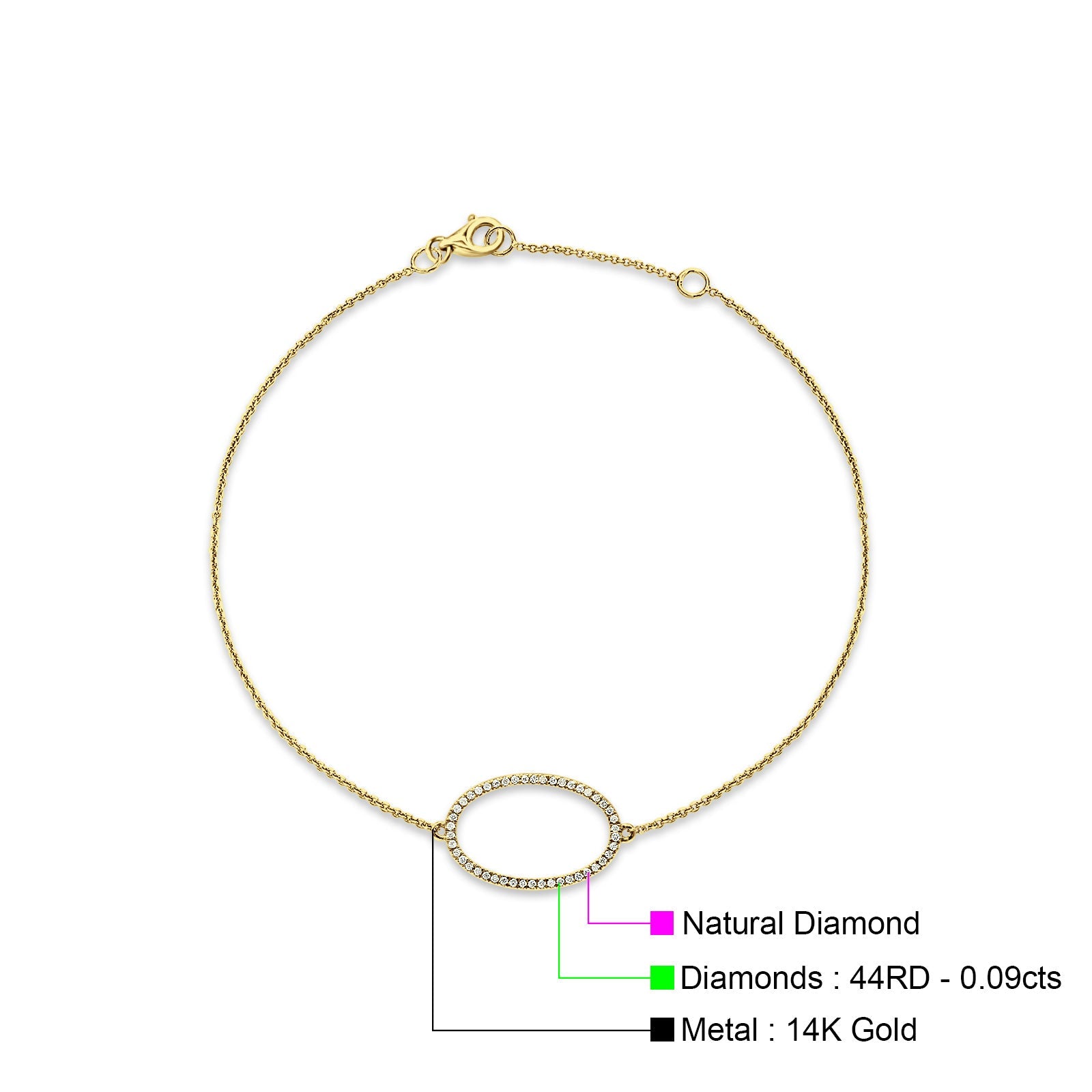 Blue Apple Jewelry Co. Diamond Trendy Oval Shape Adjustable Bracelet 14K Yellow Gold 0.09ct