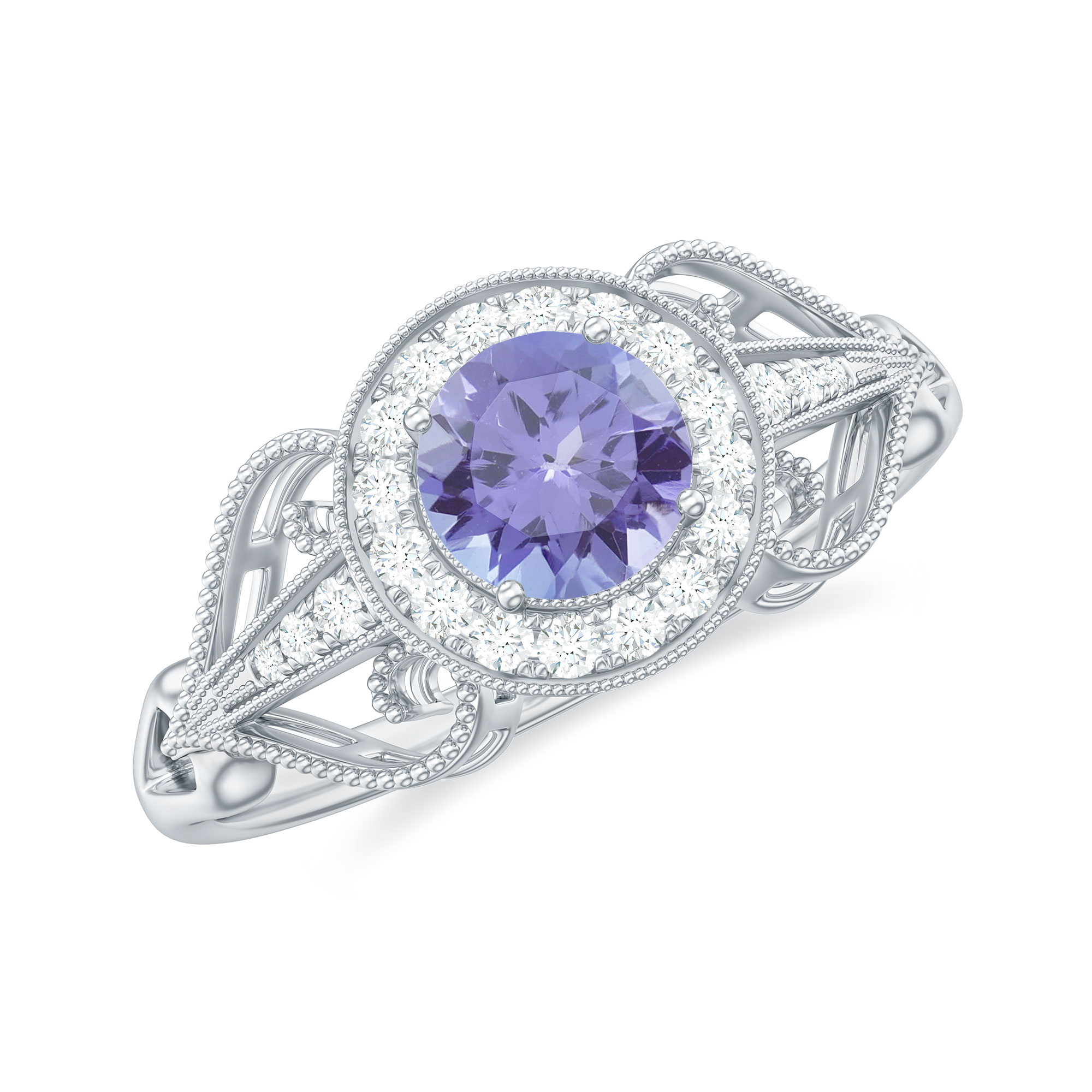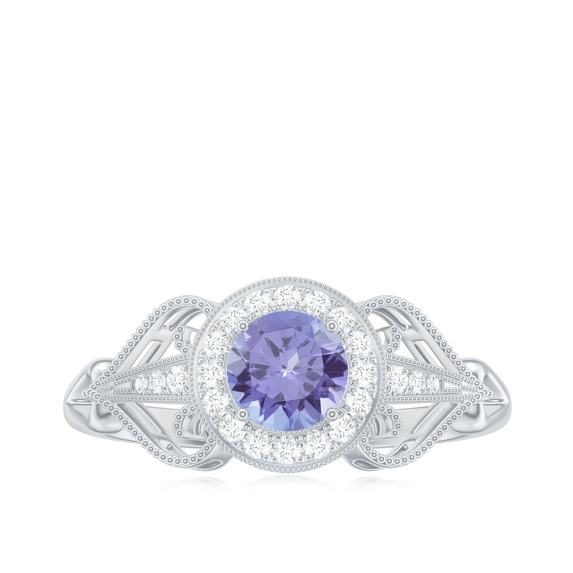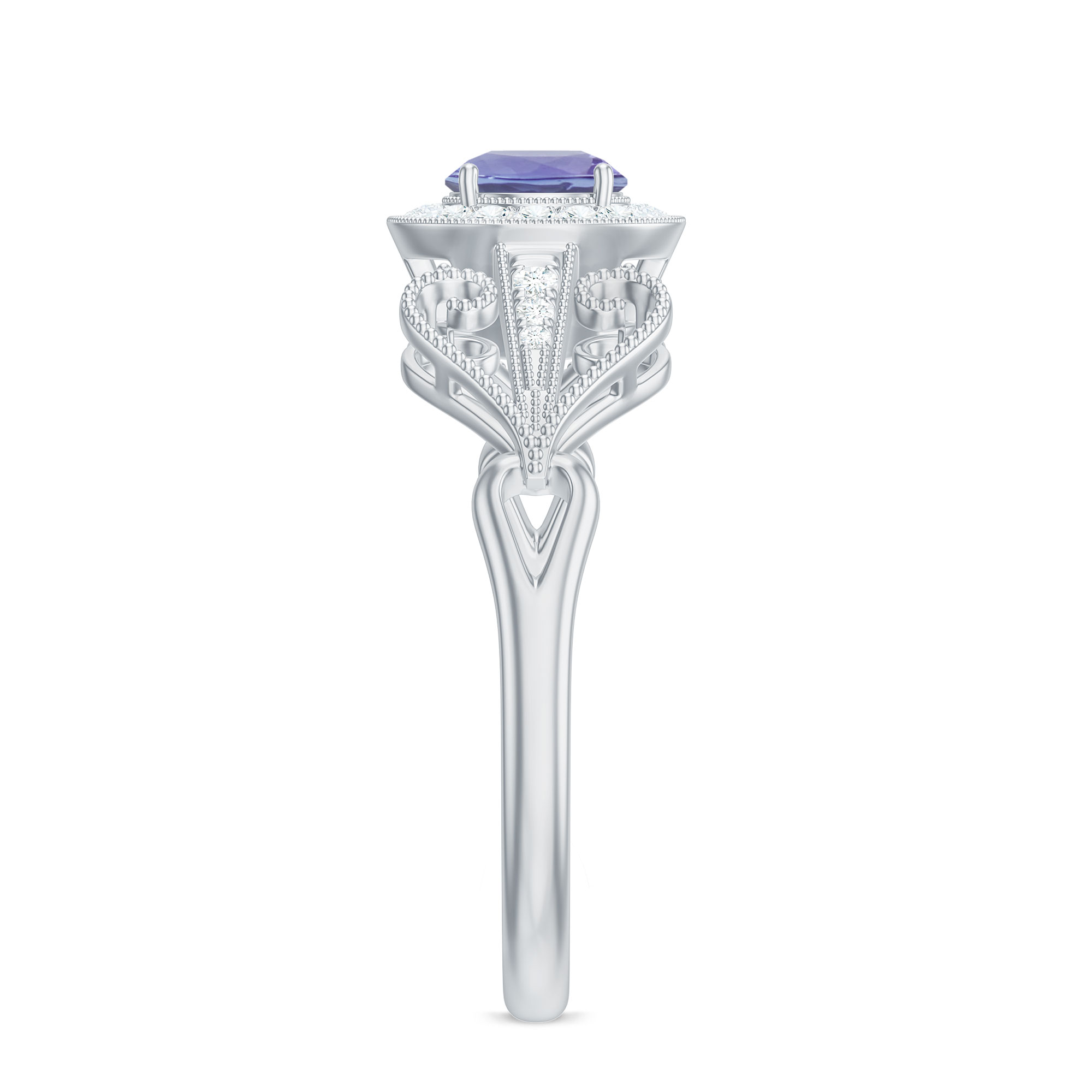 3/4 CT Elegant Tanzanite and Diamond Engagement Ring with Milgrain Details, 925 Sterling Silver, US 4.00
