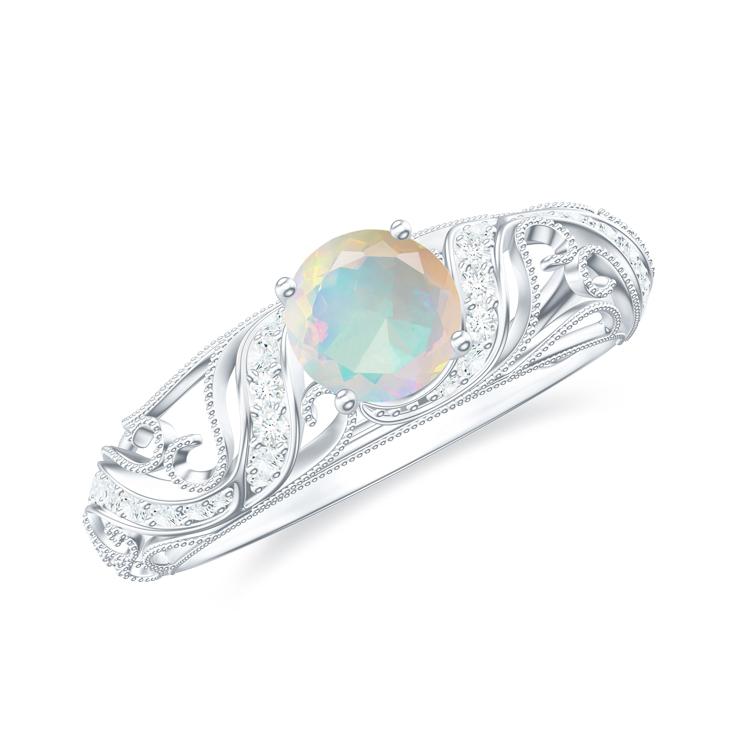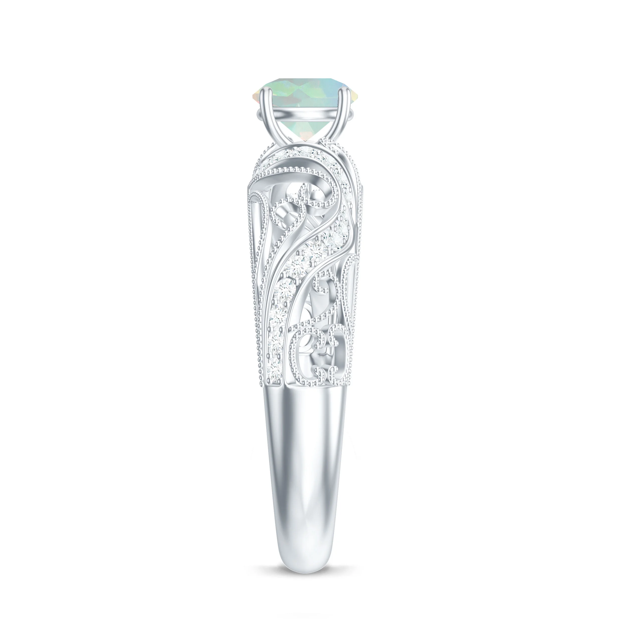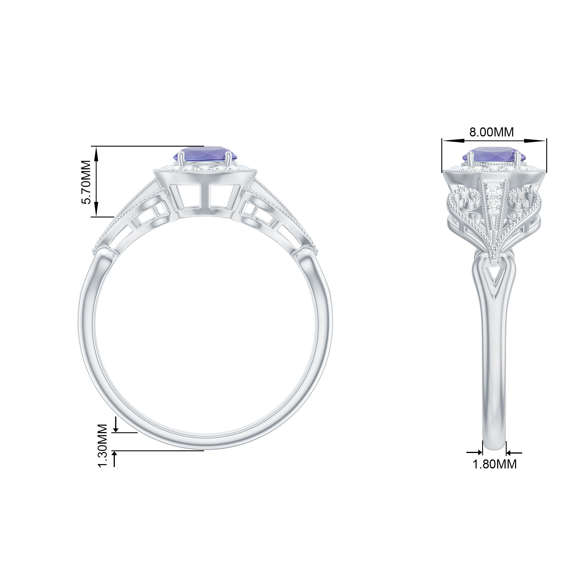 3/4 CT Elegant Tanzanite and Diamond Engagement Ring with Milgrain Details, 925 Sterling Silver, US 4.00