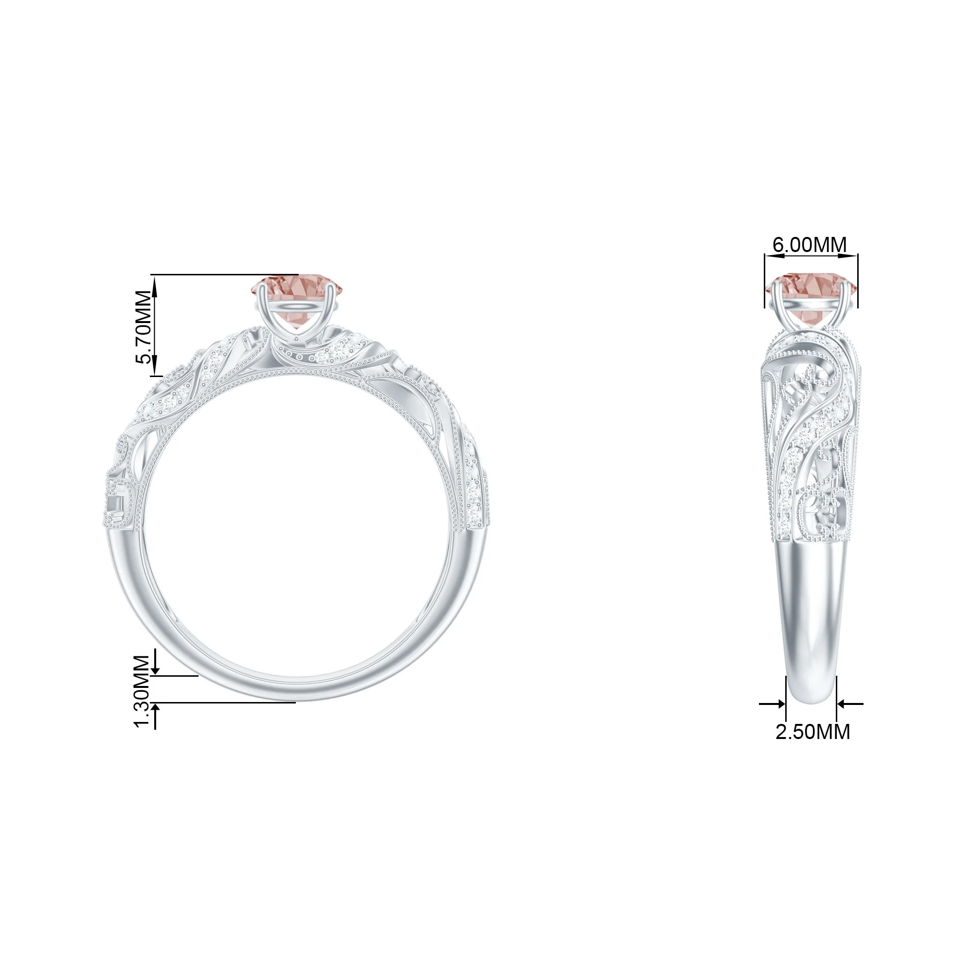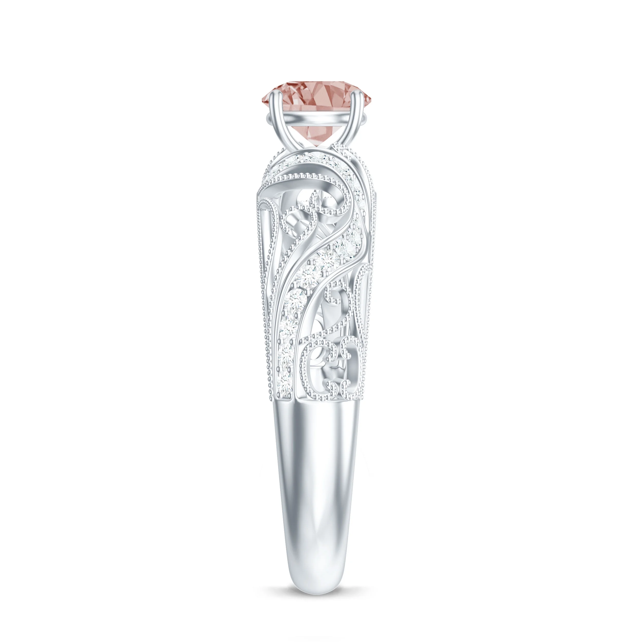 1.25 CT Created Ruby and Diamond Filigree Engagement Ring, 925 Sterling Silver, US 4.00