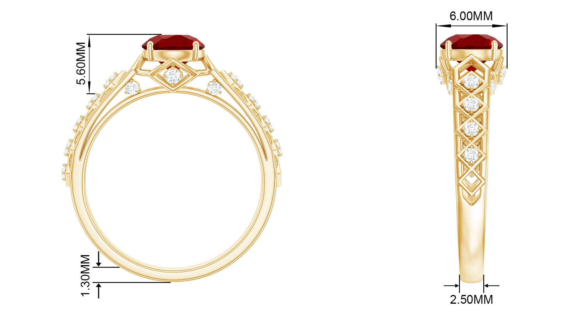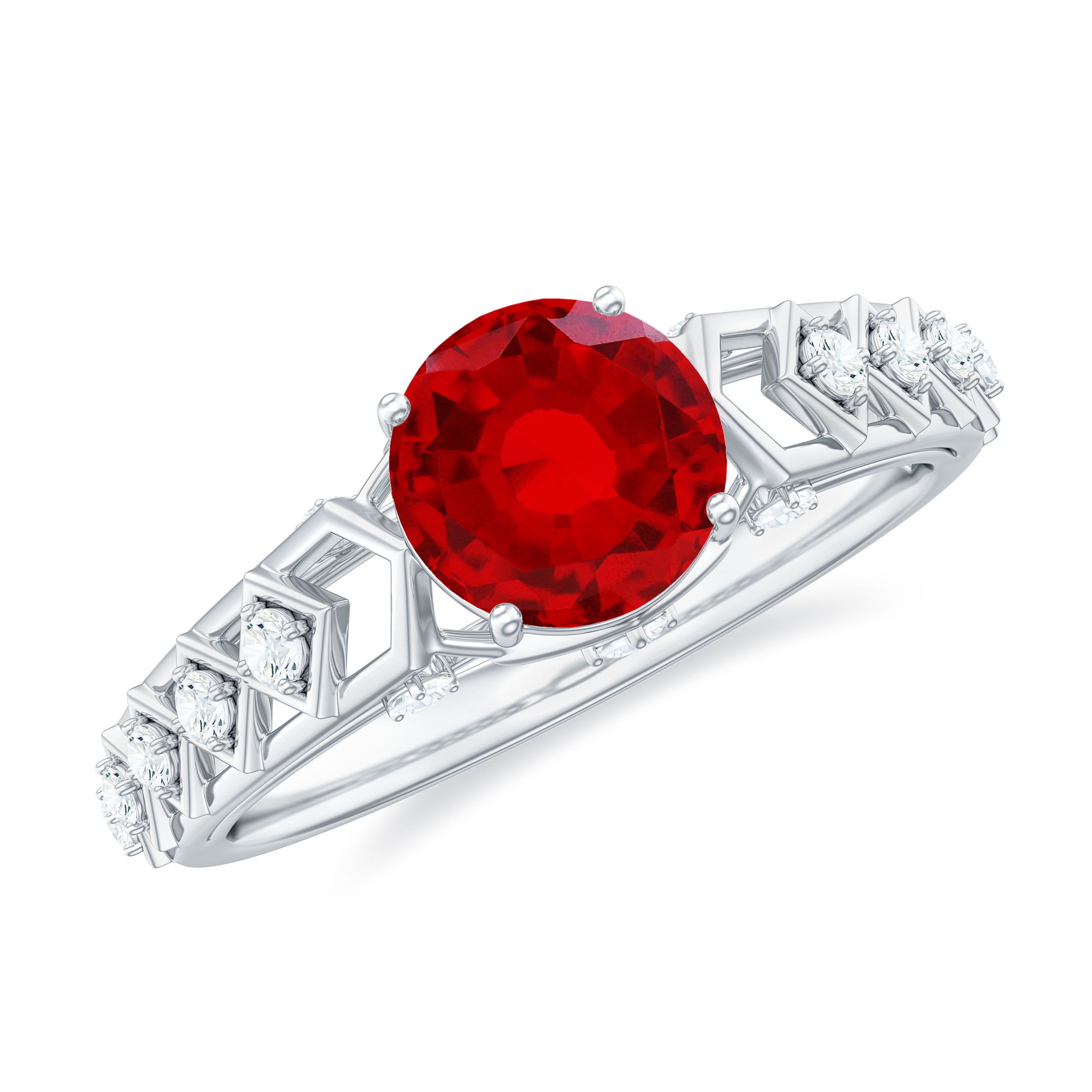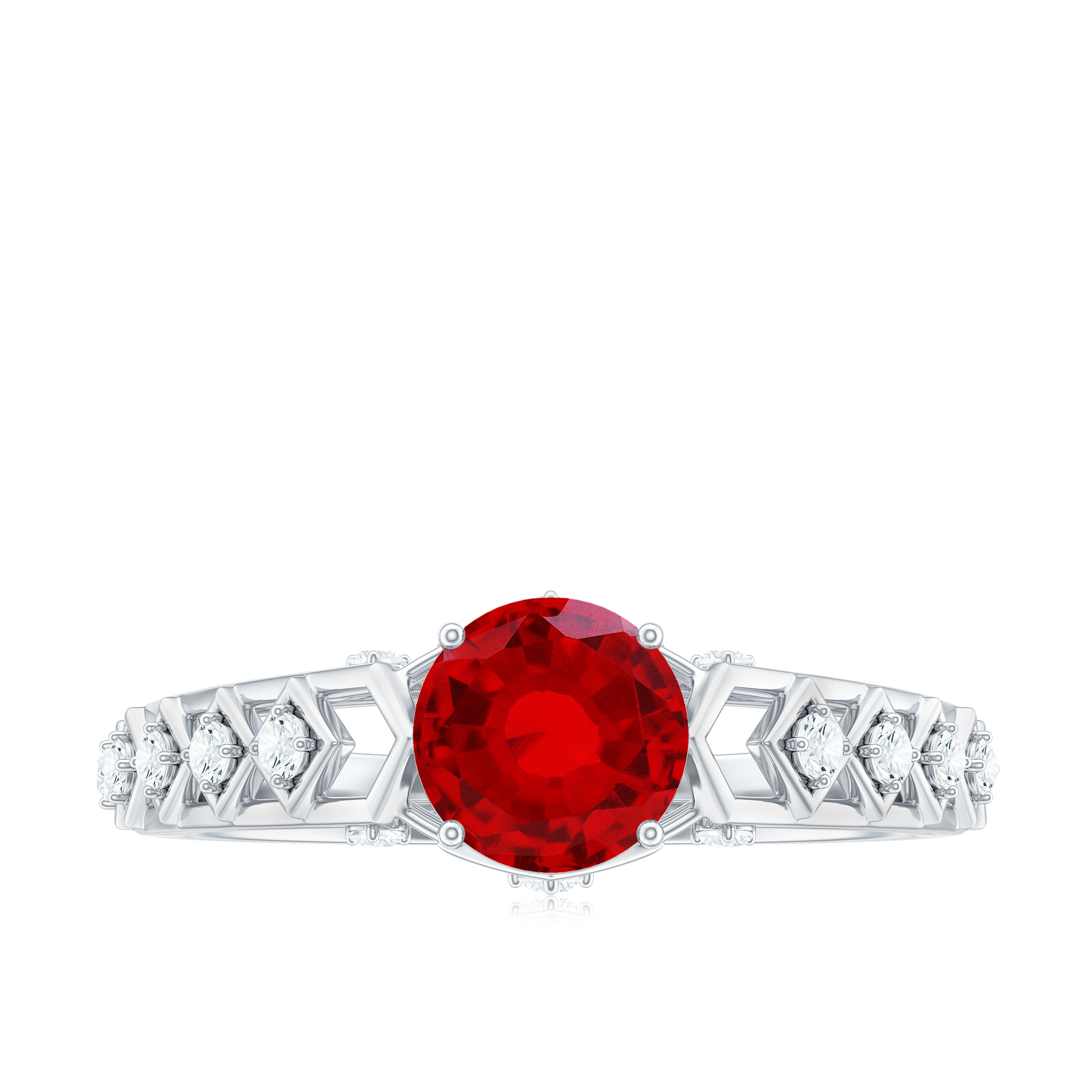 Elegant Ruby and Diamond Engagement Ring with Milgrain Details (AAA Quality), 925 Sterling Silver, US 4.00
