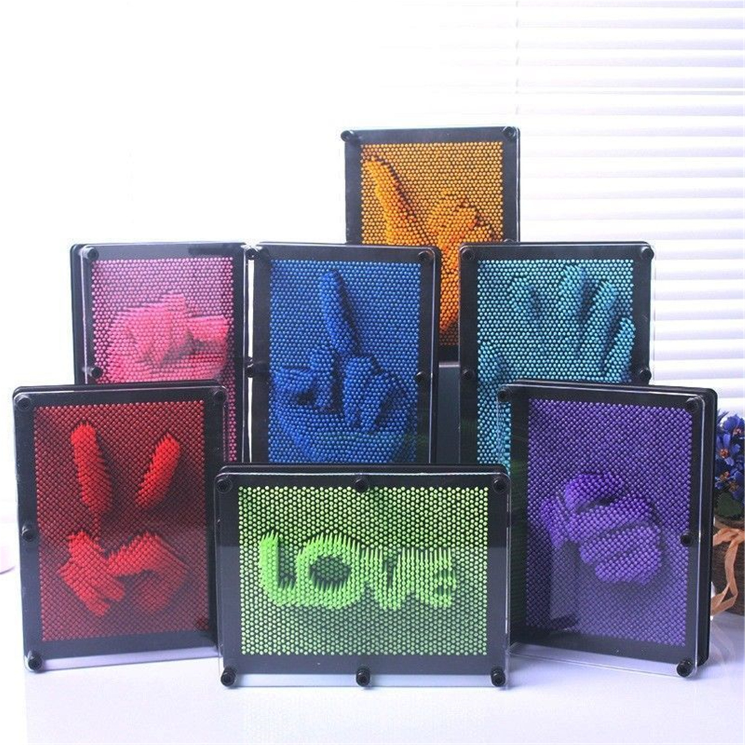 Plastic 3D Clone Hand Mode Pin Art Kids Educational Toys Plastic Square Handprint Size Large(Colorful)