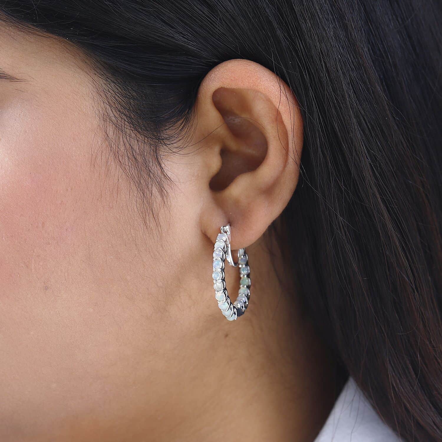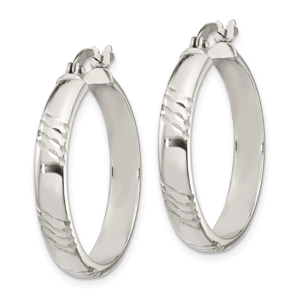 Auriga 925 Sterling Silver Rh-plated Diamond-cut J-Hoop Earrings for Women