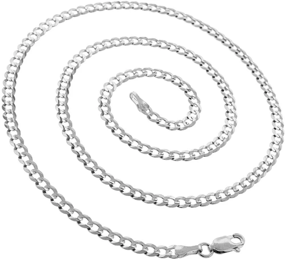 14K White Gold 3.5mm Solid Cuban Chain, FREE Microfiber Cloth, Curb Link Mens Womens Necklace, Giorgio Bergamo