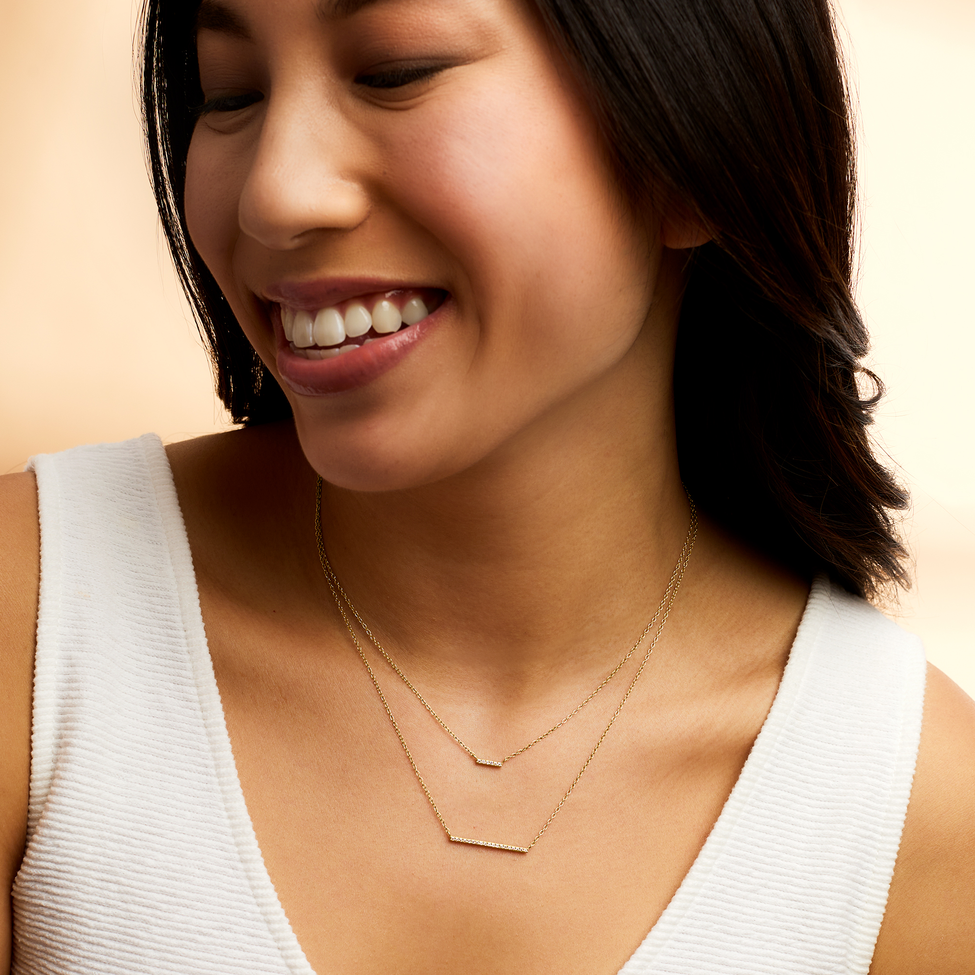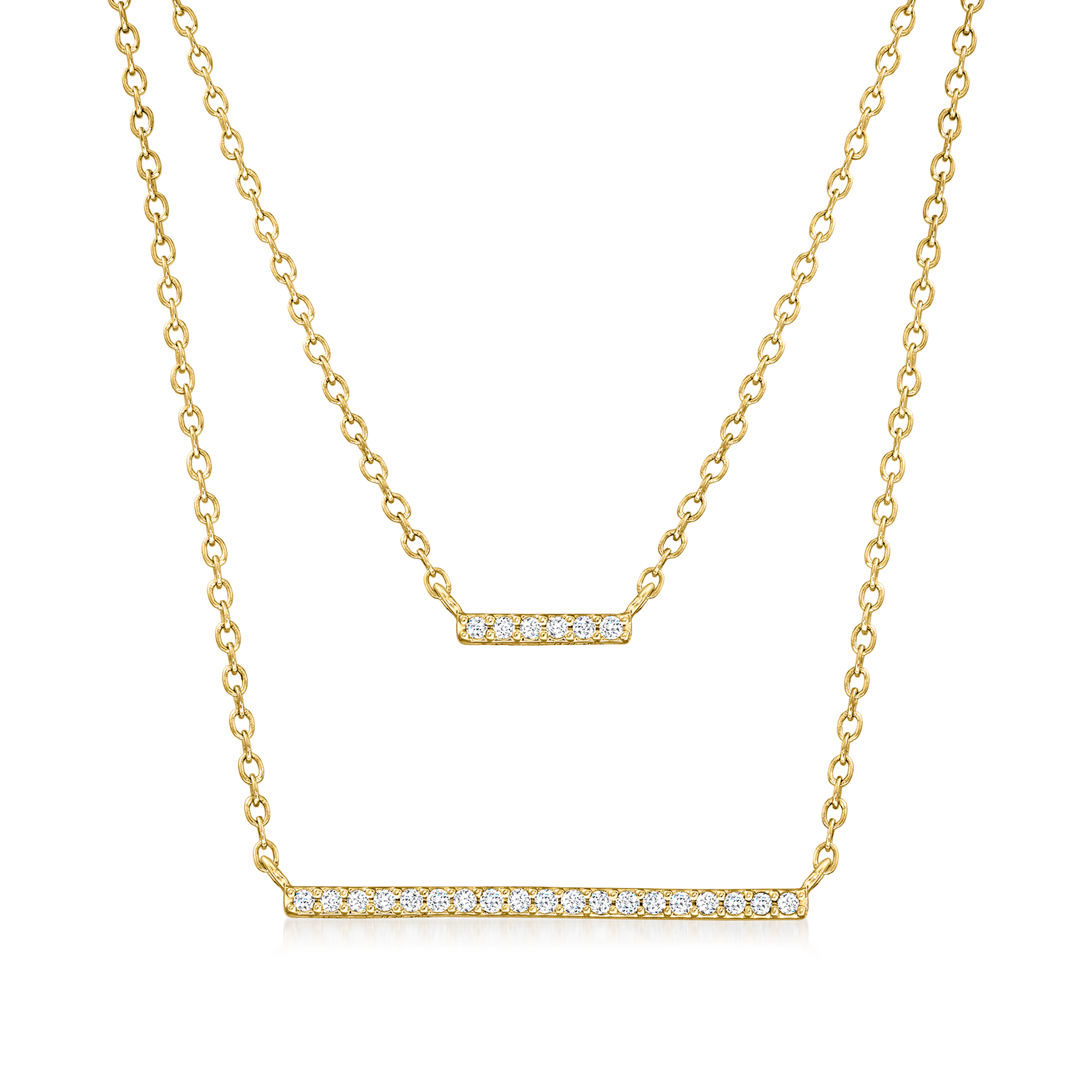 RS Pure by Ross-Simons 0.15 ct. t.w. Diamond Double-Bar Necklace in 14kt Yellow Gold, Women's, Adult