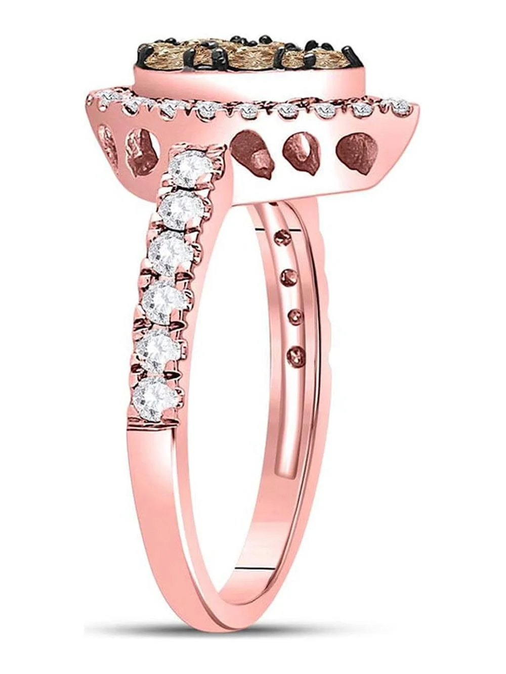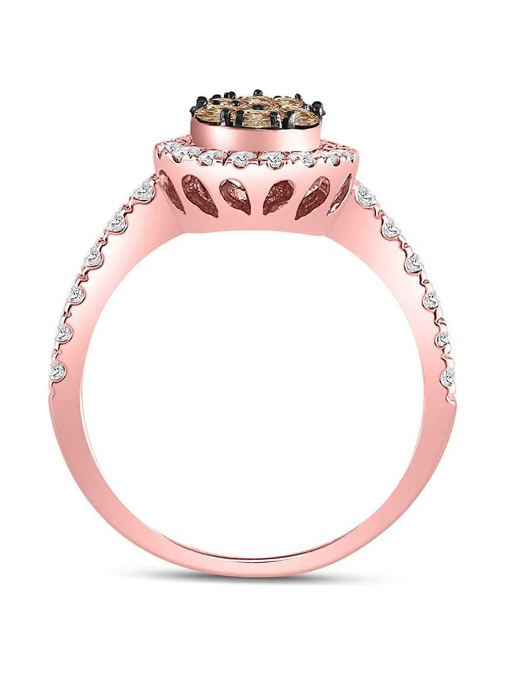 Diamond Princess 14kt Rose Gold Womens Round Brown Diamond Teardrop Cluster Ring 1 Cttw