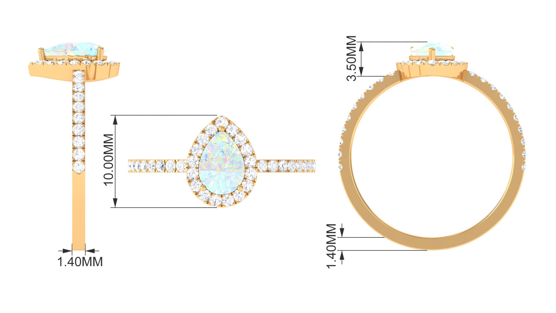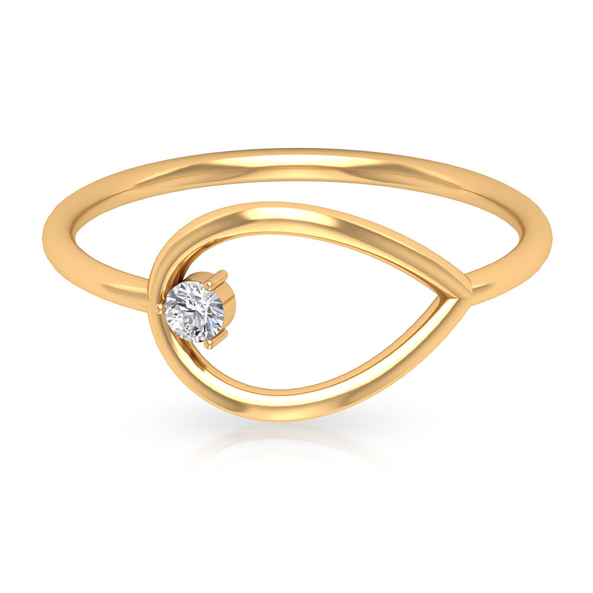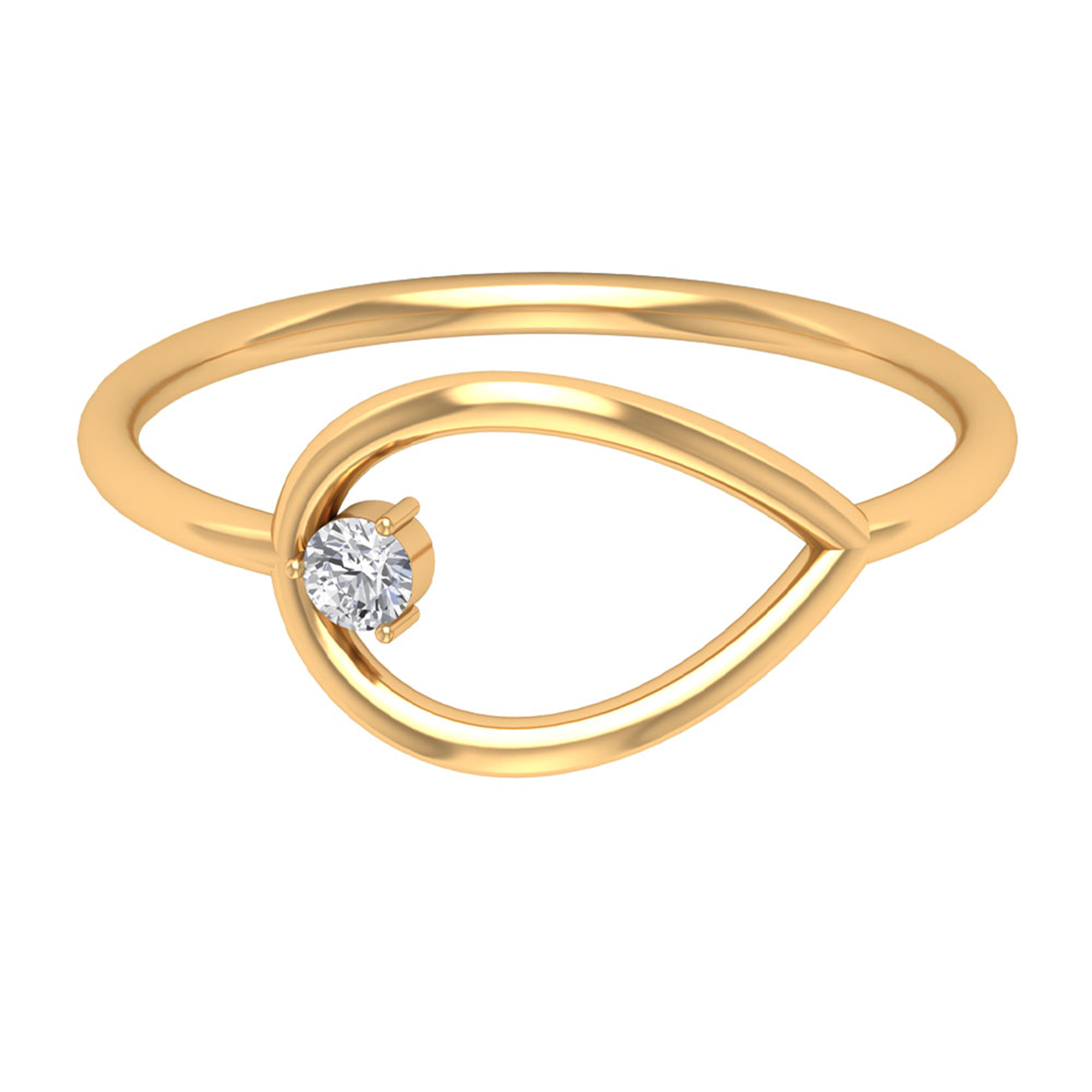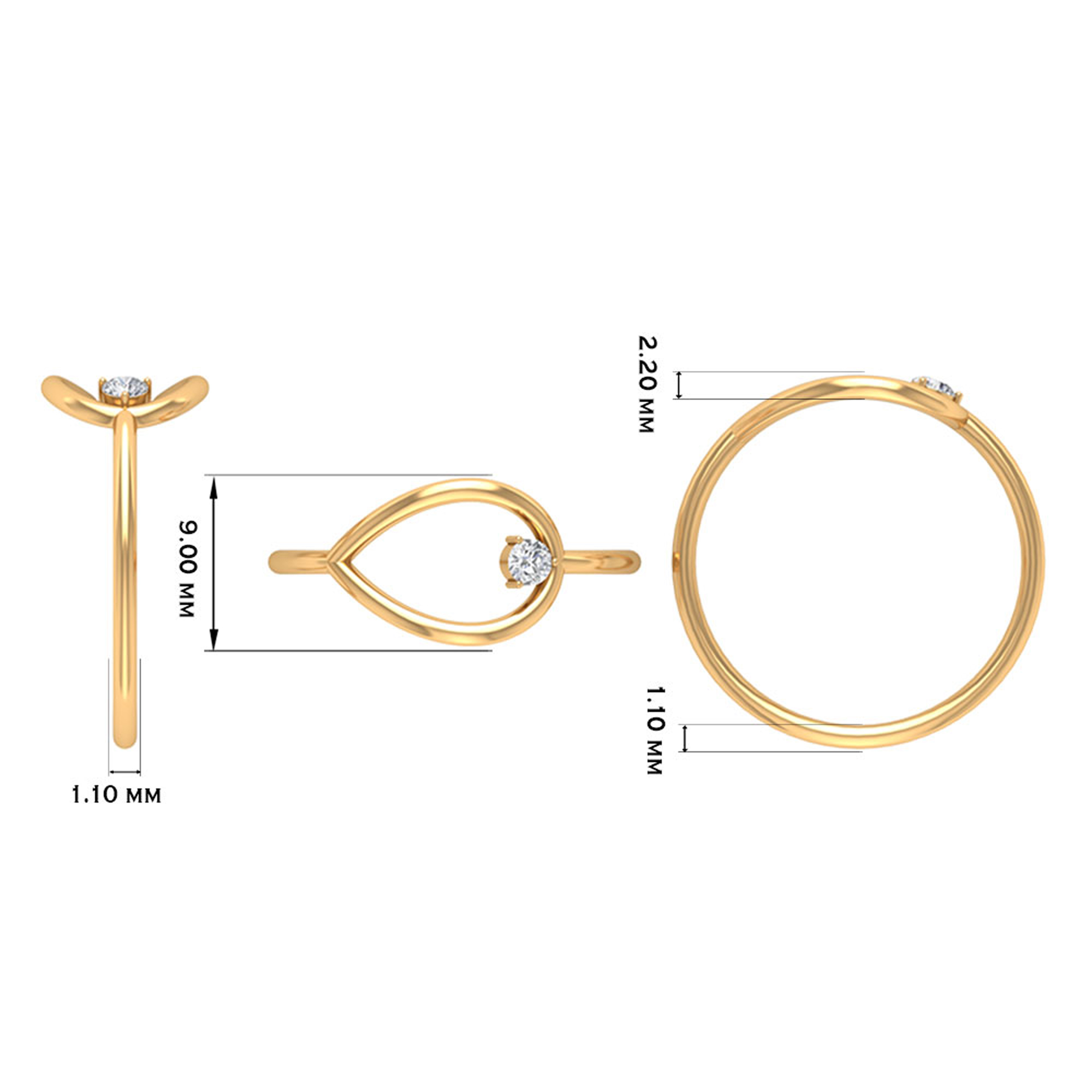 Diamond and Gold Open Teardrop Ring for Women, 18K Yellow Gold, US 3.50