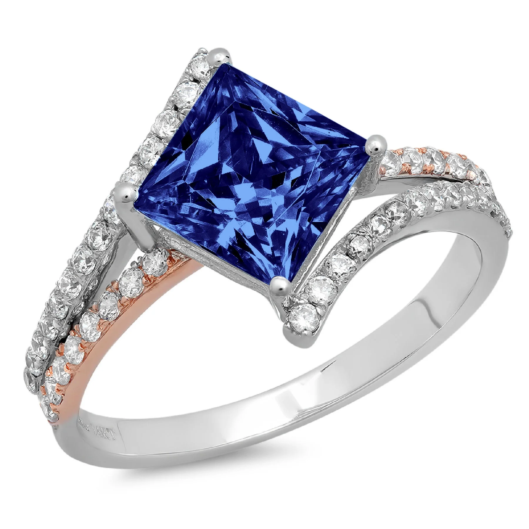 2.49ct princess cut blue simulated tanzanite 14k white rose gold anniversary engagement ring size 4