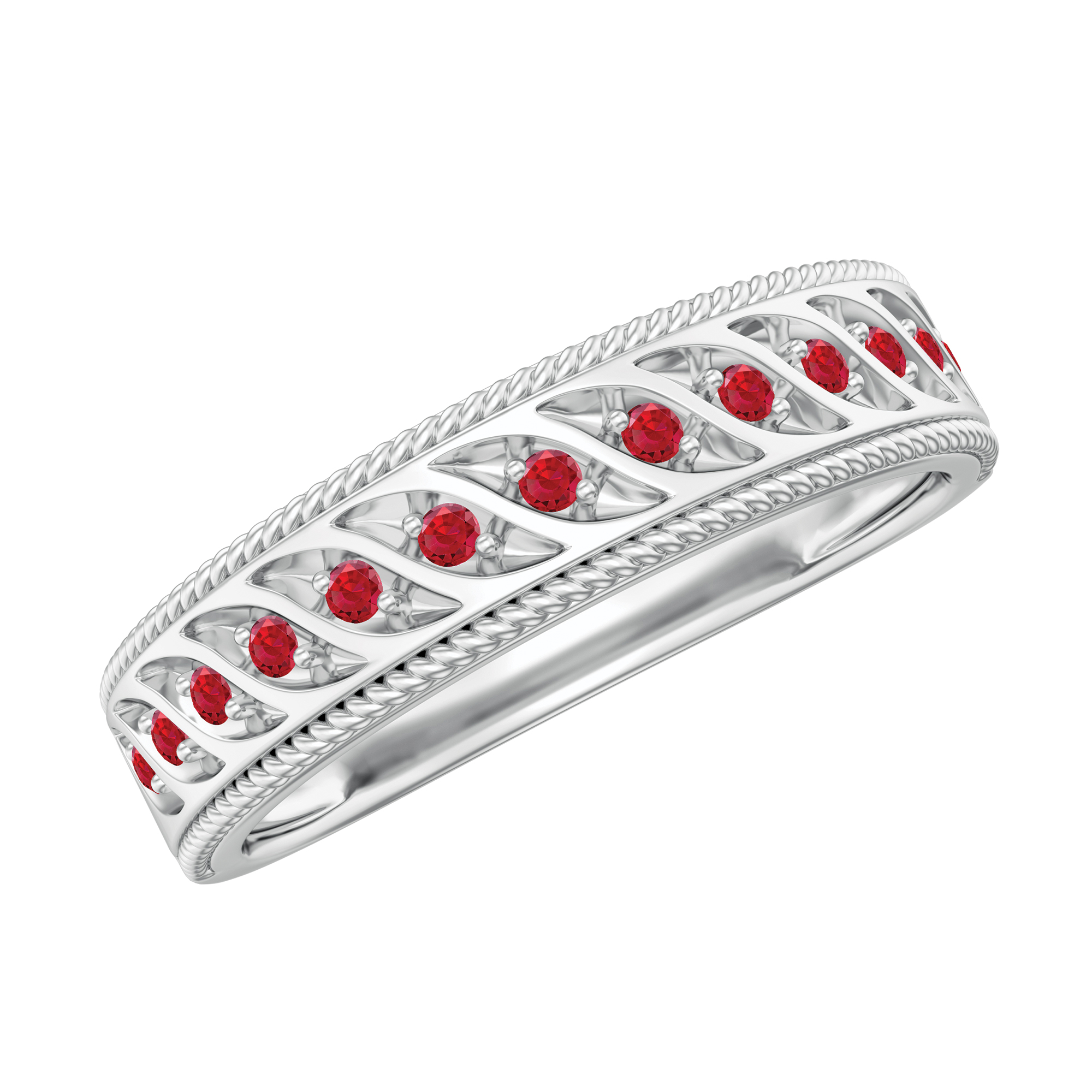 Lab Created Ruby Wedding Gold Band Ring for Women (AAAA Quality, Rosec Jewels), 925 Sterling Silver, US 4.00