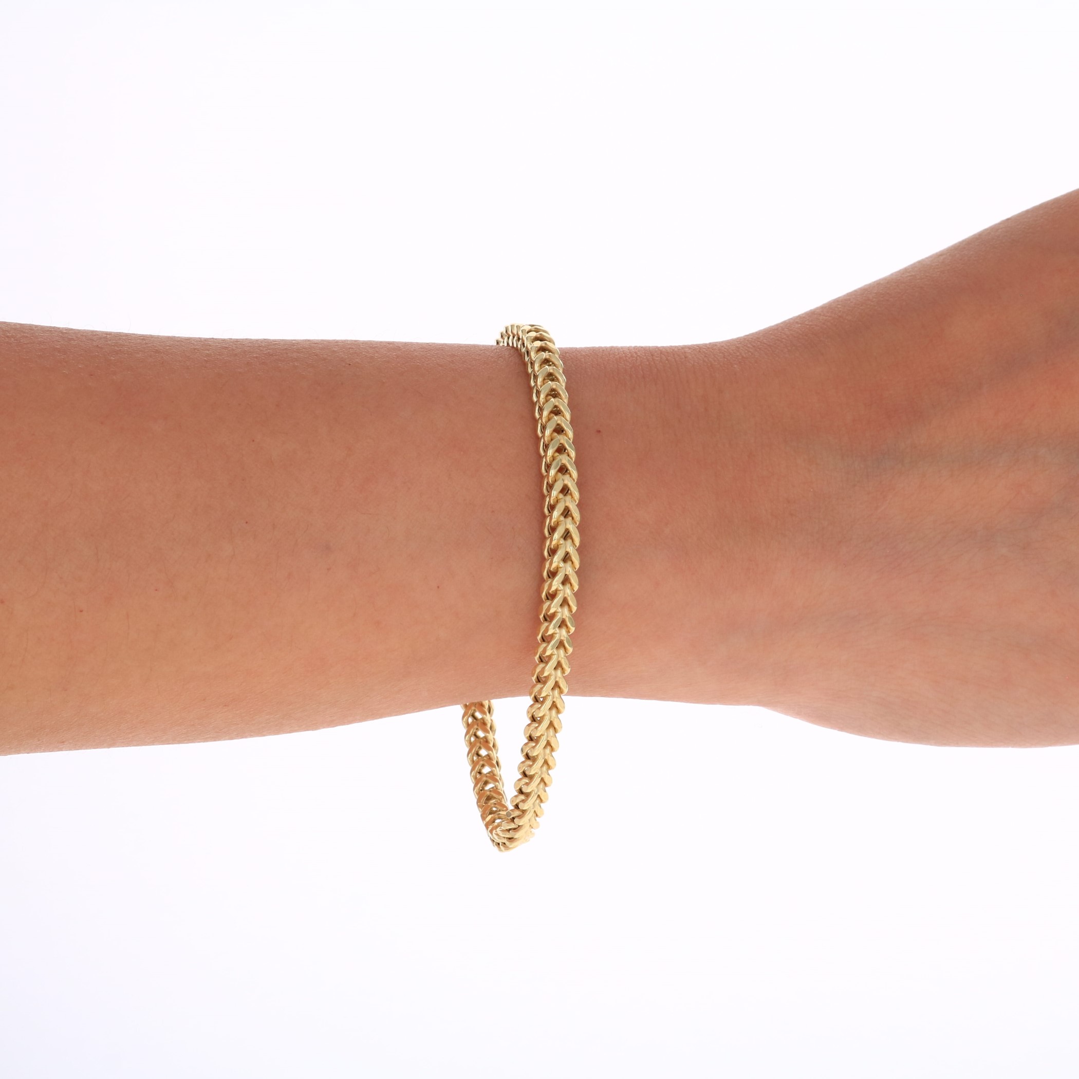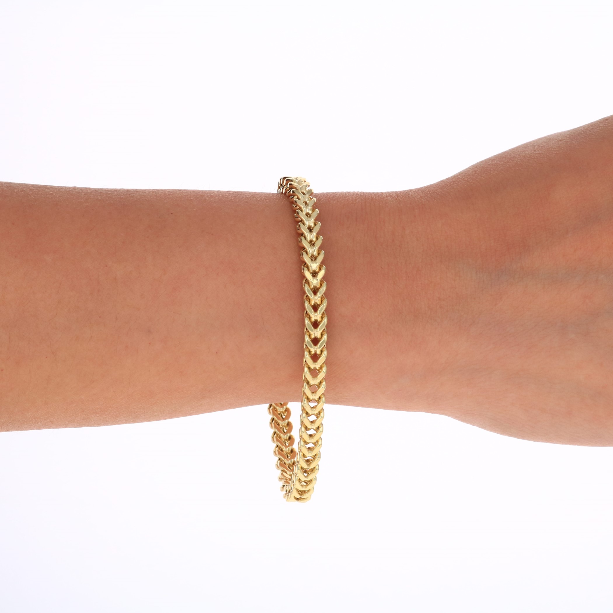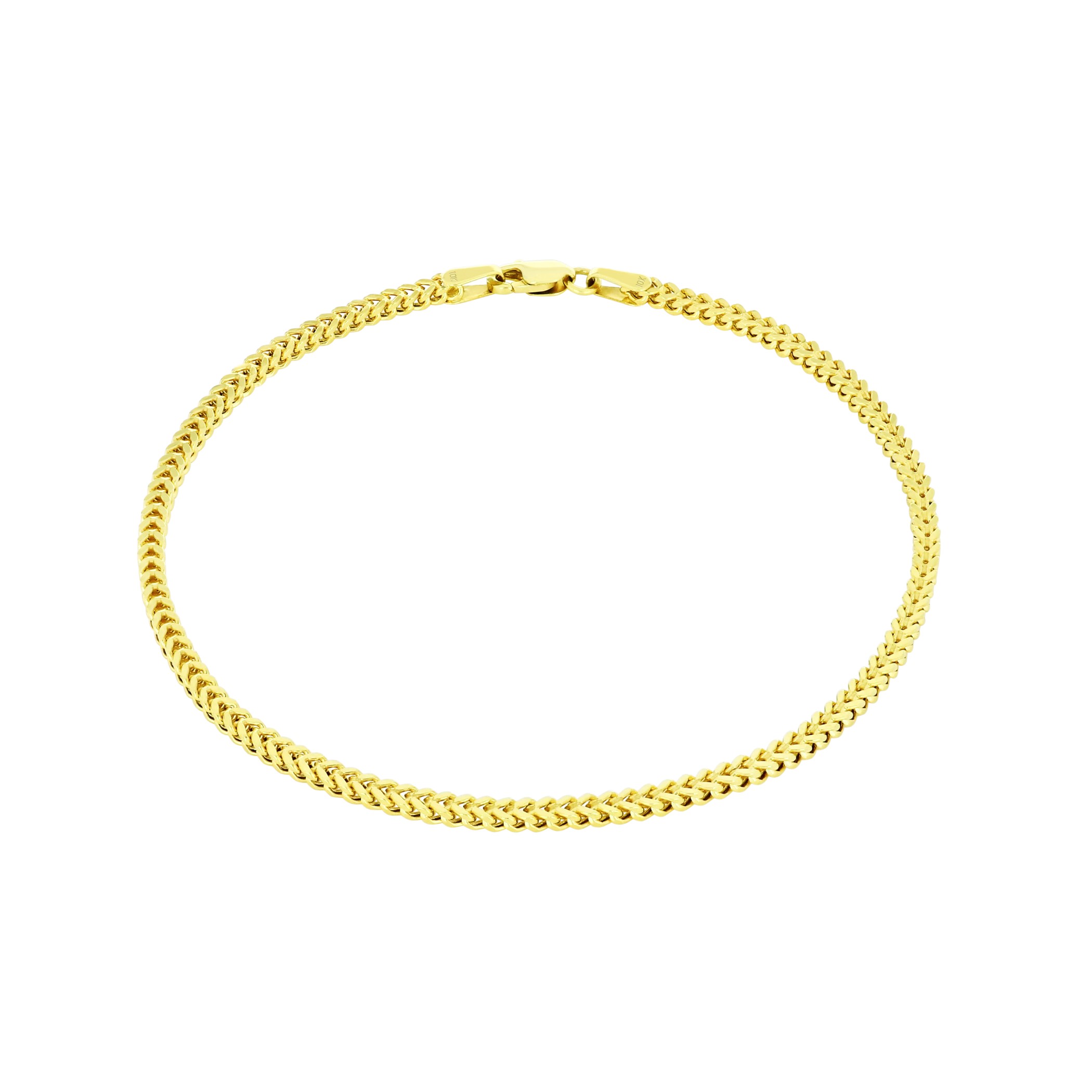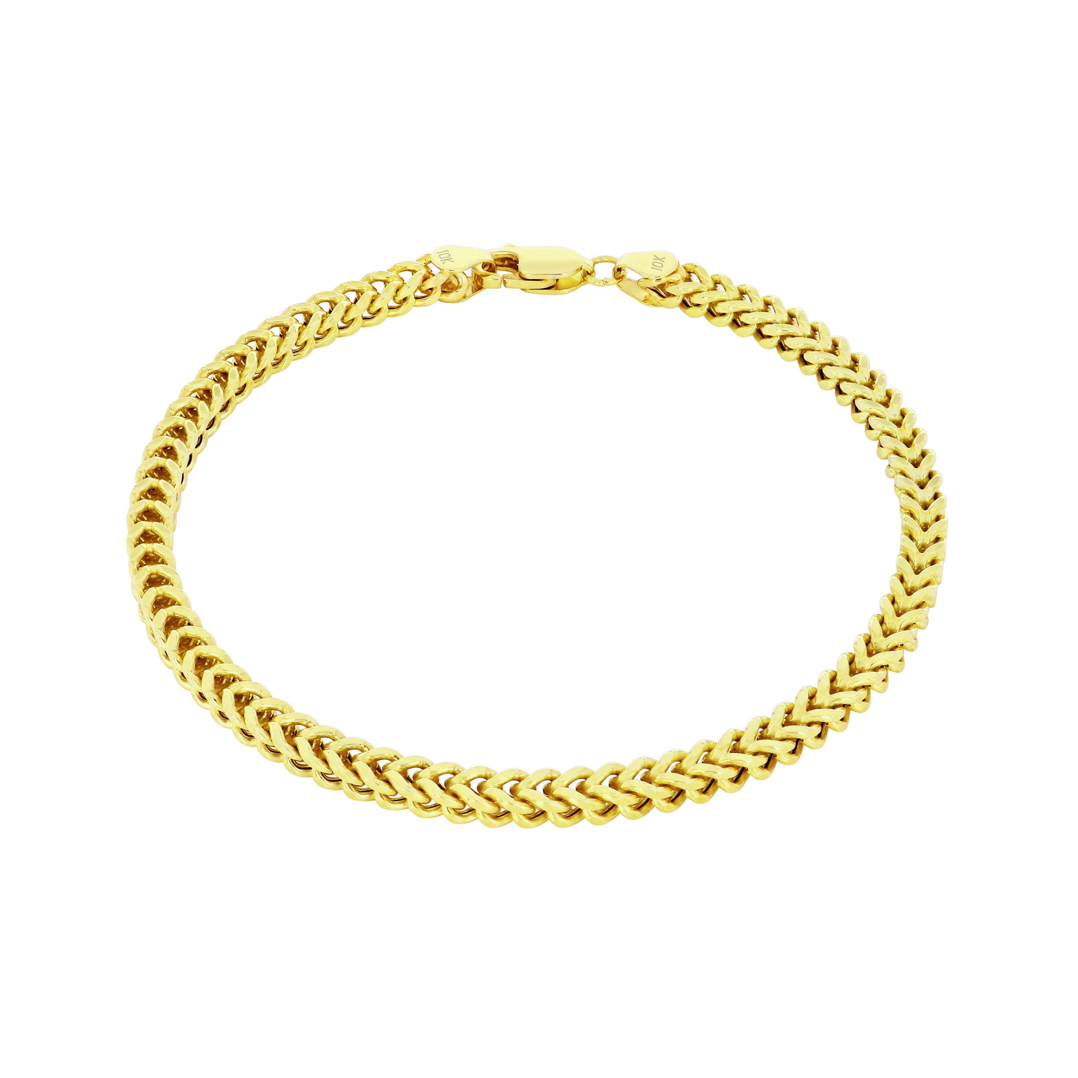Nuragold 10k Yellow Gold 4mm Franco Chain Box Square Wheat Bracelet, Mens Jewelry 7" - 9"