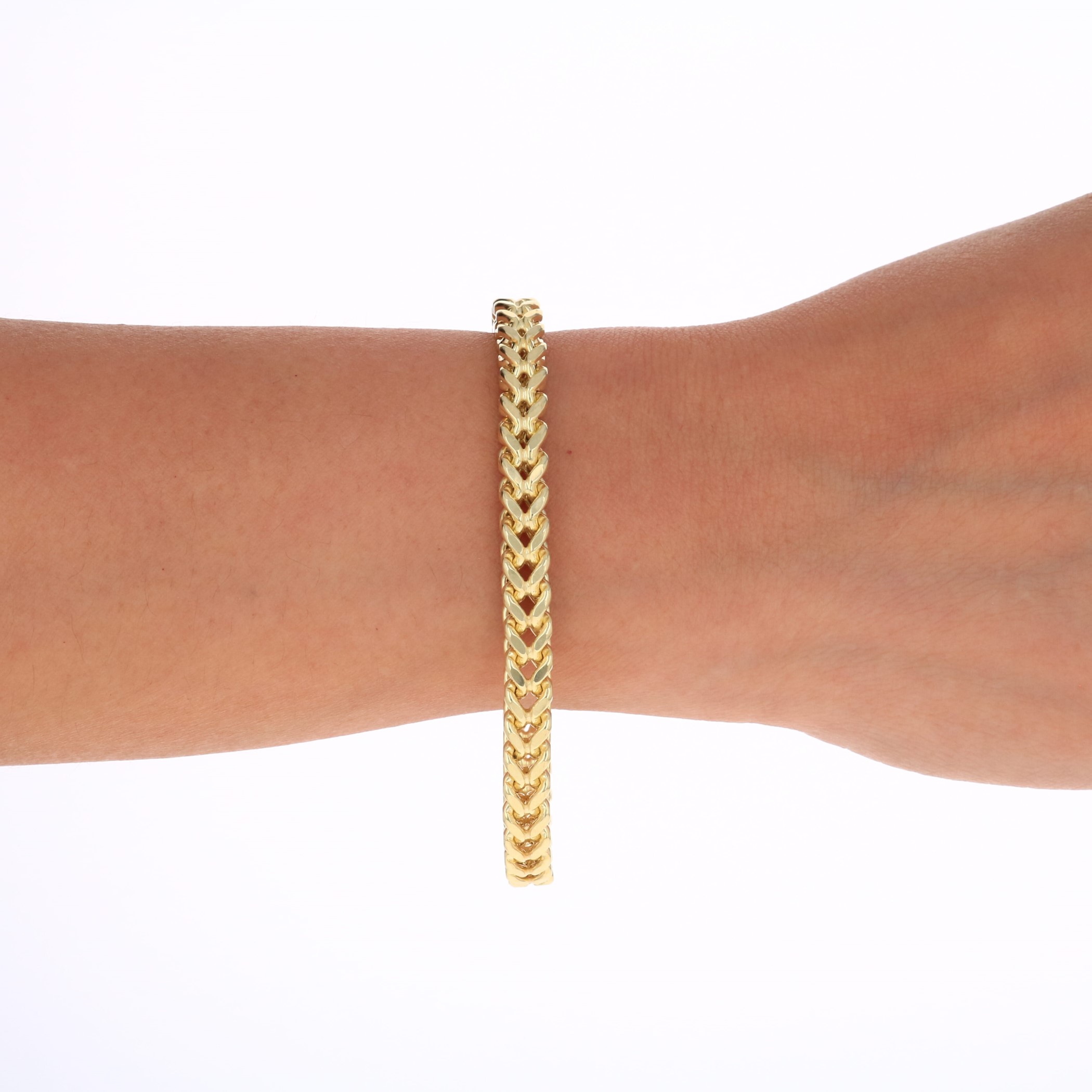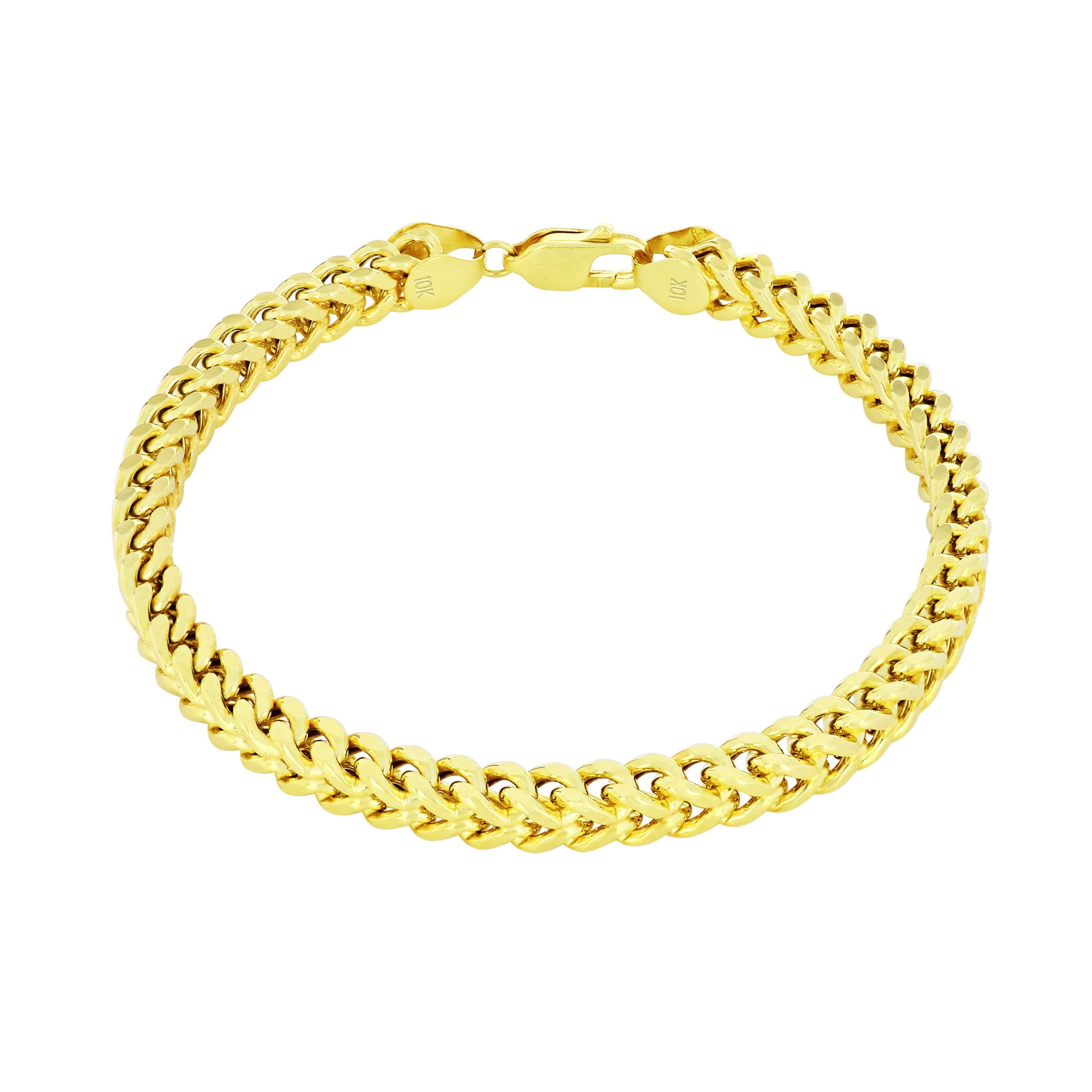 Nuragold 10k Yellow Gold 5mm Franco Chain Box Square Wheat Bracelet, Mens Jewelry 7.5" - 9"