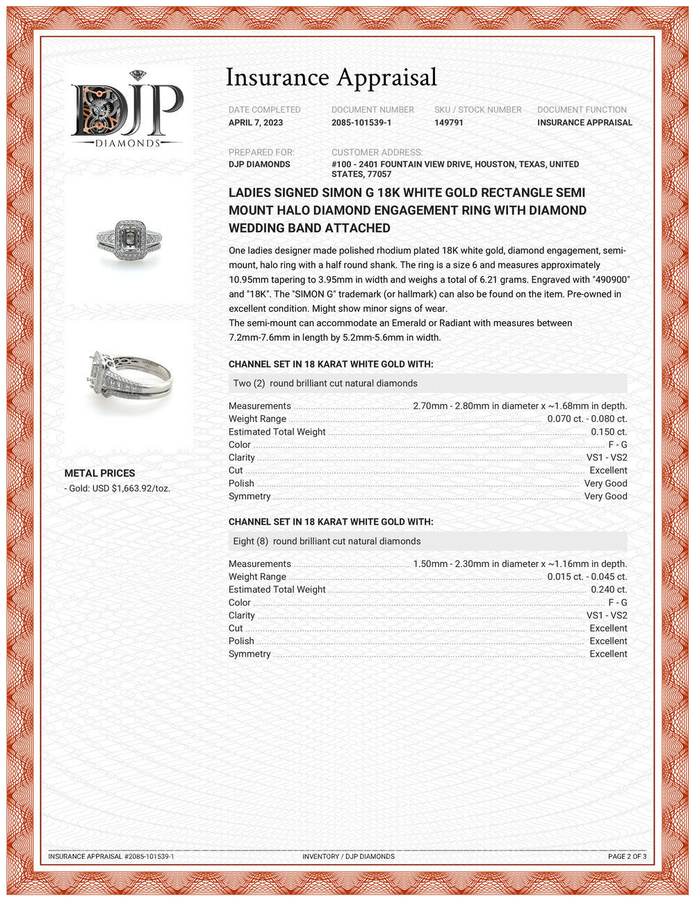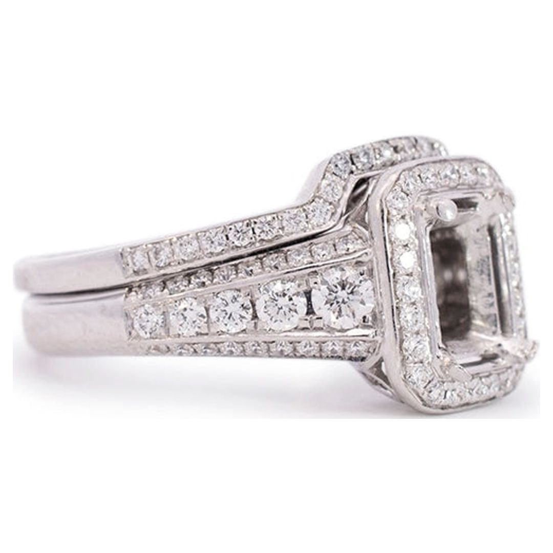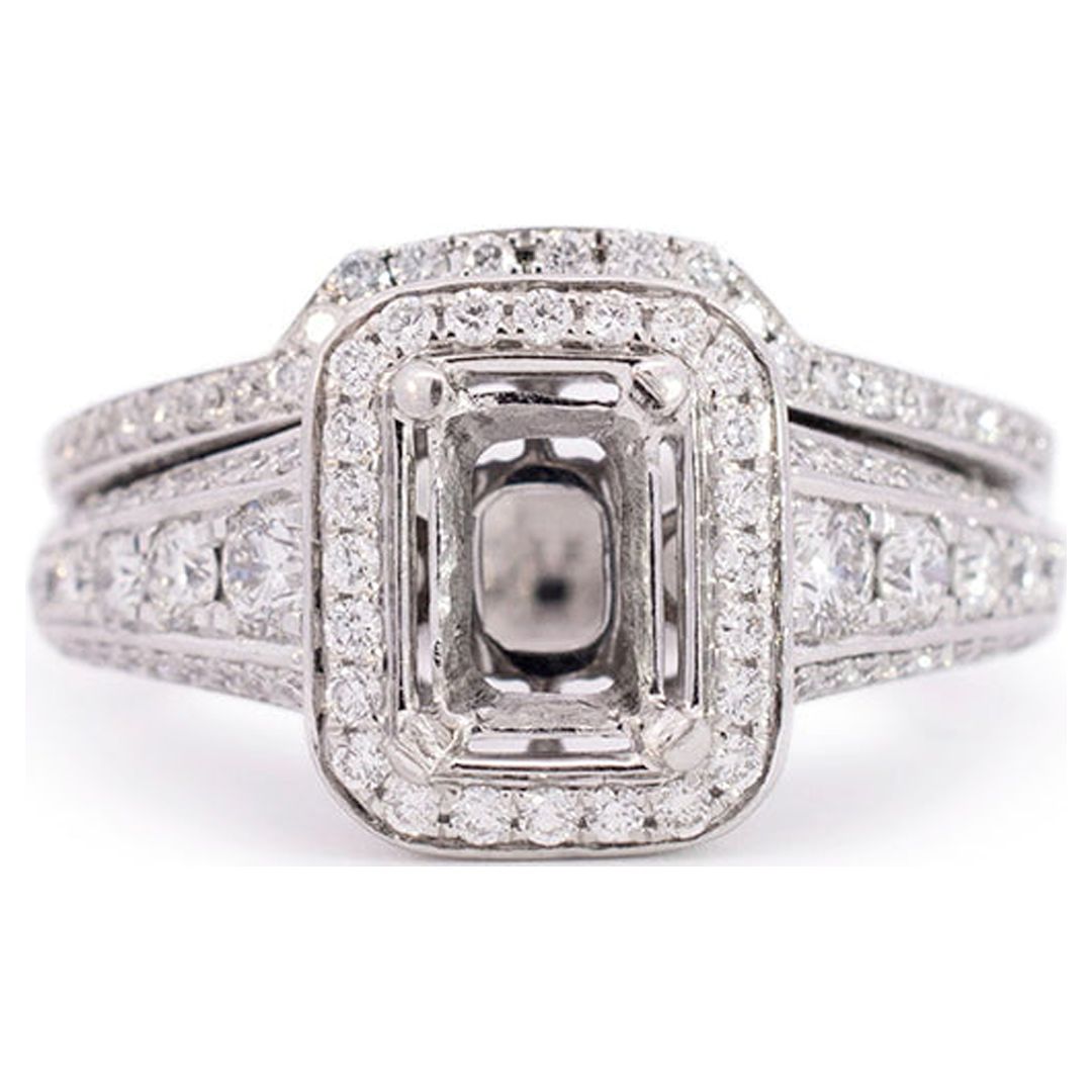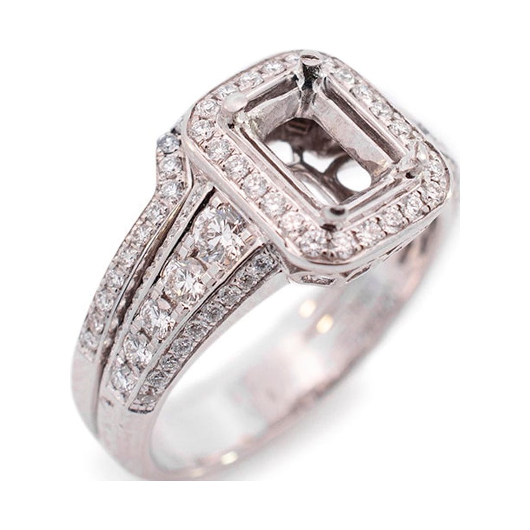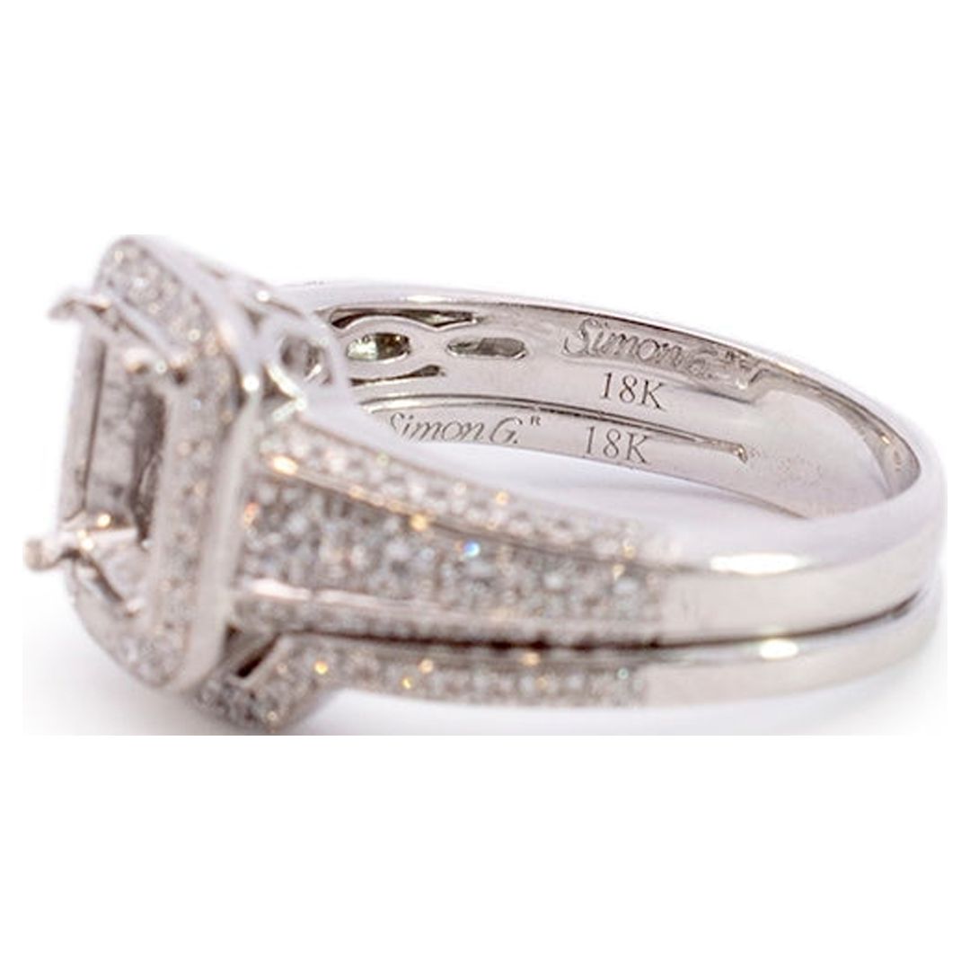 Simon G 18K White Gold Rectangle Semi Mount Halo Diamond Engagement Ring