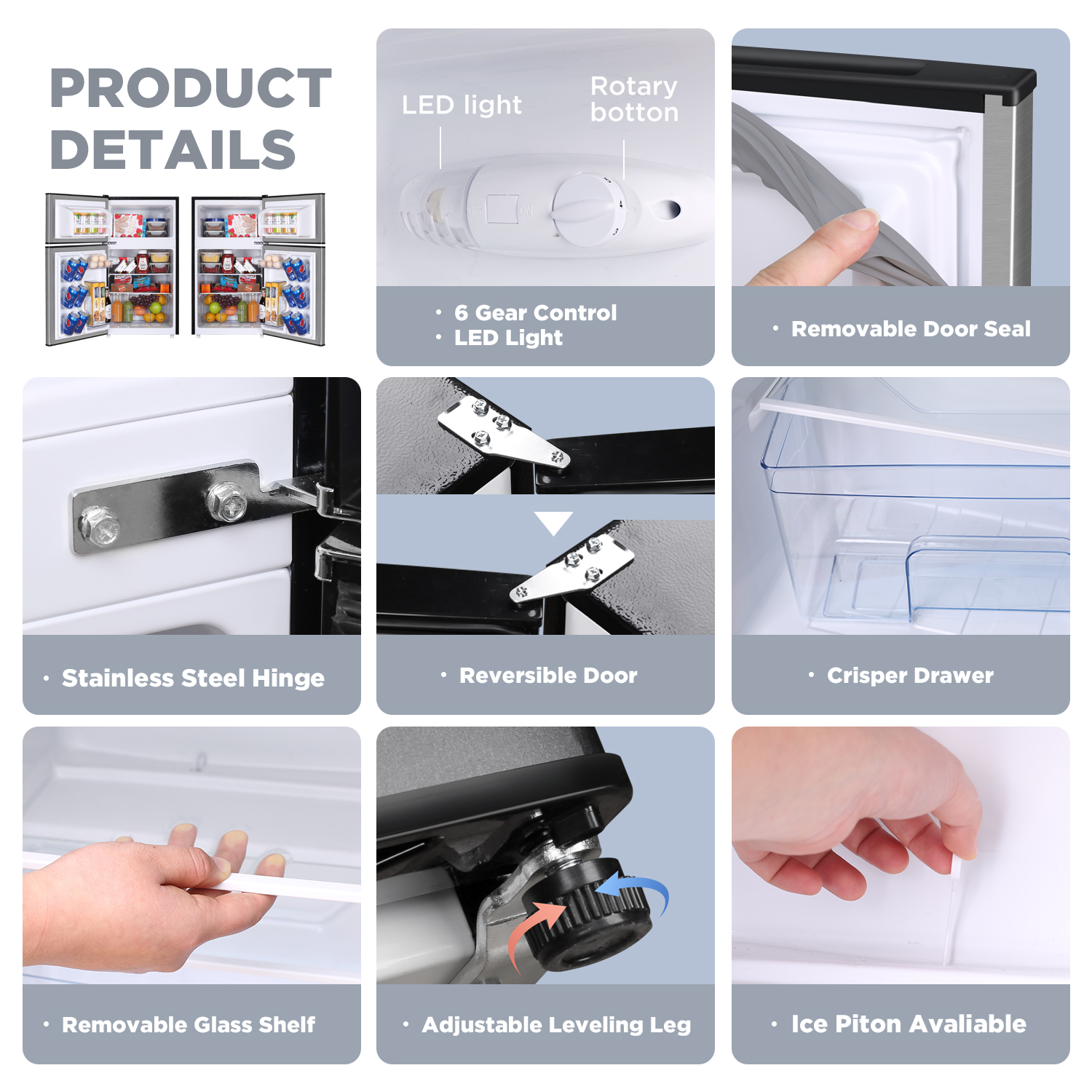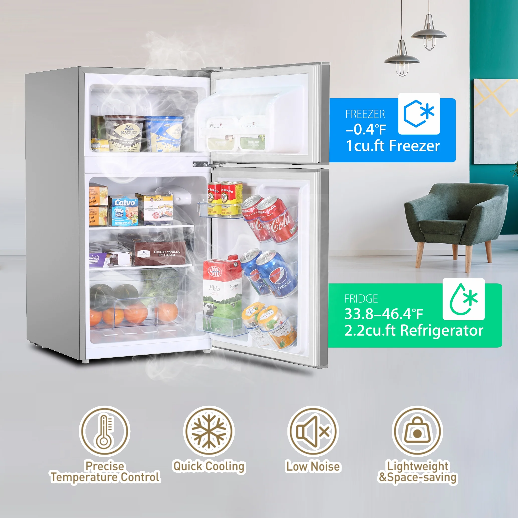 SalonMore 2.1 cu.ft Upright Freezer Stainless Steel Single Door Mini Fridge