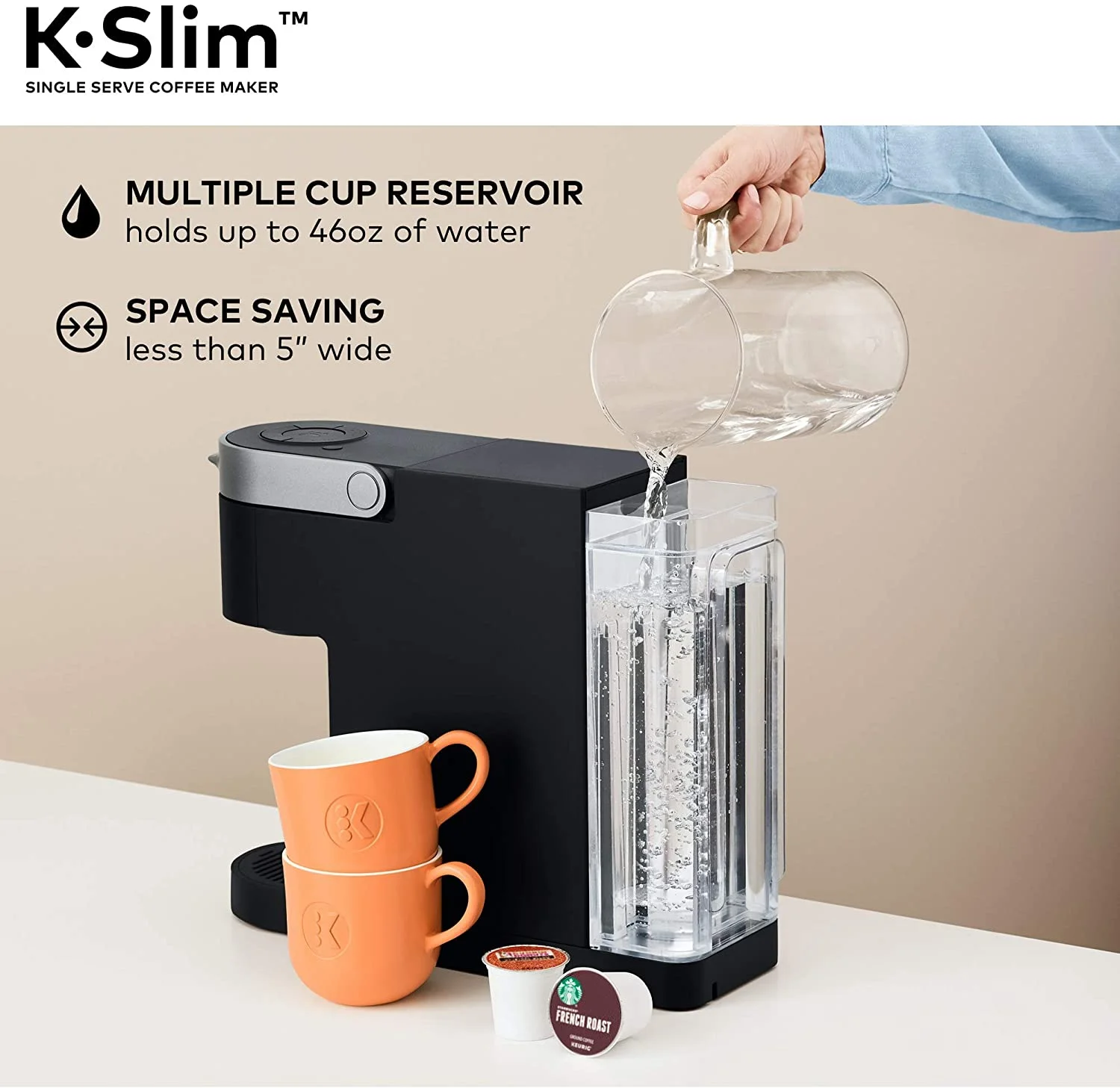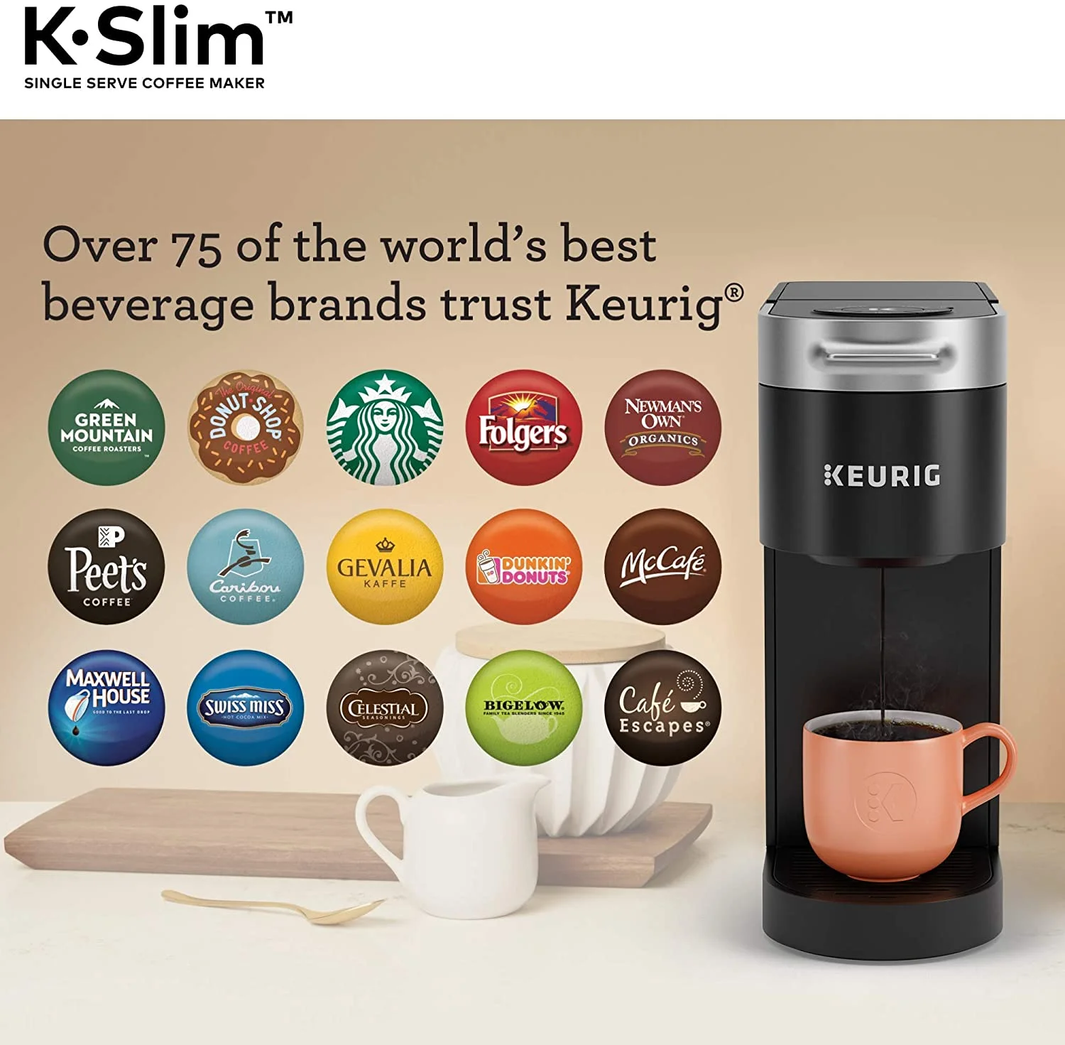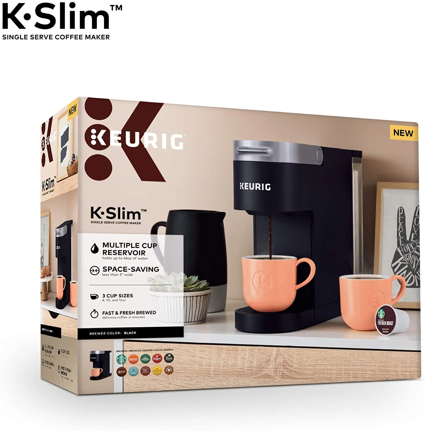 Keurig K-Slim Coffee Maker, Single Serve K-Cup Pod Coffee Brewer, 8 to 12oz. Brew Sizes, Black