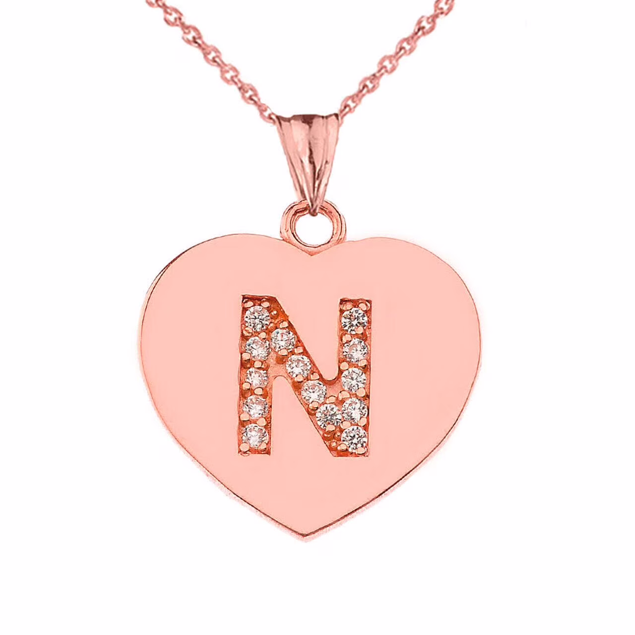DIAMOND INITIAL A-Z HEART PENDANT NECKLACE IN ROSE GOLD : 10K Pendant only