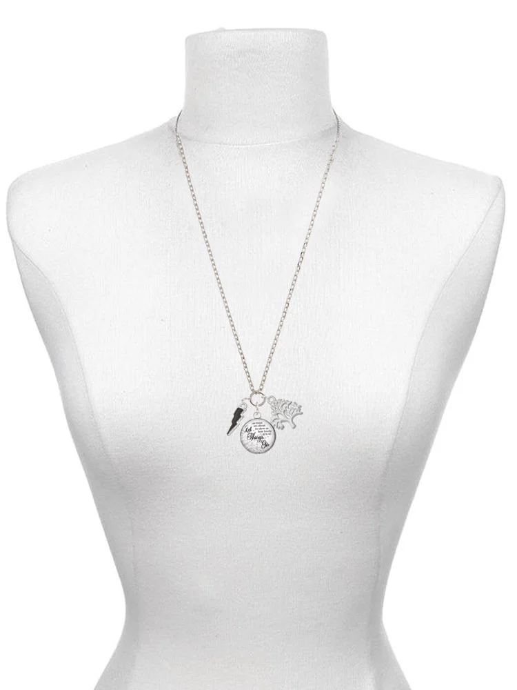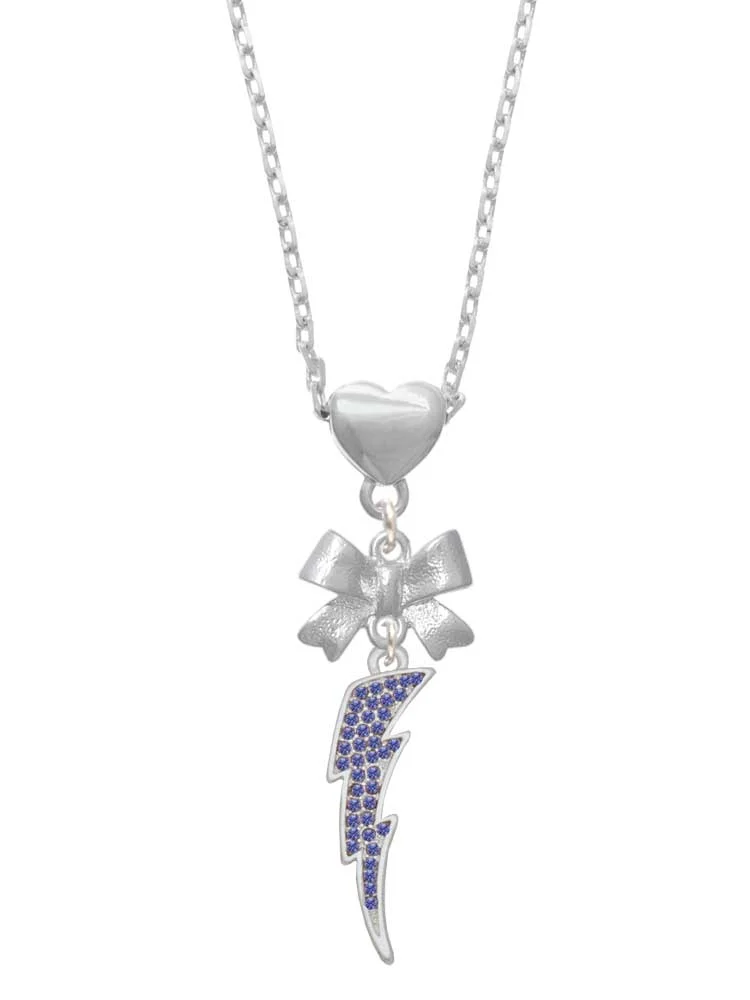 Delight Jewelry Silvertone Large Blue Crystal Lightning Bolt Silver tone Bow Heart Necklace