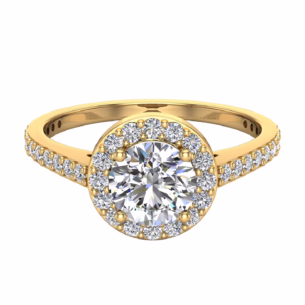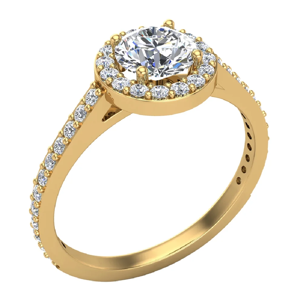 Dainty Halo Diamond Engagement Ring 1.15 Carat Total Weight 14K Gold (H,I1)
