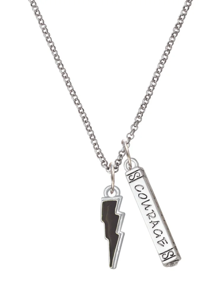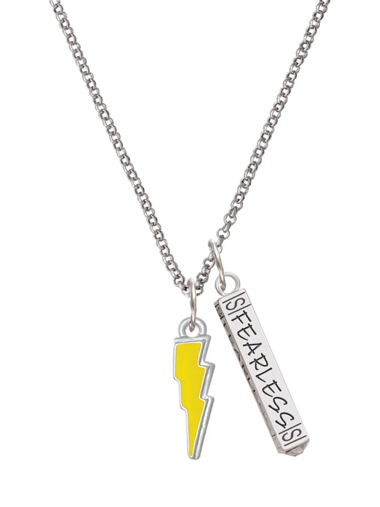 Delight Jewelry Silvertone Yellow Lightning Bolt Silvertone Fearless Bar Charm Necklace, 23"