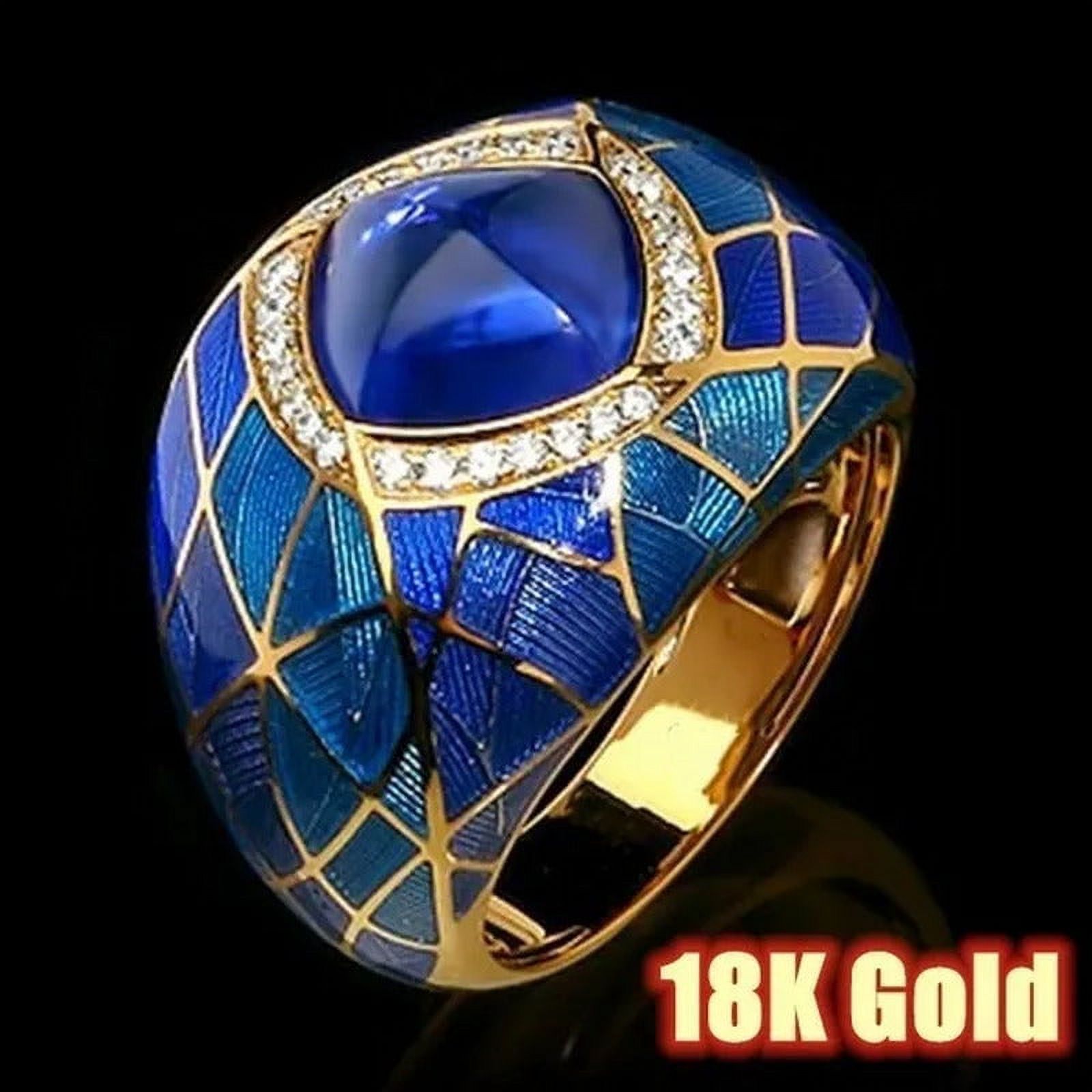 Fashion 925 Sterling Silver 18K Gold Sapphire Ruby Diamond Ring Anniversary Gift