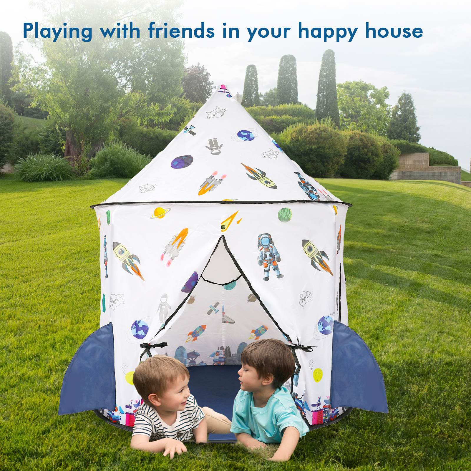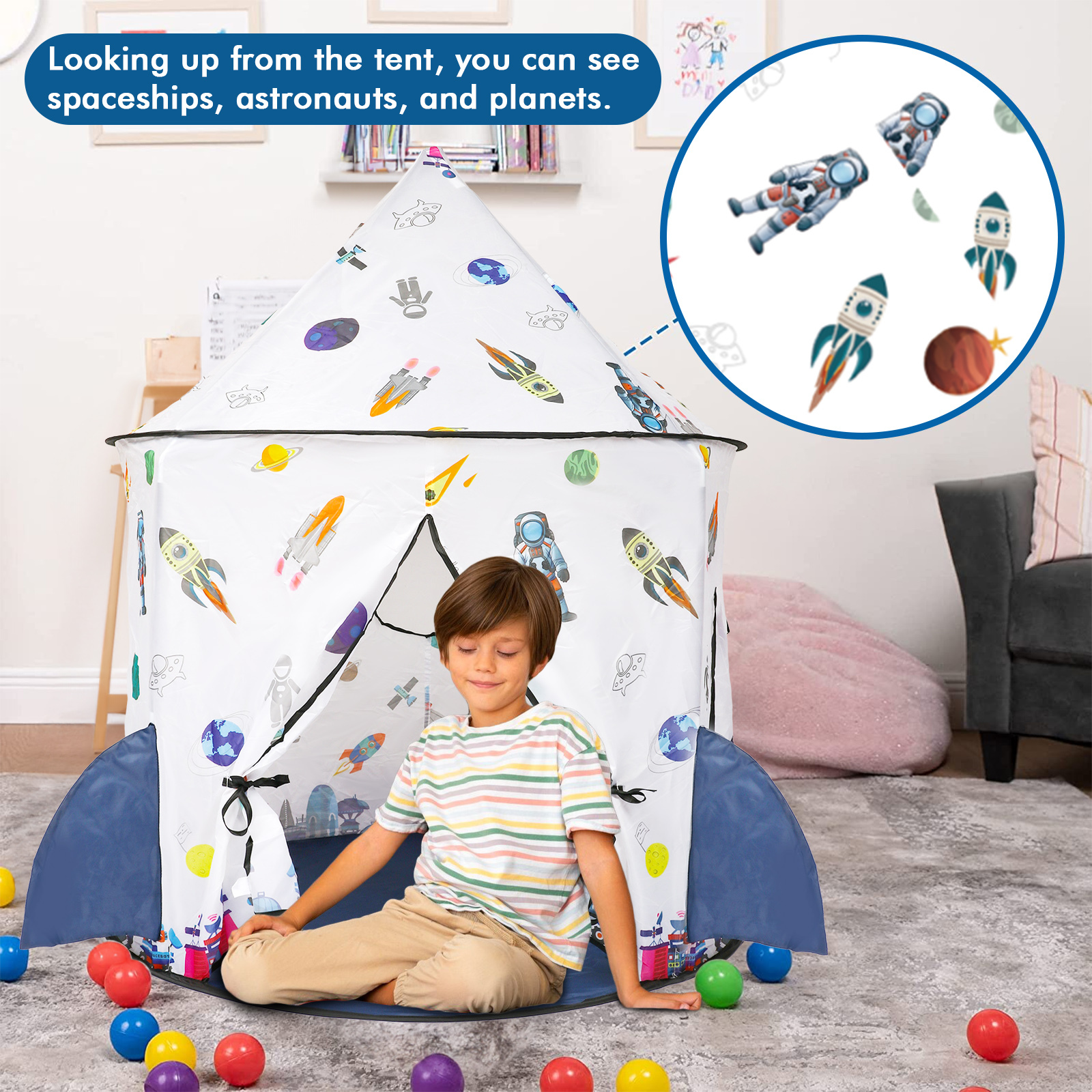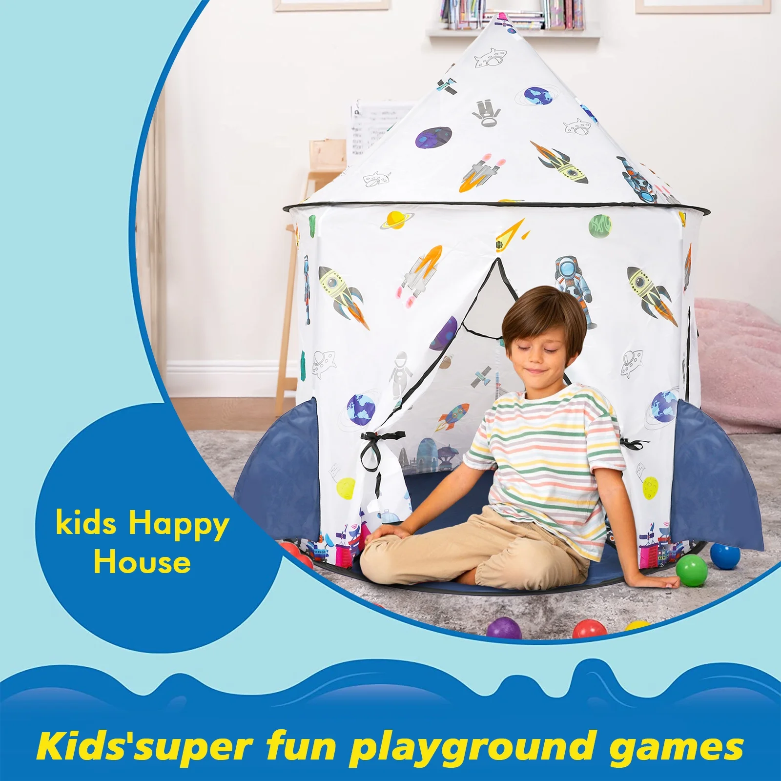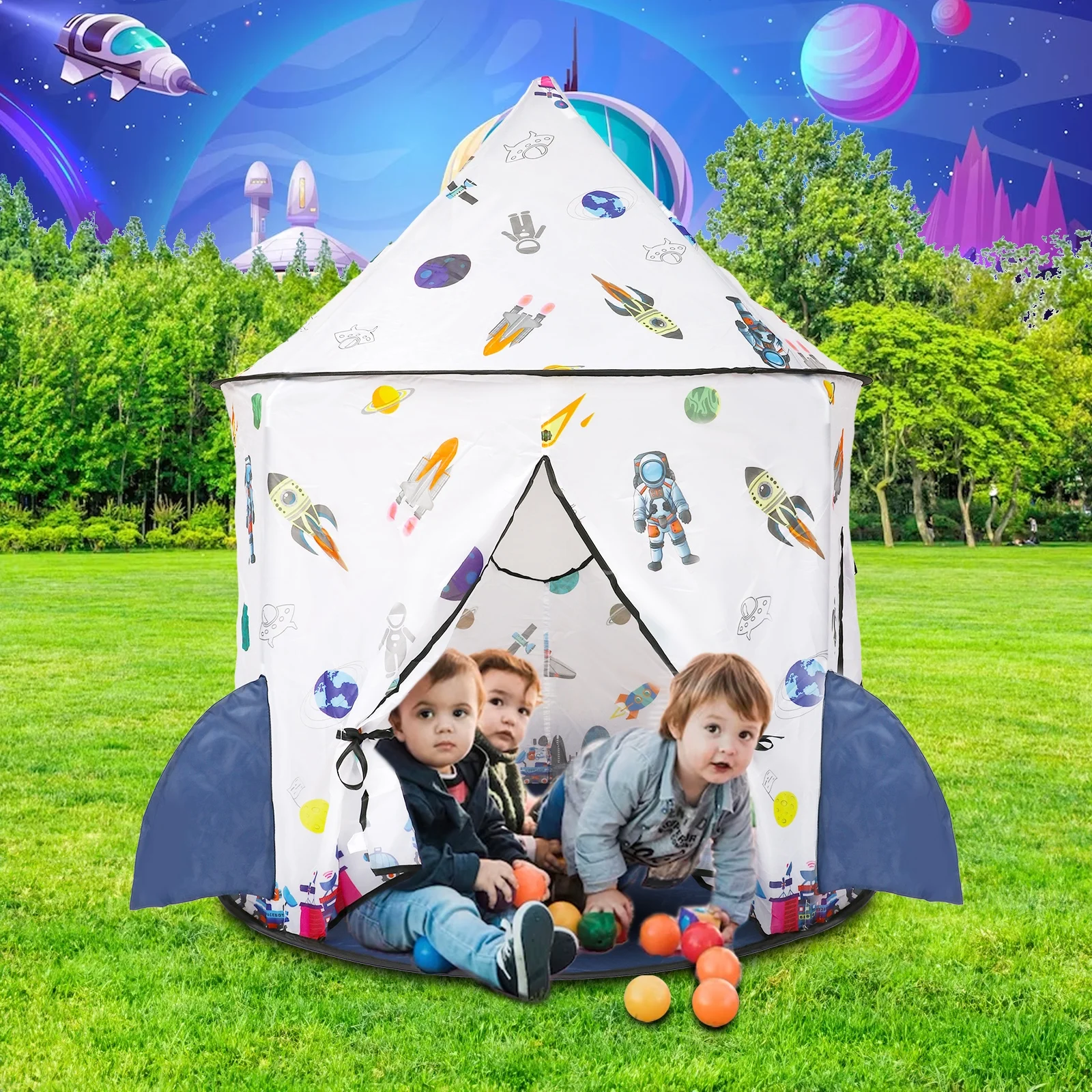 Freecat Kids Tent Rocket Ship Toy - Foldable Astronaut Space Themed Indoor & Outdoor Large Play Tent, Birthday Gift for Boys Girls Age 3-8
