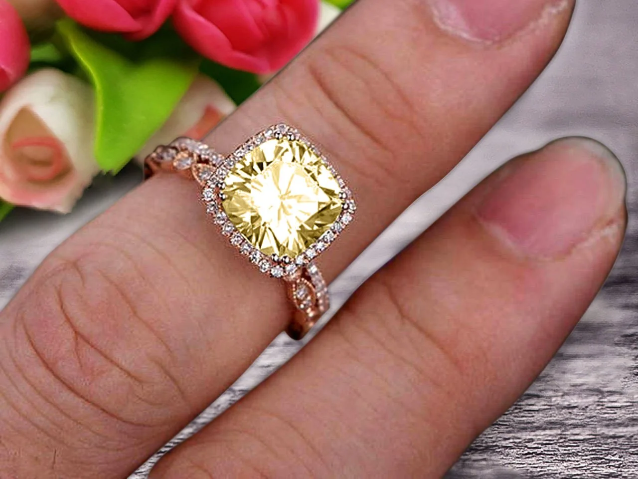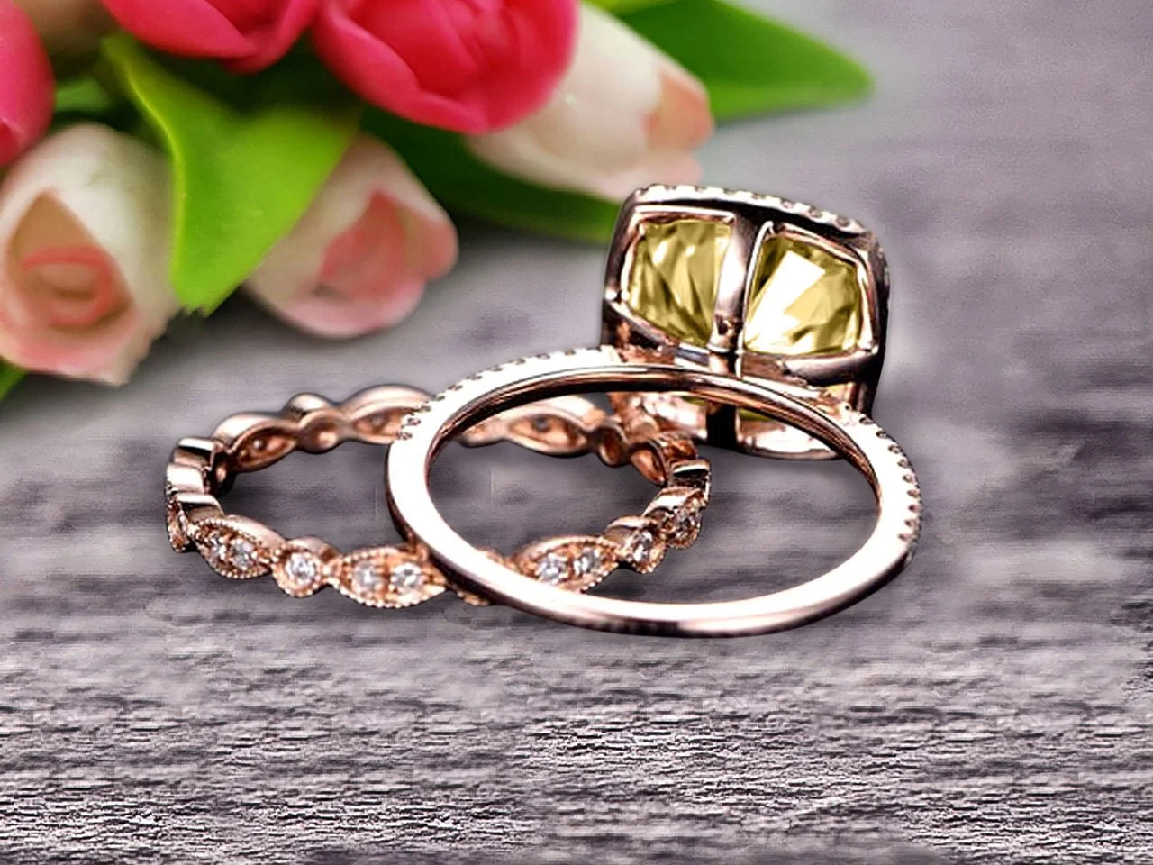 2.55 Carat Classic 7mm Cushion Champagne Diamond Moissanite wedding Bands Engagement Ring on 10k Rose Gold
